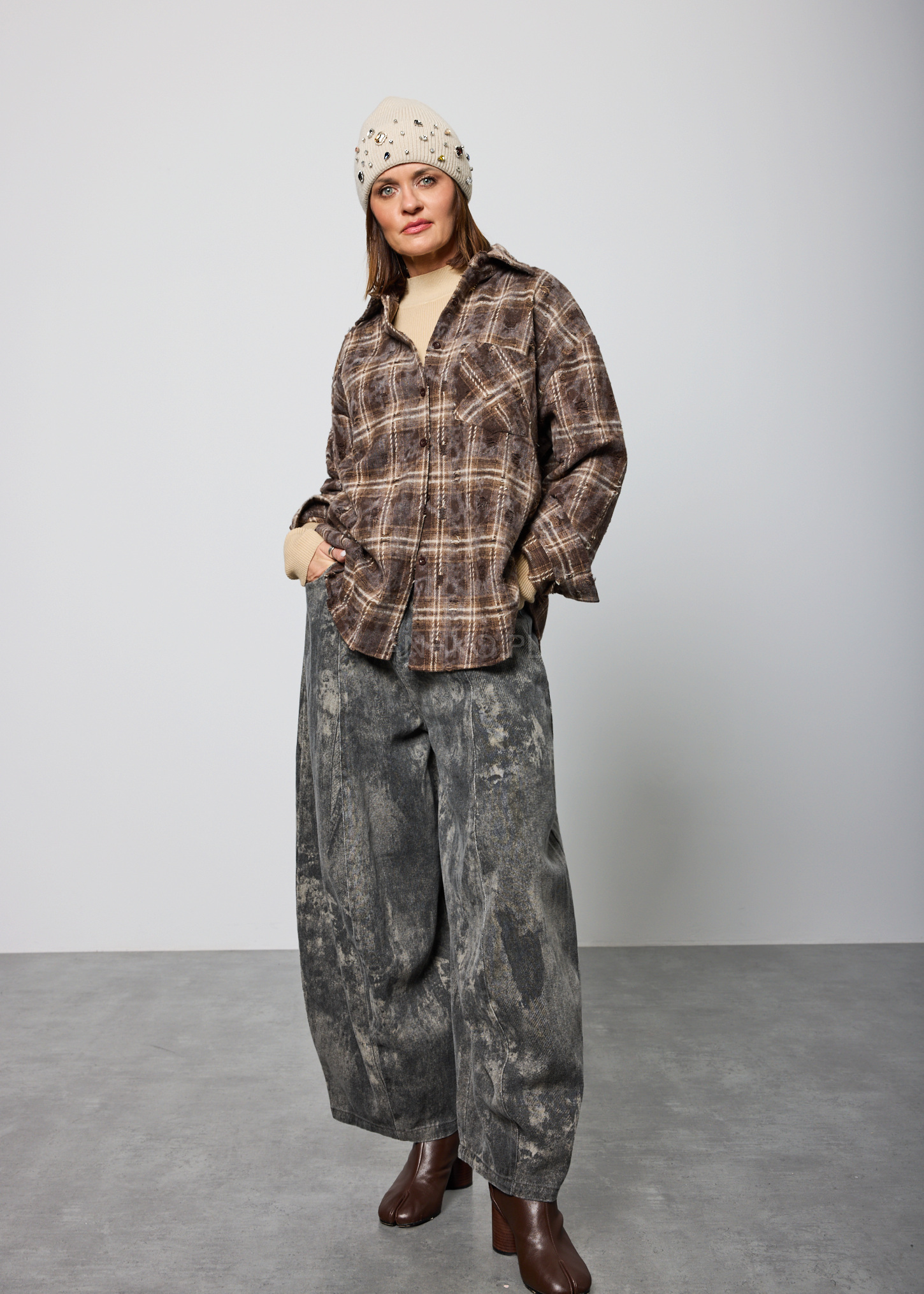 - Swobodny fason z lekko zwężaną nogawką
