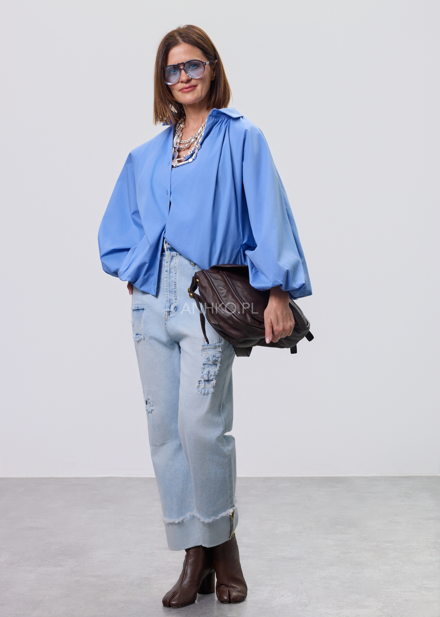 Koszula Noira Calm Niebieska - Lekka bluzka o swobodnym kroju z efektownymi rękawami i elastycznym dołem. Zapewnia komfort noszenia i subtelną formę, która sprawdzi się zarówno w stylizacjach codziennych, jak i bardziej eleganckich.