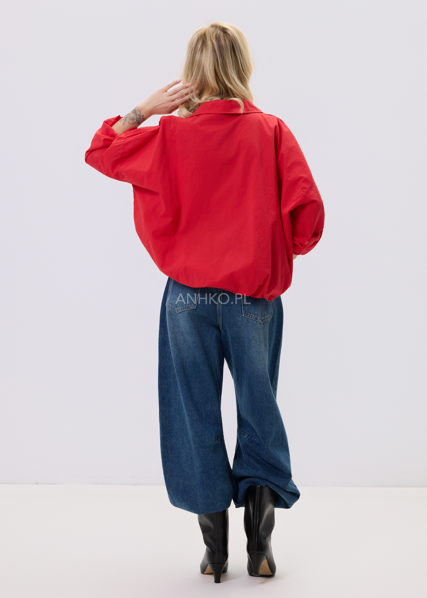 Bluzka The Calm Czerwona - Luźna bluzka o nowoczesnej, swobodnej formie z dekoltem w kształcie litery V. Zaprojektowana z myślą o komforcie i stylu na co dzień. Idealna do miejskich stylizacji, pracy oraz nieformalnych spotkań.