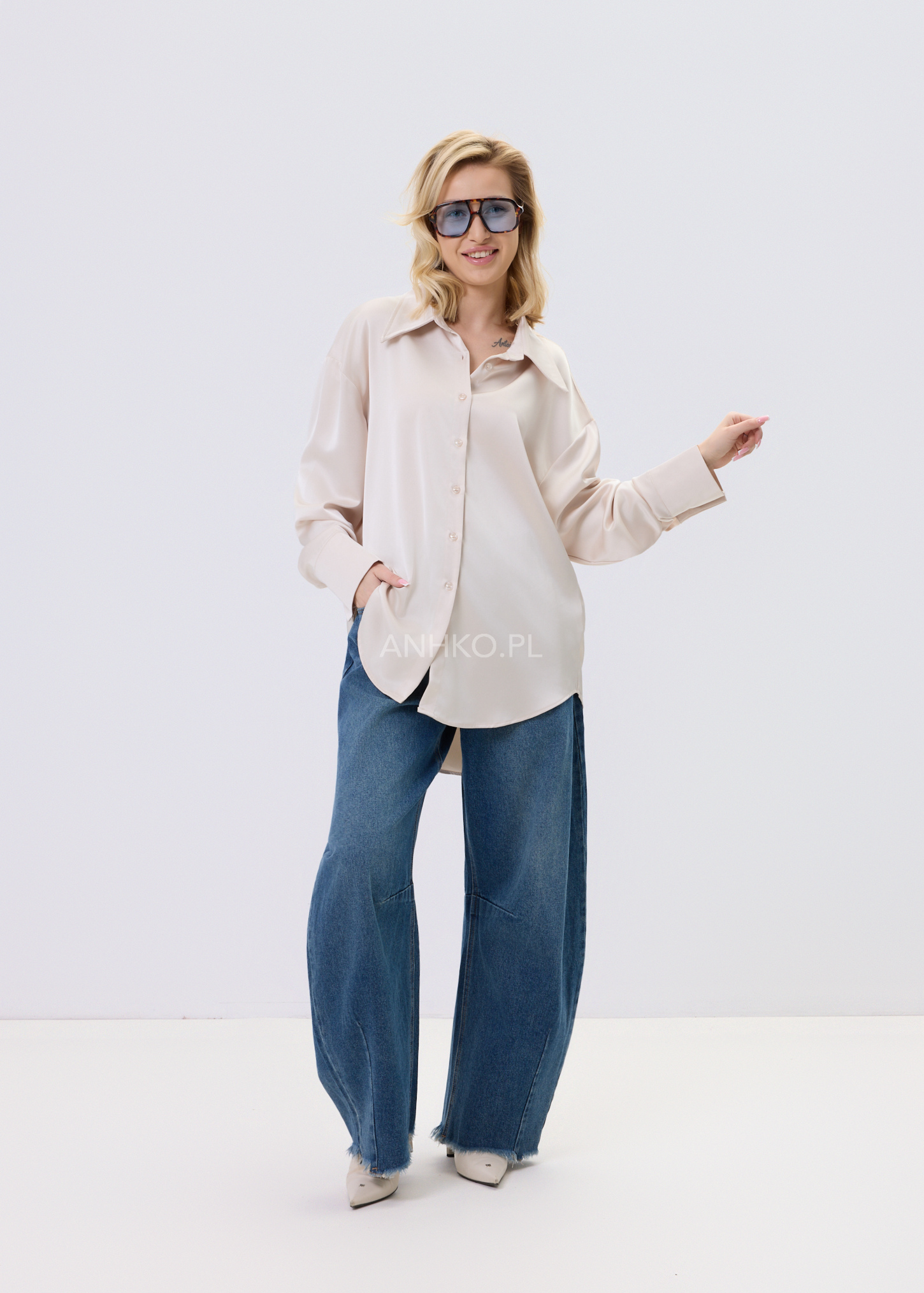 Koszula Elvanica Ecru - Elegancka koszula o satynowym wykończeniu z delikatnym, koronkowym tyłem. Miękka, lekka i niezwykle kobieca – idealna zarówno do codziennych, jak i bardziej wyrafinowanych stylizacji.