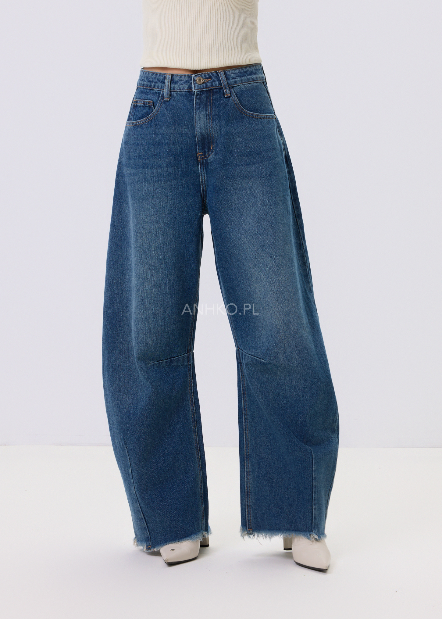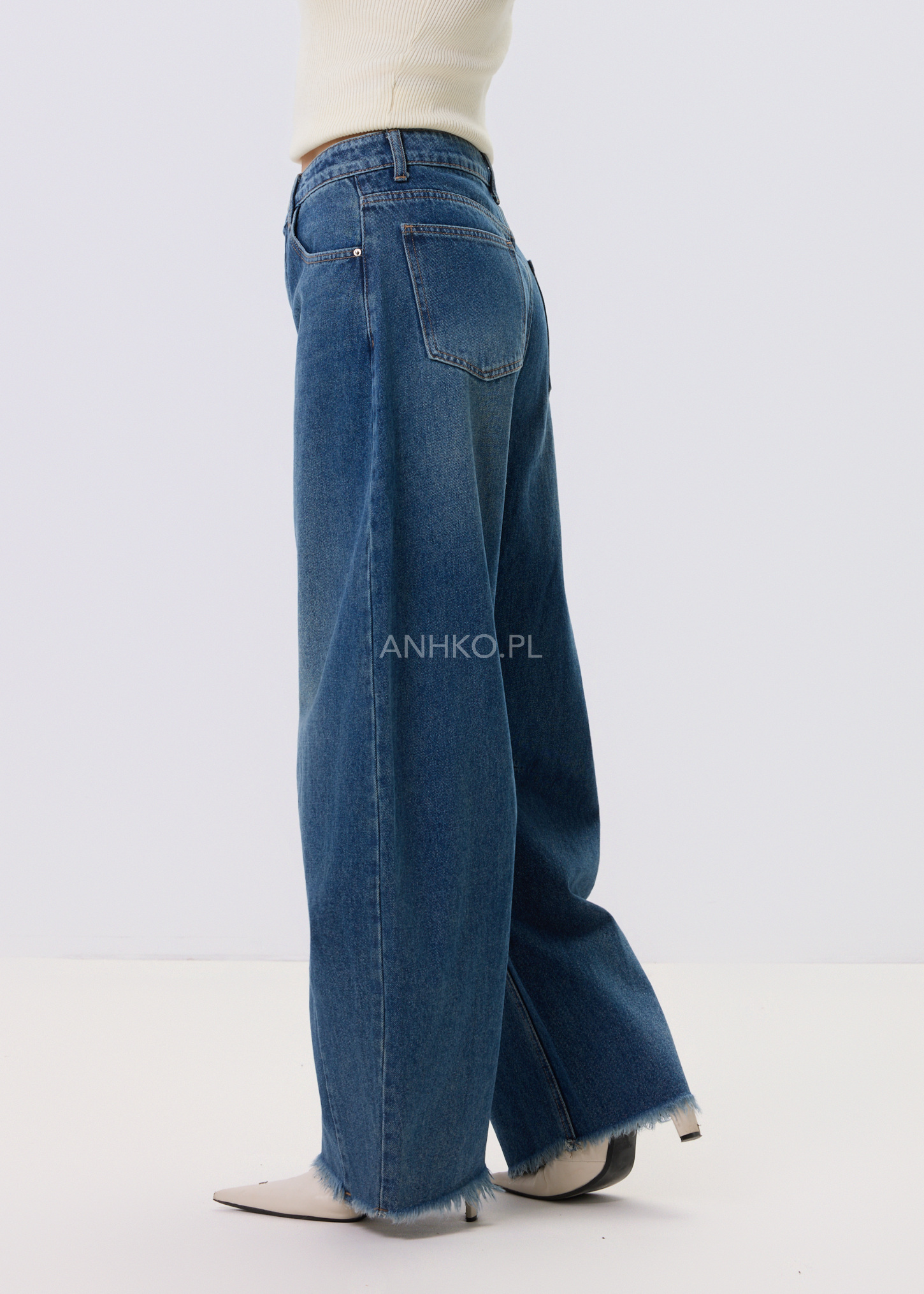 Casualowe spodnie jeansowe w ciemnym odcieniu denimu, zaprojektowane w prostym kroju typu straight z luźniejszym charakterem relaxed. Model posiada standardowy stan i pełną długość nogawek, dzięki czemu dobrze układa się na sylwetce i pasuje do wielu stylizacji. Klasyczna, jeansowa konstrukcja z zapięciem na zamek i guzik zapewnia wygodę noszenia na co dzień. Spodnie wyposażone są w praktyczne kieszenie po bokach oraz z tyłu, co podnosi ich funkcjonalność. Minimalistyczny design i ponadczasowy fason sprawiają, że model świetnie sprawdzi się w stylizacjach casualowych i basicowych — zarówno z t-shirtem, swetrem, jak i koszulą.