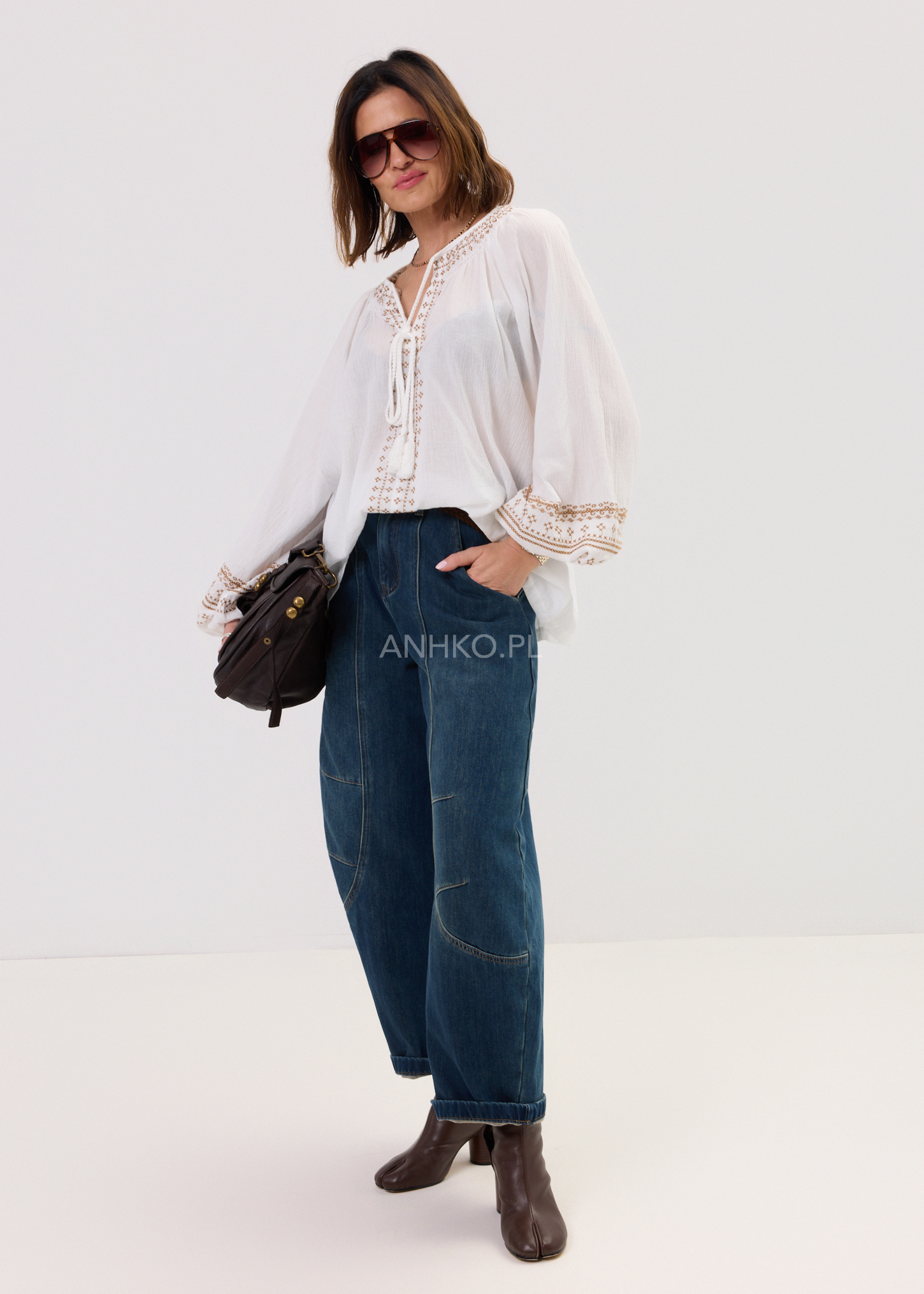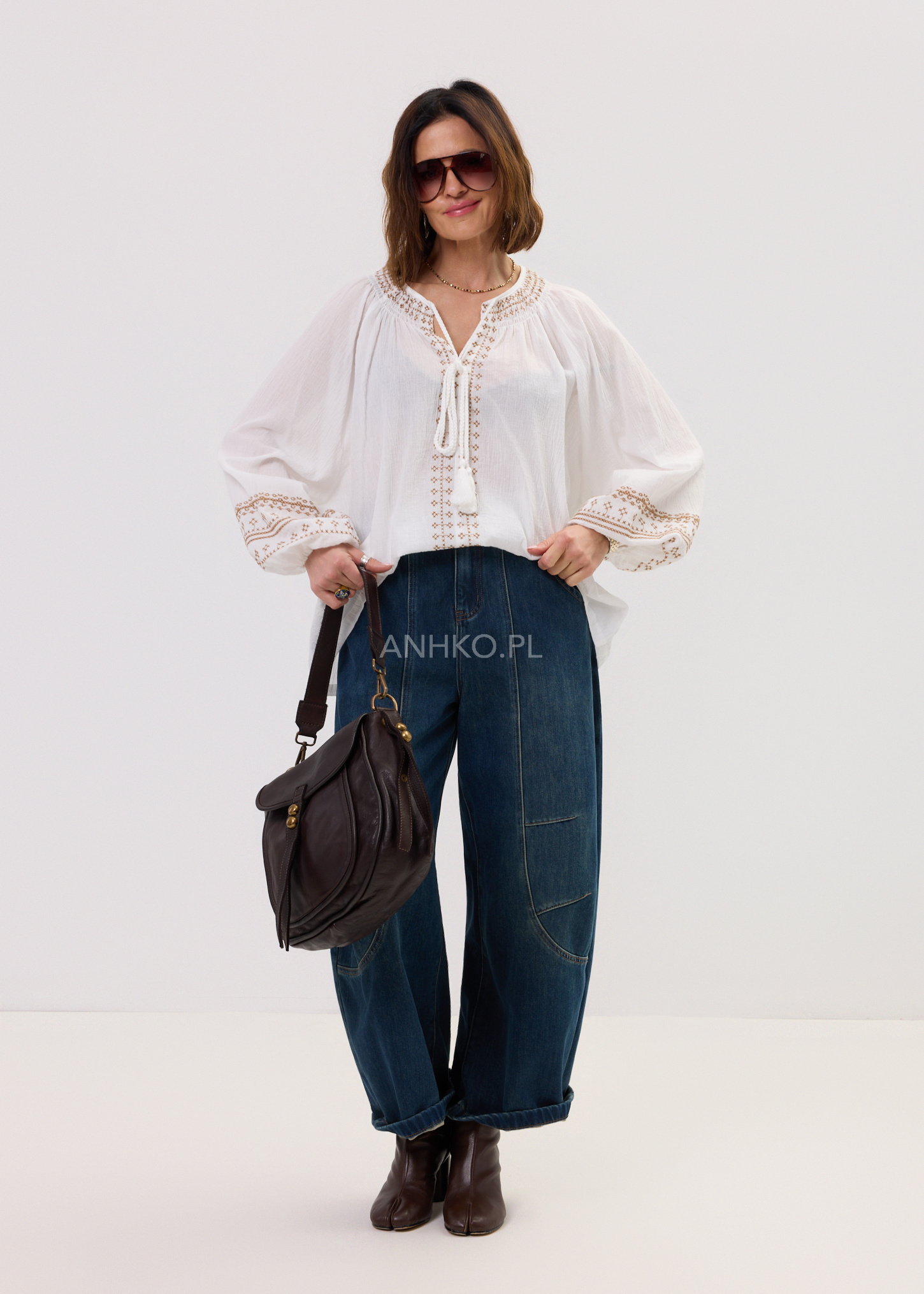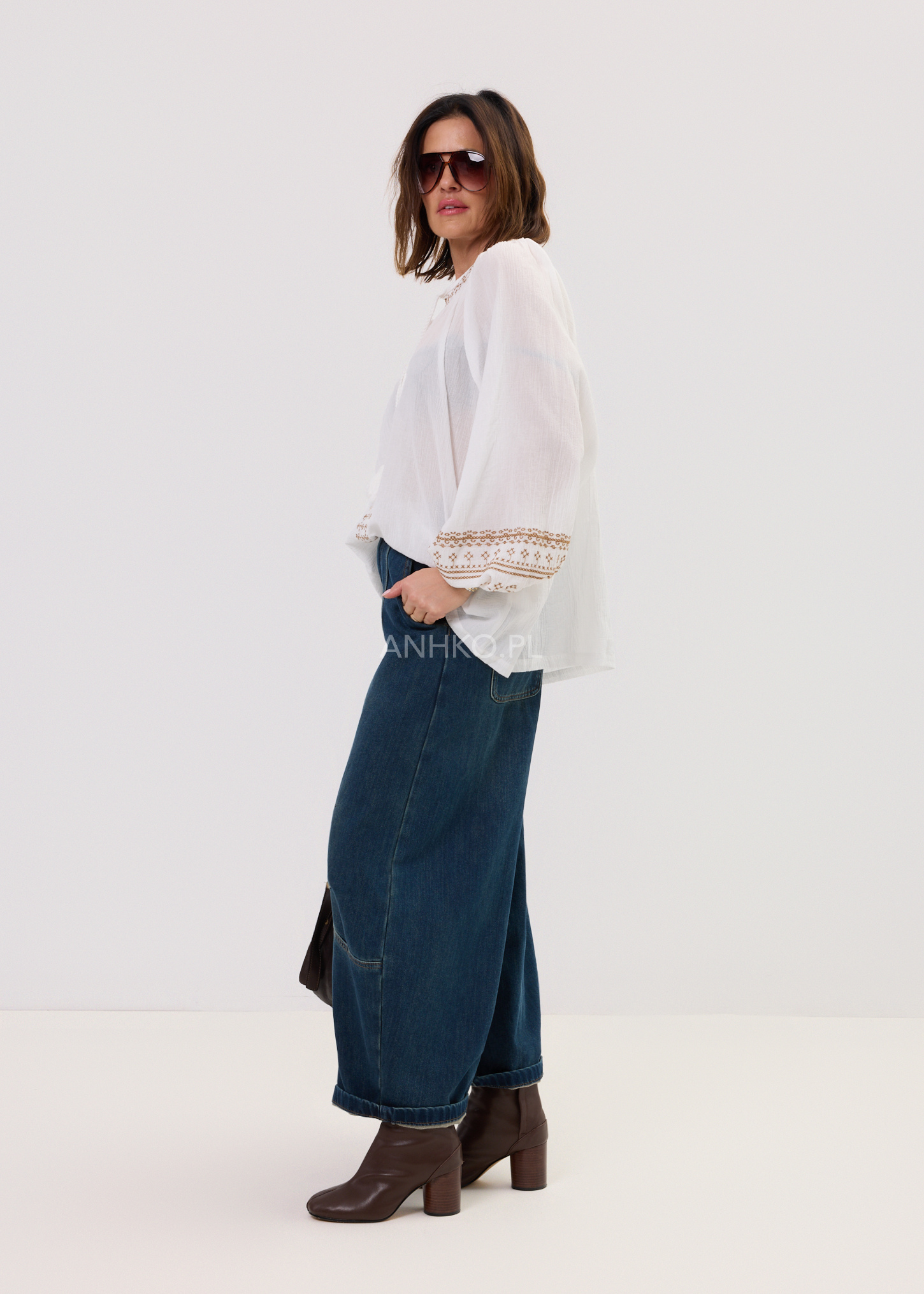 - Szeroki, nowoczesny krój typu balloon