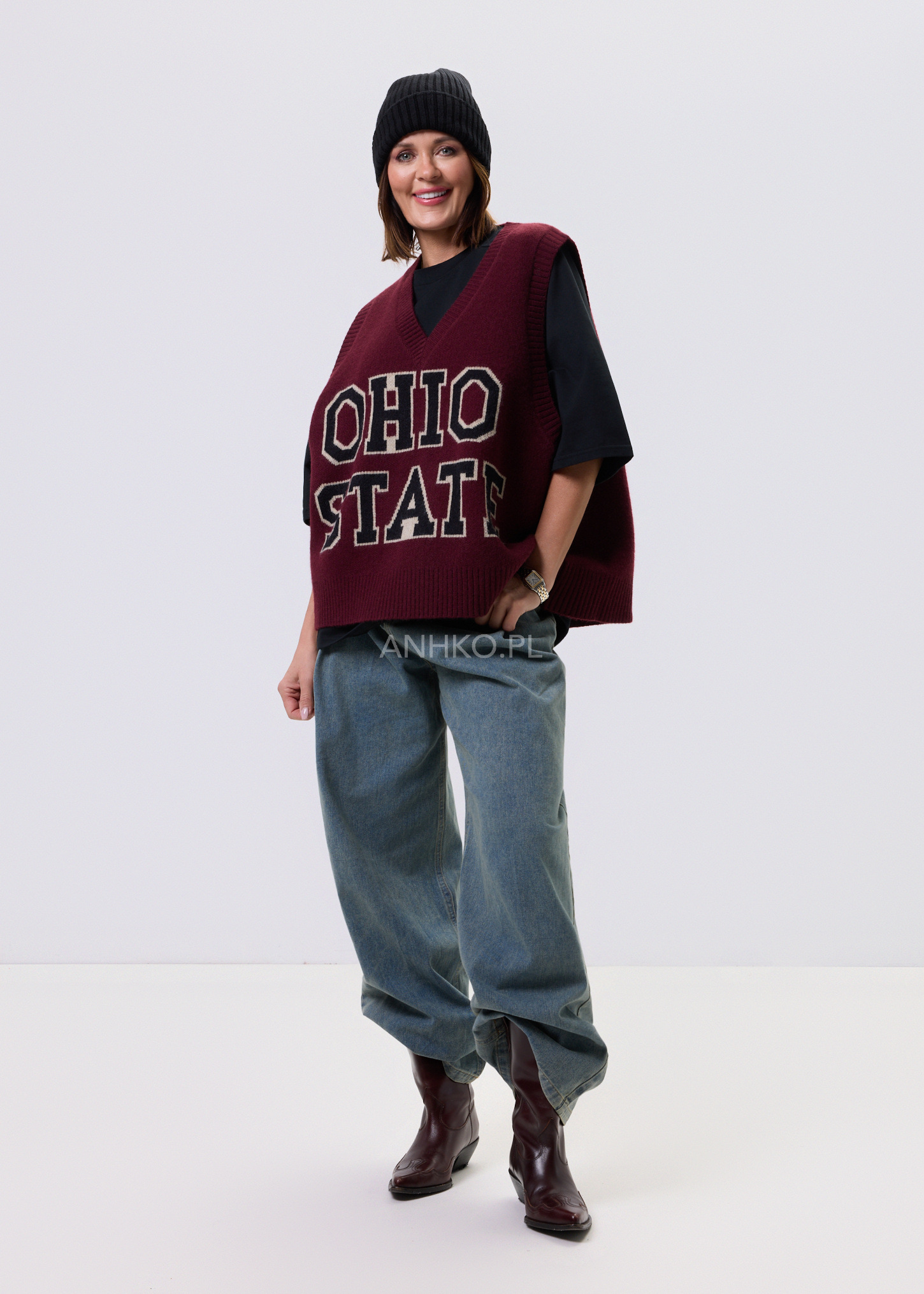 Bezrękawnik Retro College Ohio Bordowy - To idealna propozycja dla fanów stylu vintage i sportowej elegancji. Wykonany z mieszanki akrylu i bawełny, oferuje wygodę i styl na każdą okazję.