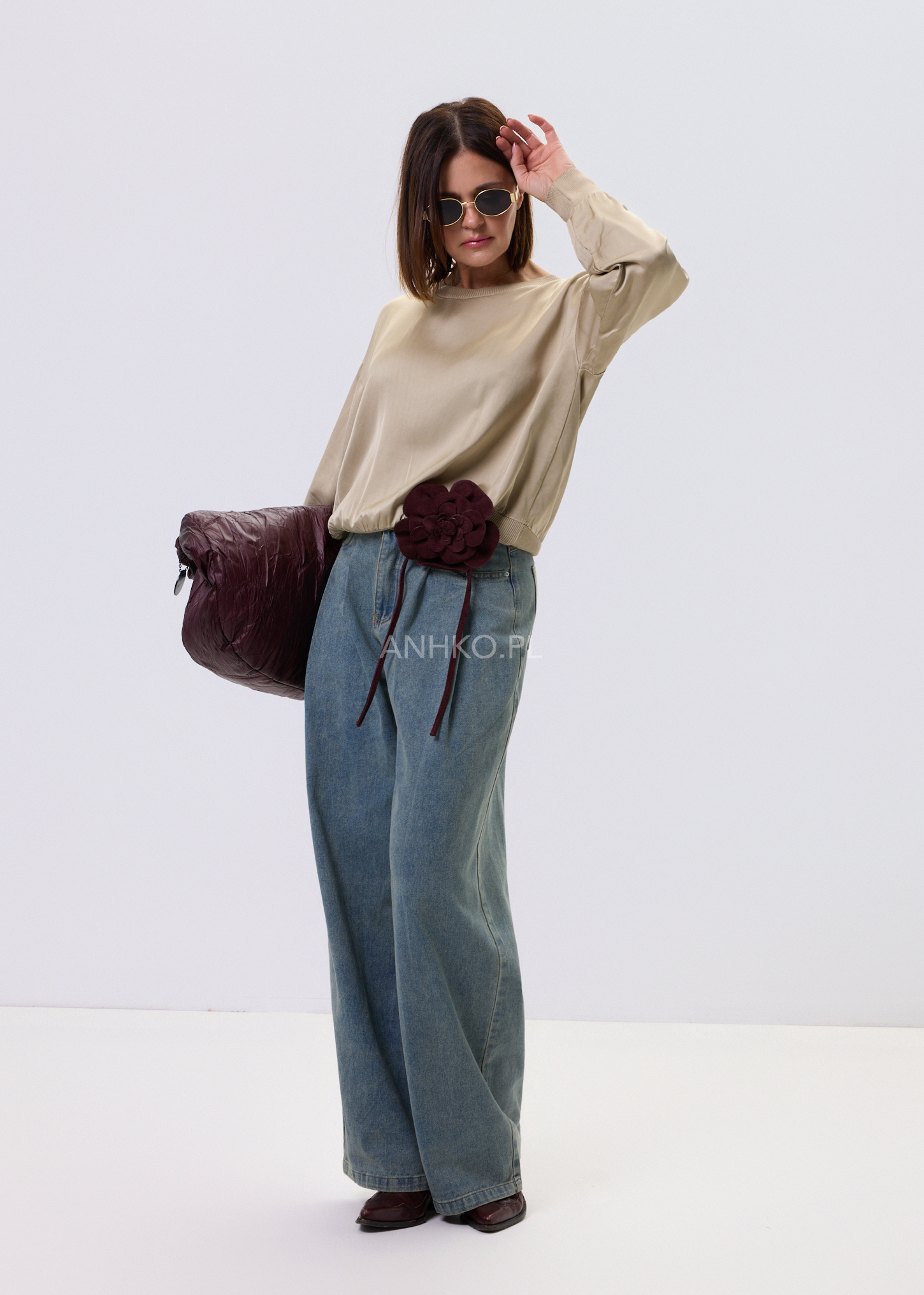 Bluzka Ardenelle Beżowa - Elegancka bluzka o delikatnym połysku, wykonana z mieszanki wiskozy i jedwabiu. Posiada luźny krój, obniżoną linię ramion i ściągacze przy dole oraz rękawach. Idealna na co dzień, do pracy lub na eleganckie wyjścia.