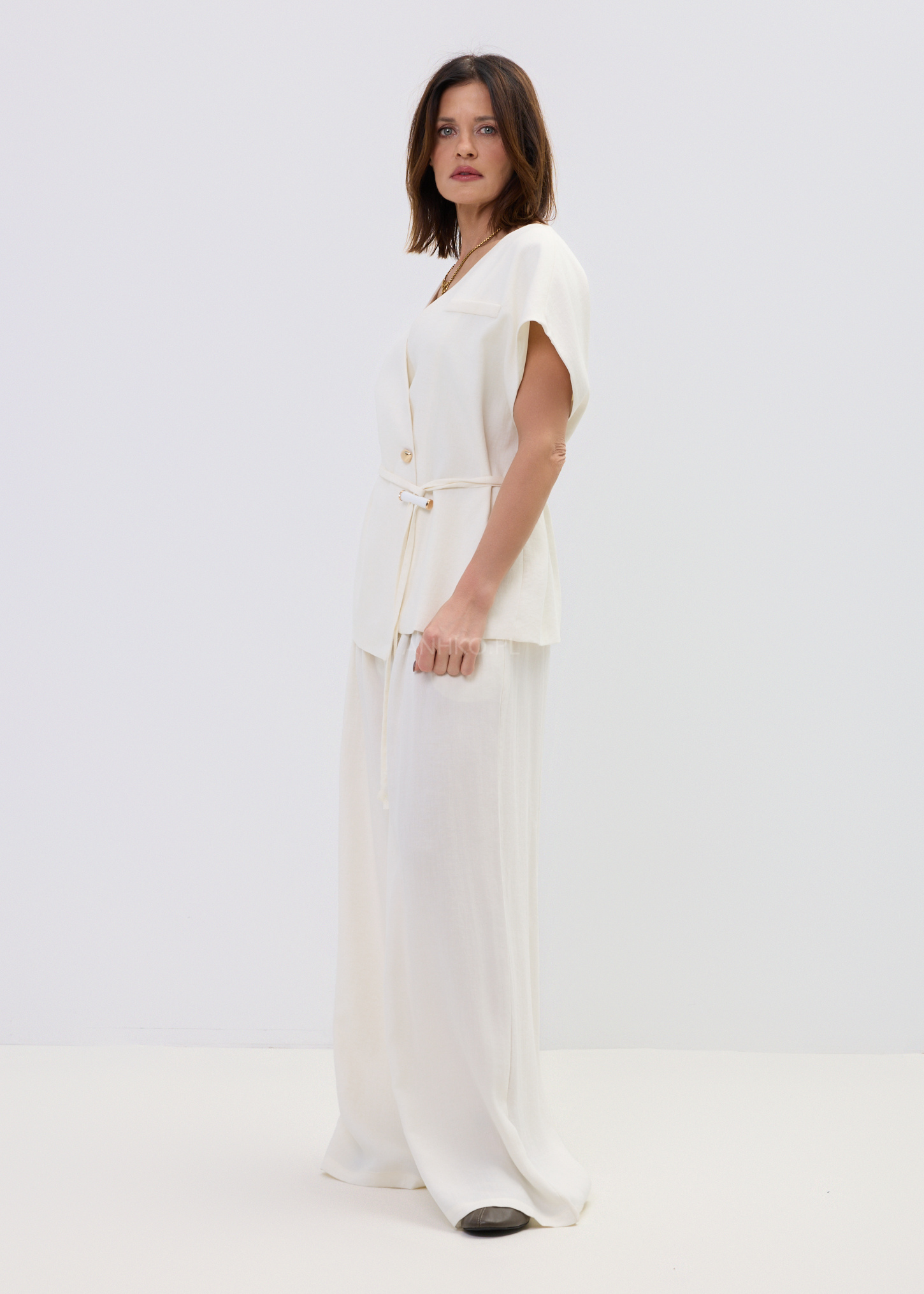 Kamizelka z Dodatkiem Lnu Sofola Śmietankowa
