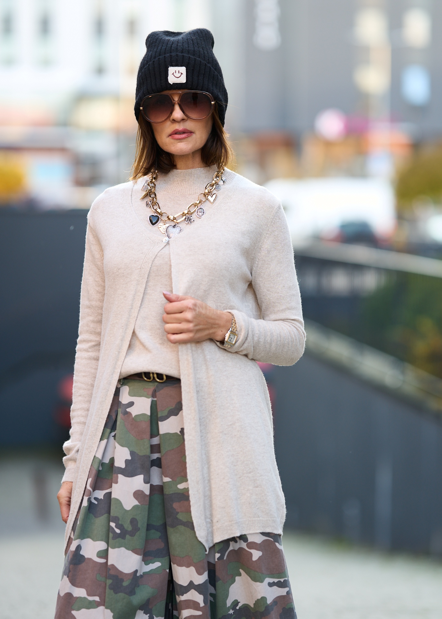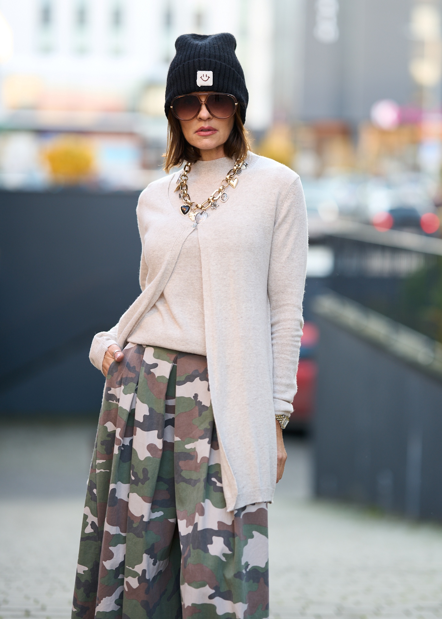 Spodnie Camo Moro - Stylowe spodnie o szerokich nogawkach w militarny wzór moro. Wykonane z wysokiej jakości bawełny z dodatkiem elastanu, zapewniają komfort noszenia. Elastyczny pas i pasek w zestawie sprawiają, że doskonale dopasowują się do sylwetki. Idealne na co dzień oraz do casualowych i streetwearowych stylizacji.