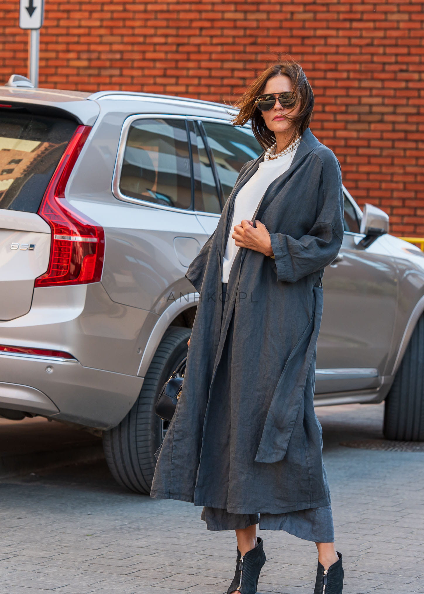 Len ma naturalną, lekką strukturę, jednak grafitowy odcień zapewnia komfort noszenia również w jasnych zestawieniach.