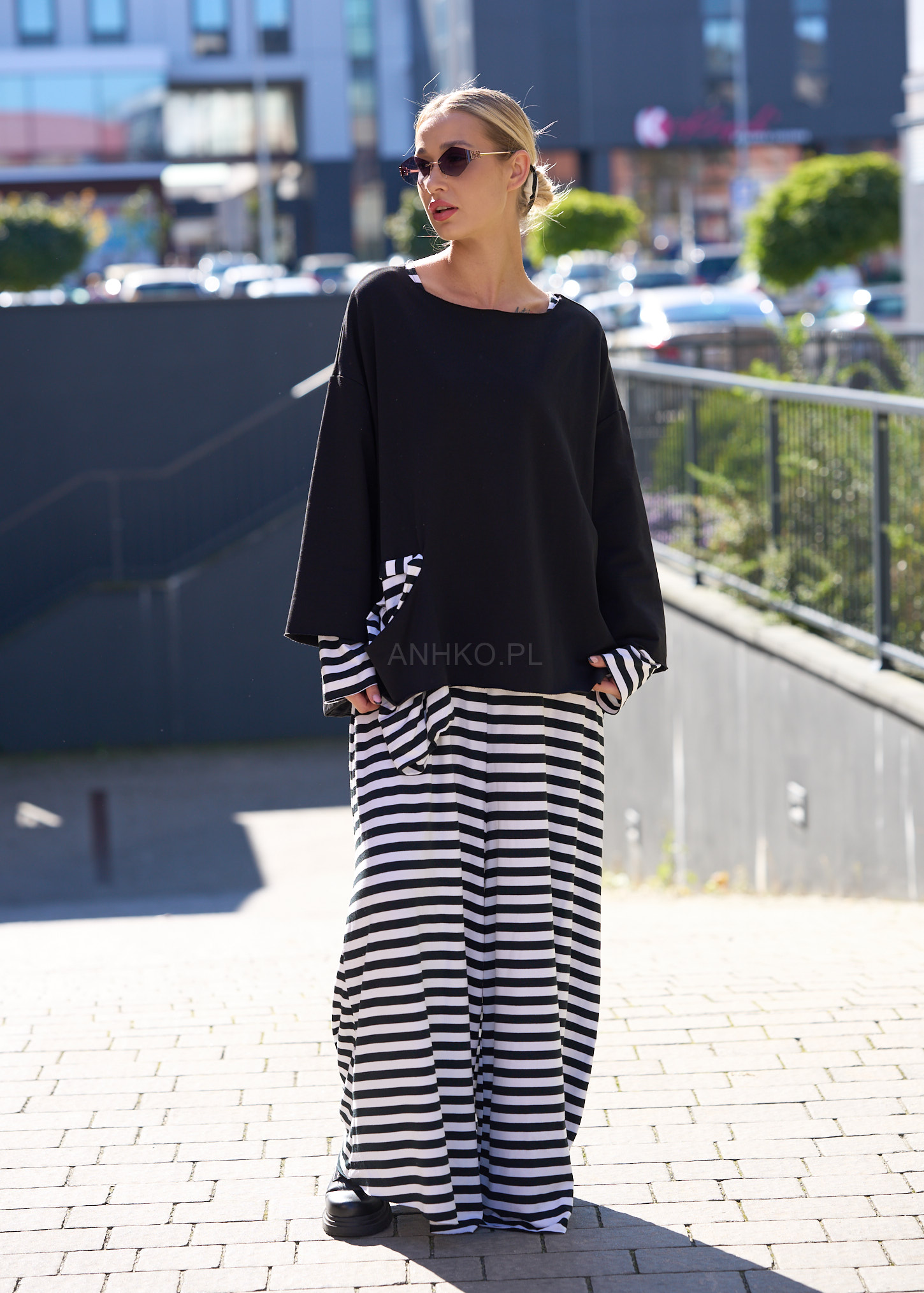 To wyrazisty, a zarazem niezwykle wygodny kombinezon w klasyczne biało-czarne pasy. Wykonany z elastycznego materiału, idealnie dopasowuje się do sylwetki, zapewniając pełną swobodę ruchów. Długość nogawek i rękawów sprawia, że świetnie sprawdzi się zarówno wiosną, jak i jesienią. Subtelny zamek z tyłu ułatwia zakładanie, a wzór pasków optycznie wysmukla sylwetkę. To doskonała propozycja na wyjście do miasta, spotkanie z przyjaciółmi, a także do pracy, jeśli lubisz styl casual z nutą elegancji. Wystarczy dodać trampki lub botki, aby uzyskać pełną stylizację.