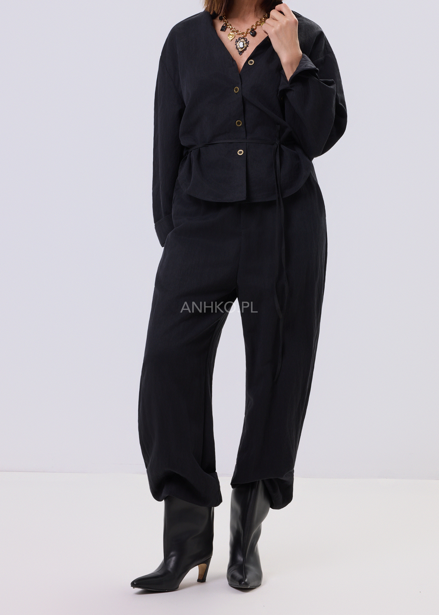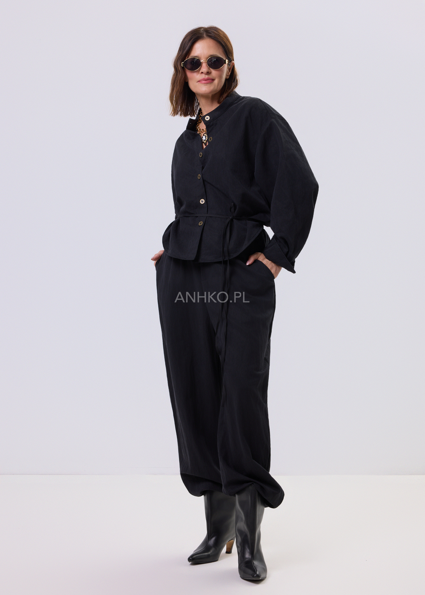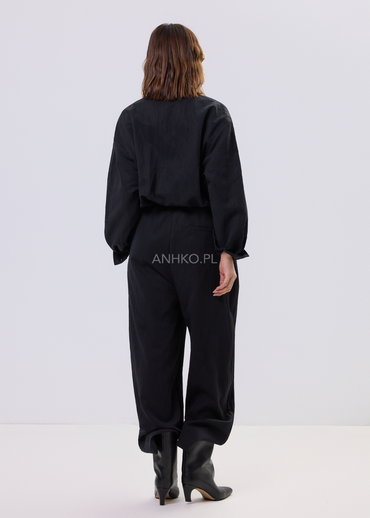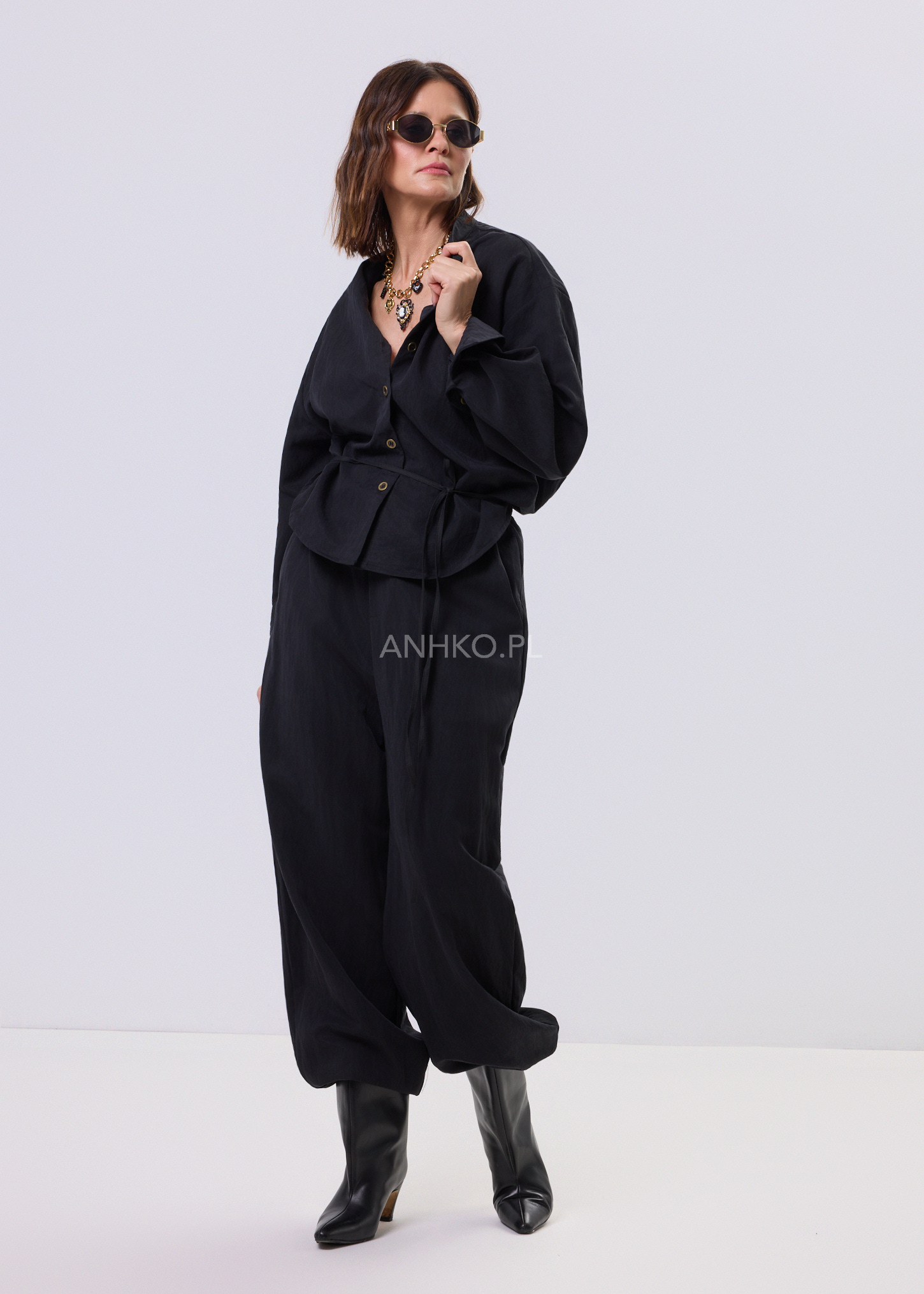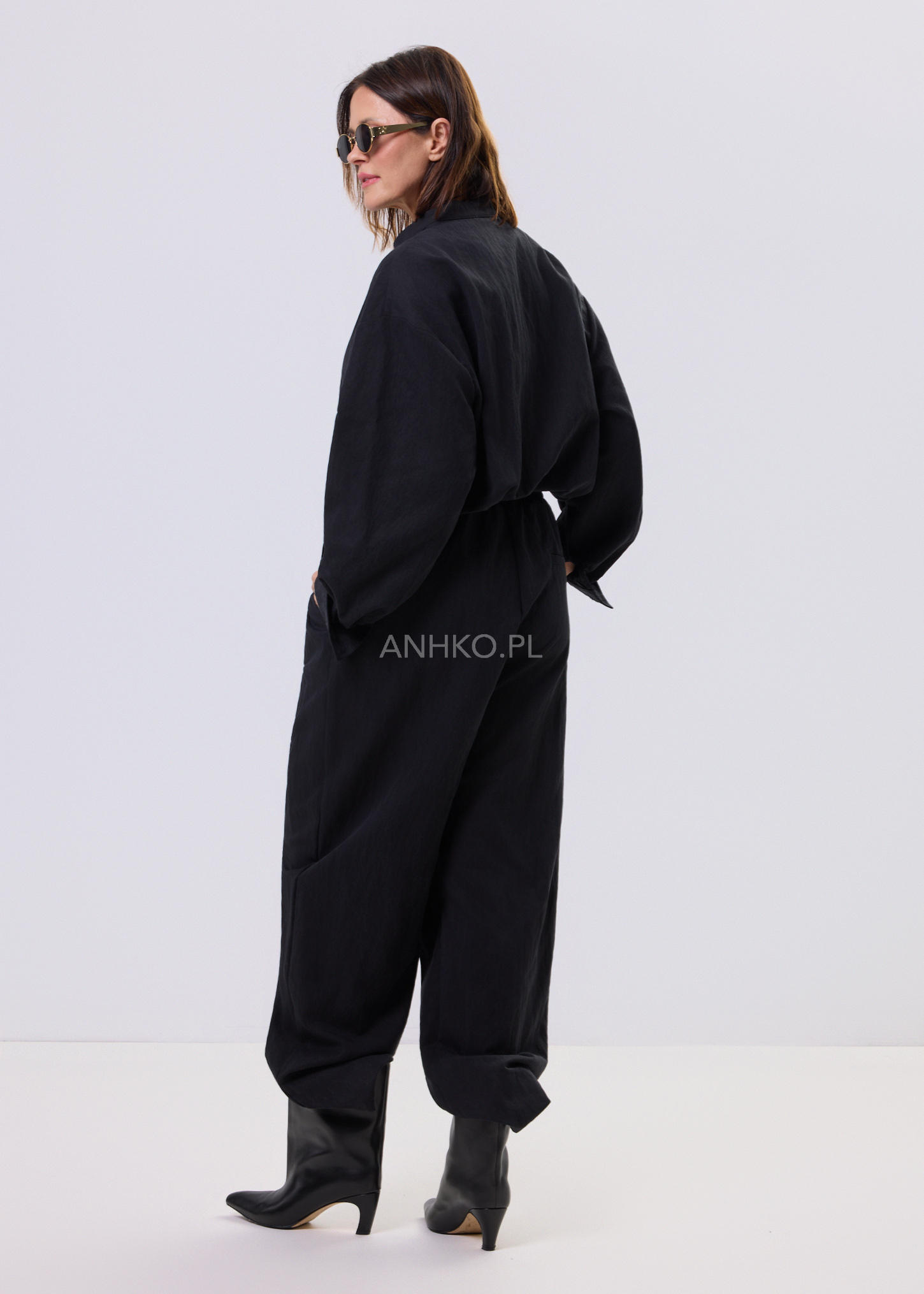 Stylowy kombinezon damski zaprojektowany z myślą o komforcie i uniwersalności. Model posiada długie rękawy oraz elastyczną talię, która subtelnie podkreśla sylwetkę, jednocześnie zapewniając swobodę ruchów. Praktyczne kieszenie boczne zwiększają funkcjonalność, a zapięcie na guziki ułatwia zakładanie i dopasowanie. Nogawki o prostym kroju nadają całości nowoczesnego charakteru. Kombinezon nie posiada podszewki ani halki, dzięki czemu jest lekki i wygodny w noszeniu. Doskonale sprawdzi się w stylizacjach codziennych z trampkami lub botkami, jak również w bardziej eleganckich zestawach z paskiem i biżuterią – idealny do pracy, na spotkania czy miejskie wyjścia.