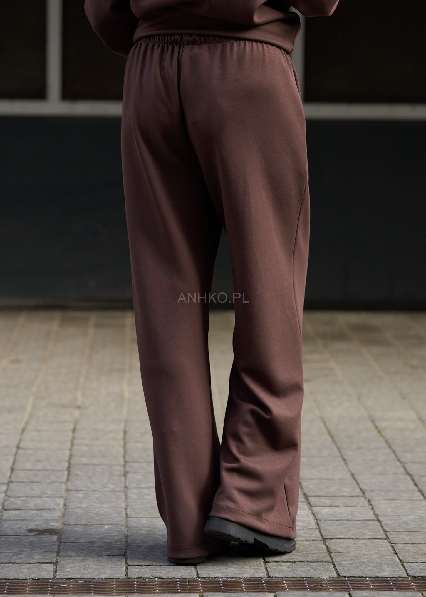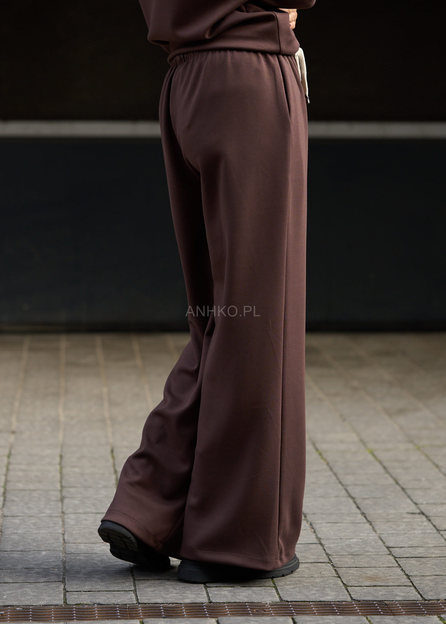 Miękka dzianina z dodatkiem elastanu zapewnia komfort noszenia przez cały dzień, a elastyczny pas ze sznurkiem dopasowuje się do talii. Szeroka nogawka i swobodny krój sprawiają, że komplet świetnie układa się w ruchu i wygląda stylowo zarówno z masywnymi sneakersami, jak i minimalistycznymi dodatkami. To gotowy zestaw, który możesz nosić razem lub stylizować osobno.