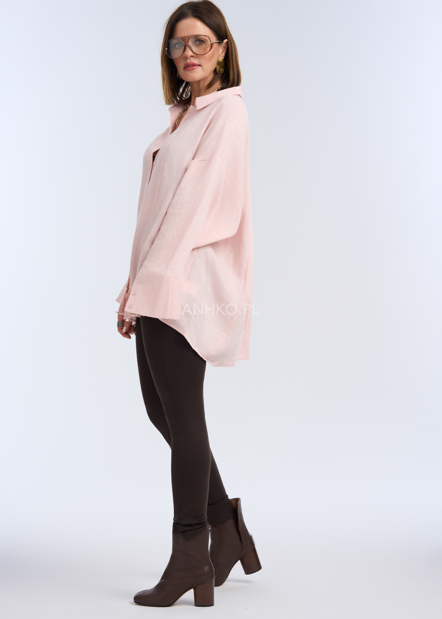 To must-have w każdej garderobie. Jej luźny, oversizowy krój zapewnia komfort i swobodę ruchów, a lekki, przewiewny materiał sprawia, że jest idealna na cieplejsze dni. Koszula wykonana jest z wysokiej jakości mieszanki rayonu, bawełny i lnu, co sprawia, że jest delikatna w dotyku i świetnie układa się na sylwetce. Subtelny różowy kolor doda Twojej stylizacji elegancji i świeżości. Doskonale komponuje się zarówno z jeansami, jak i eleganckimi spodniami czy spódnicą. Świetny wybór na codzienne wyjścia, spotkania biznesowe czy romantyczne randki.