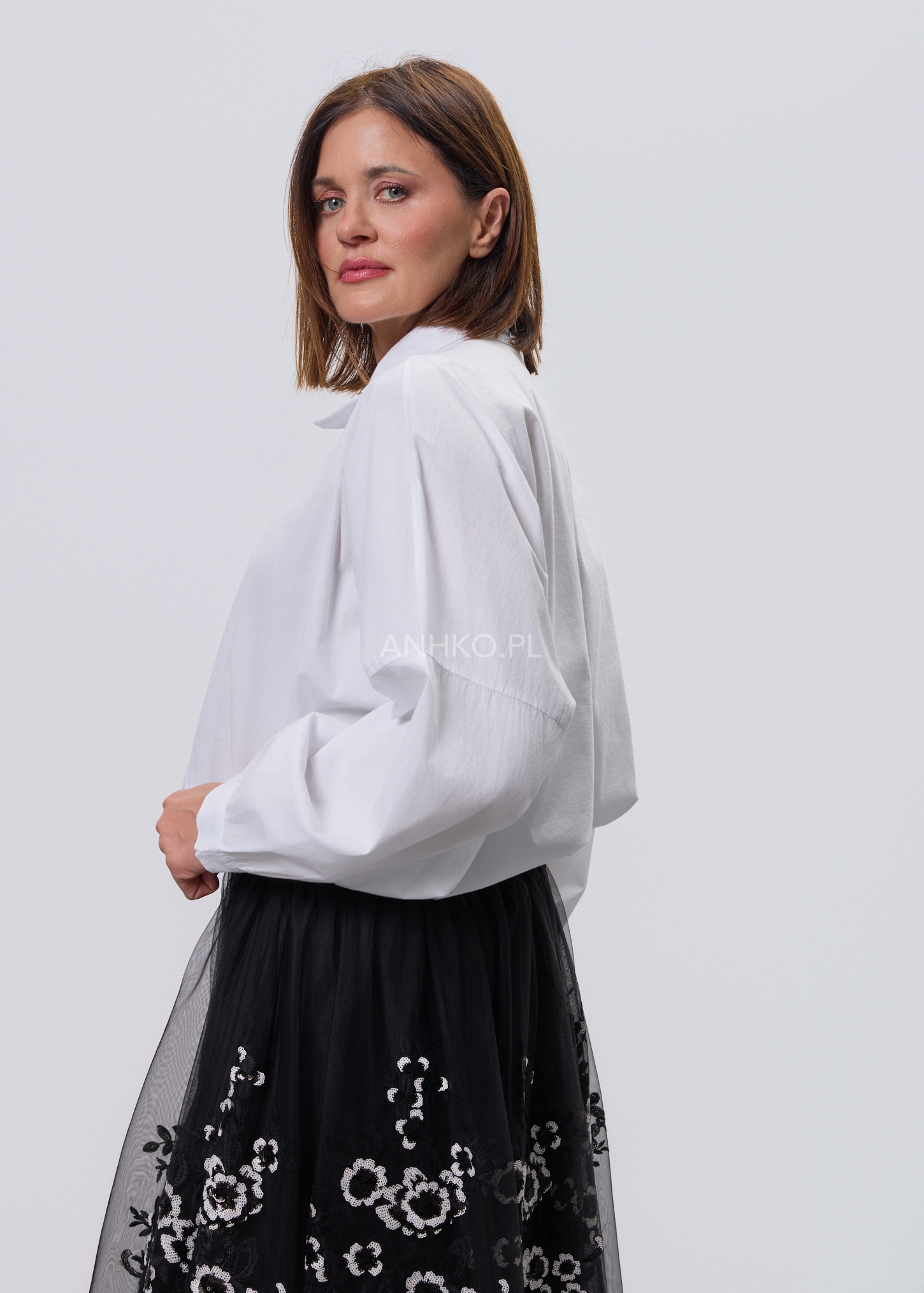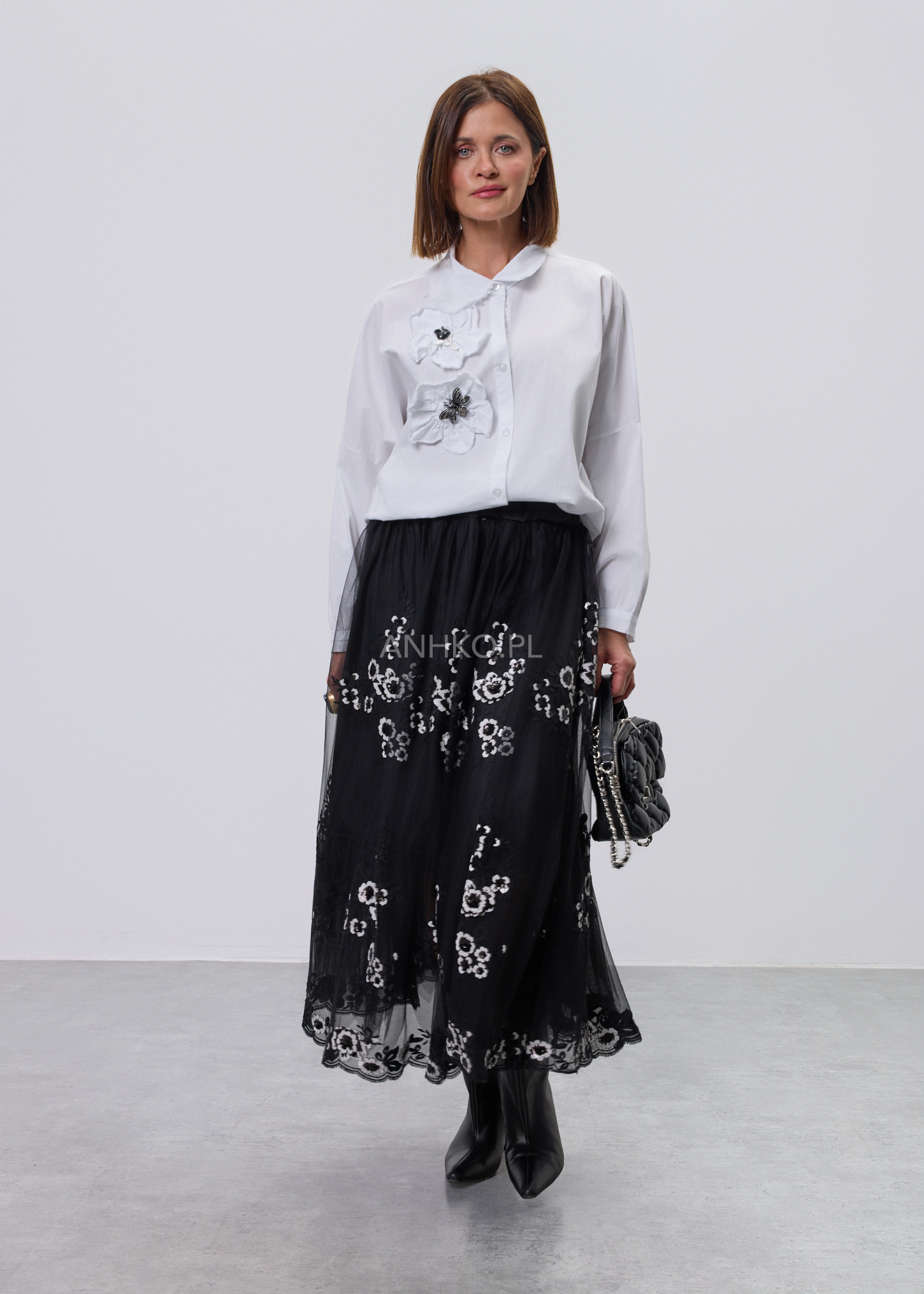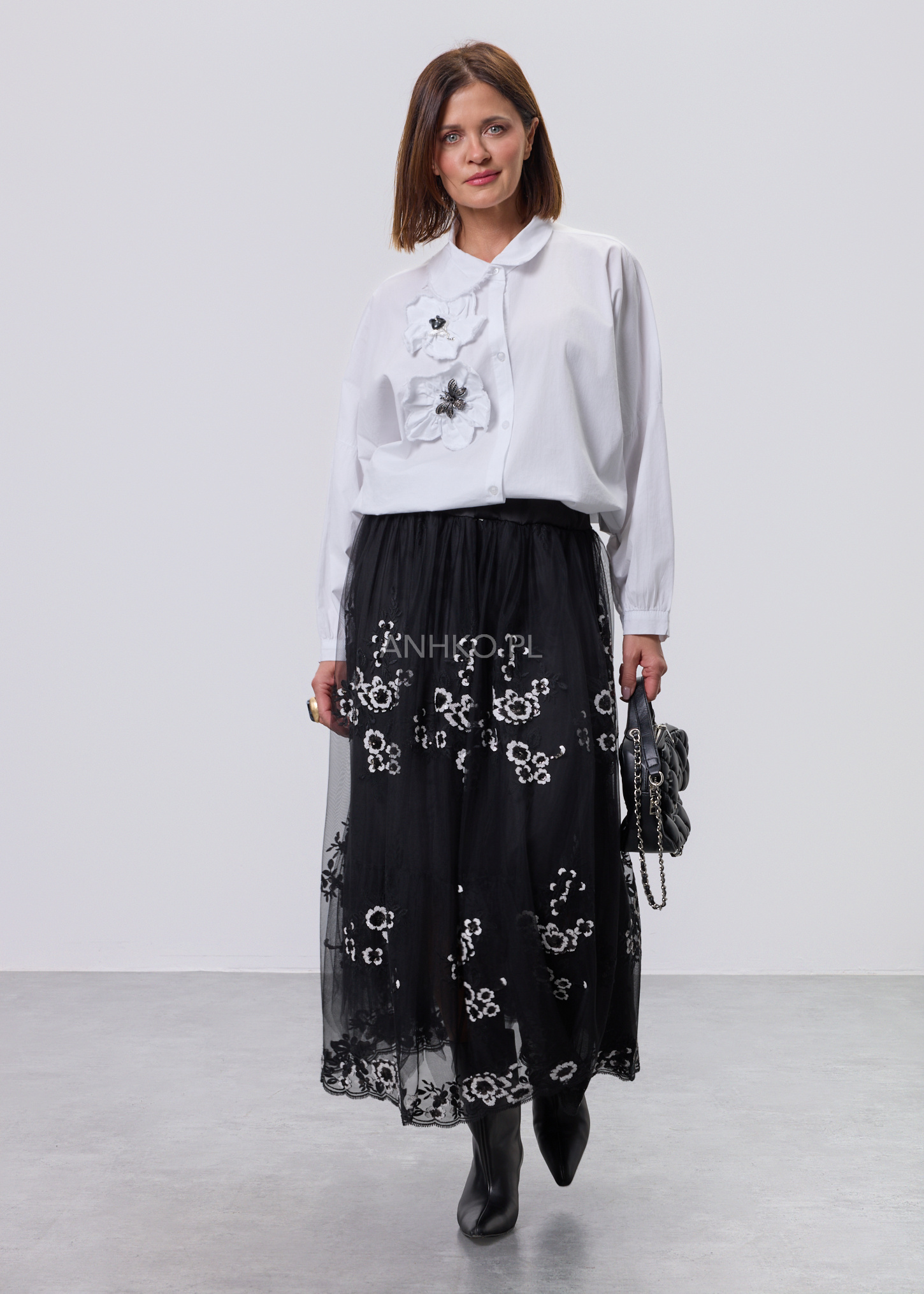 Ta koszula to połączenie wygody, lekkości i subtelnego detalu. Swobodny krój zapewnia komfort noszenia przez cały dzień, a miękka, elastyczna tkanina dopasowuje się do sylwetki bez uczucia sztywności. Ozdobne, przestrzenne aplikacje po jednej stronie przodu nadają całości unikalnego charakteru i sprawiają, że model wyróżnia się na tle klasycznych koszul. Koszula zapinana jest na guziki, bez podszewki, co czyni ją lekką i przewiewną. Doskonale sprawdzi się w zestawieniu z jeansami, spodniami materiałowymi lub spódnicą. Można ją nosić na co dzień, do pracy w stylu smart casual, na spotkania, wyjścia do miasta czy spokojne okazje towarzyskie.