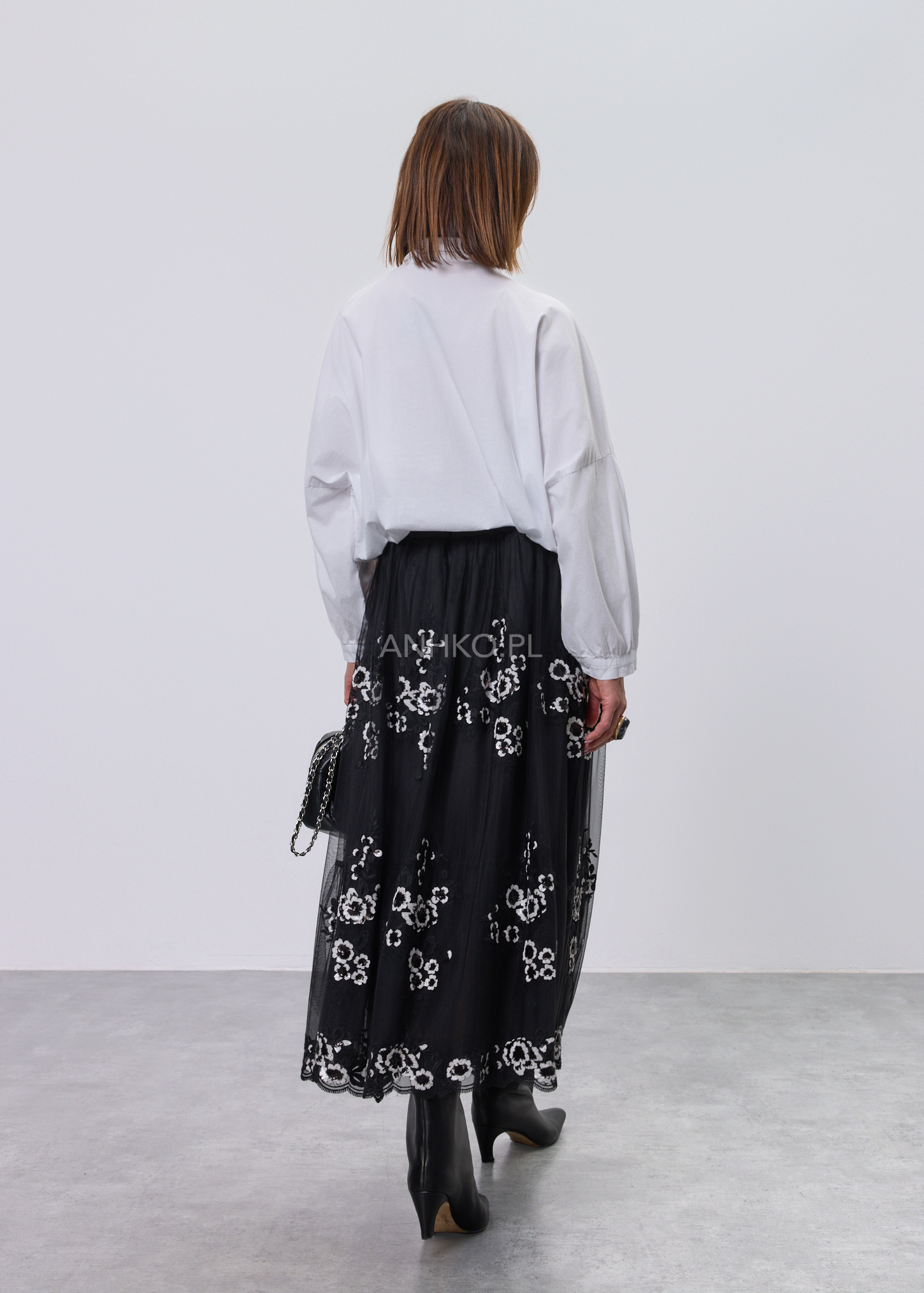 Spódnica Ophelia Poise Czarna - Elegancka, lekka spódnica o kobiecym charakterze, łącząca delikatność i wyrazisty detal. Transparentna warstwa z haftem subtelnie kontrastuje z gładką podszewką, tworząc efekt stylowej głębi. Idealna na wyjątkowe okazje i codzienne stylizacje z nutą elegancji.