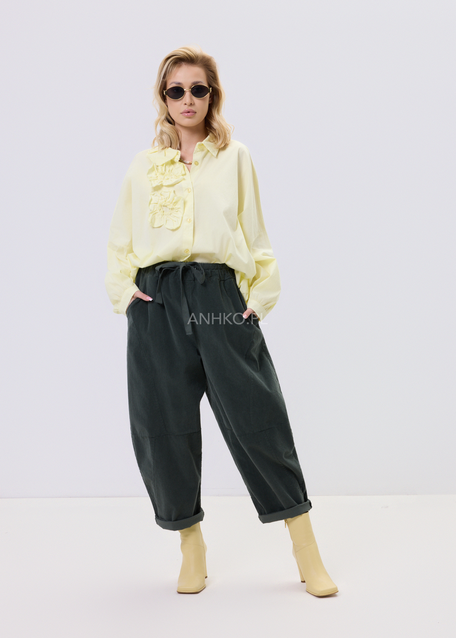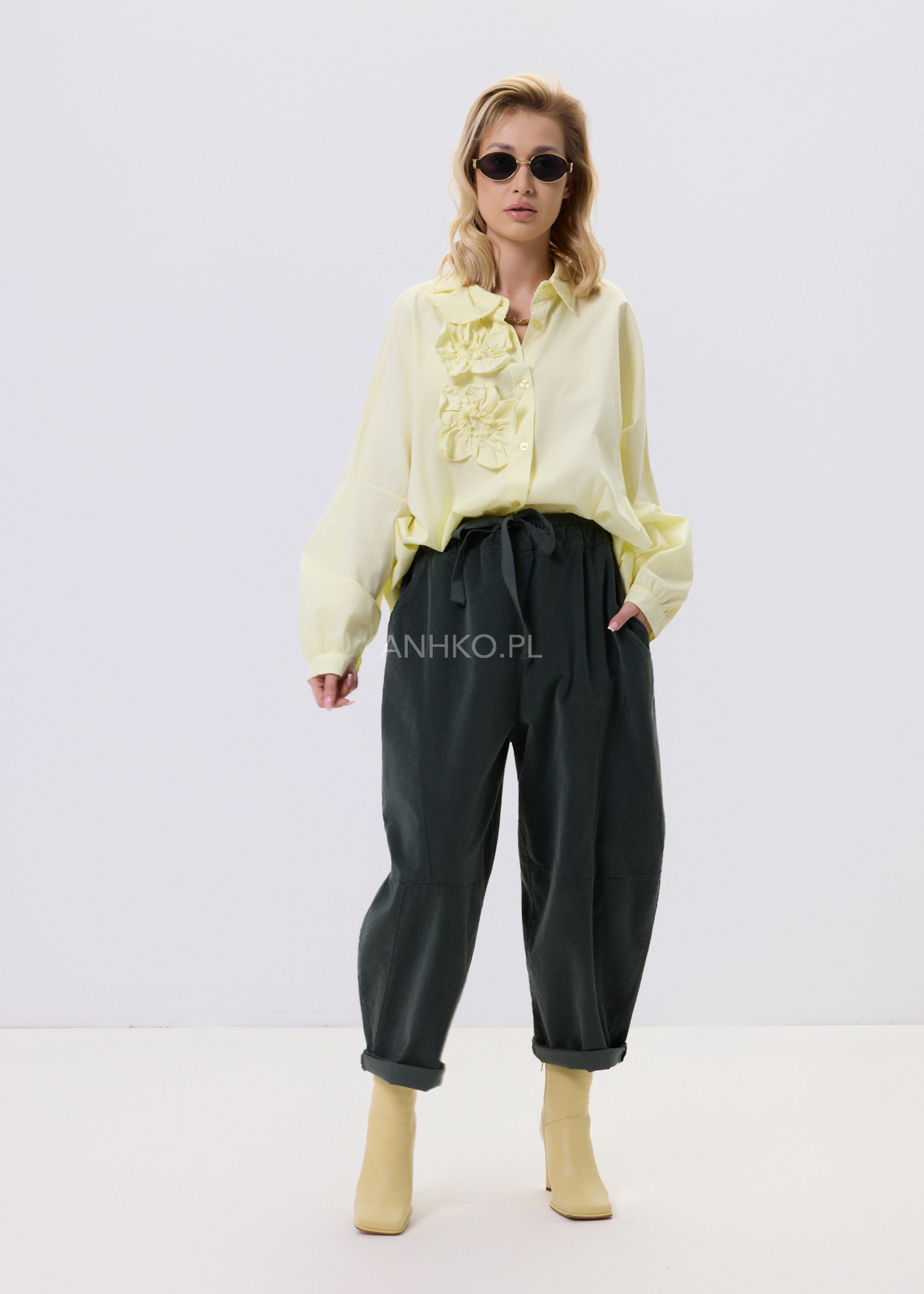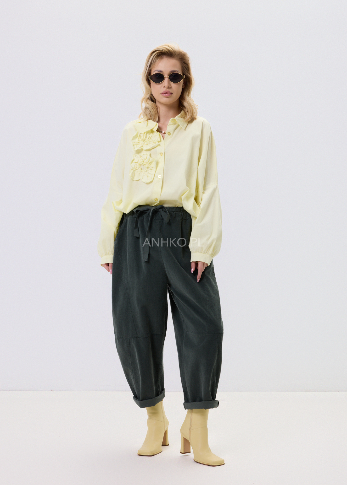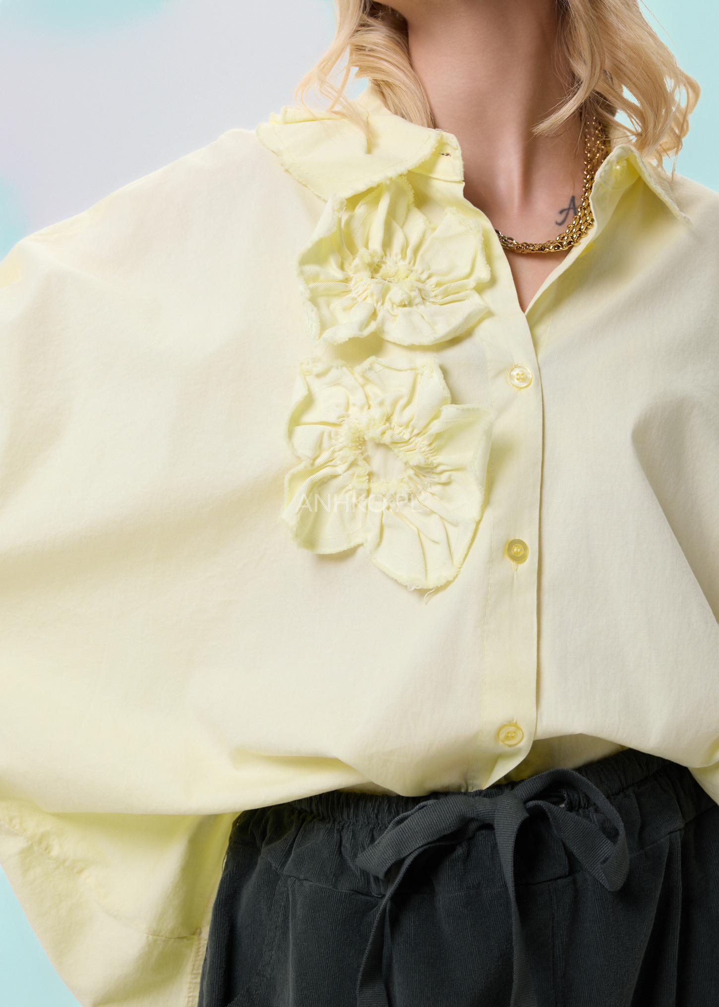 Ta koszula to połączenie wygody, lekkości i subtelnego detalu. Swobodny krój zapewnia komfort noszenia przez cały dzień, a miękka, elastyczna tkanina dopasowuje się do sylwetki bez uczucia sztywności. Ozdobne, przestrzenne aplikacje po jednej stronie przodu nadają całości unikalnego charakteru i sprawiają, że model wyróżnia się na tle klasycznych koszul. Koszula zapinana jest na guziki, bez podszewki, co czyni ją lekką i przewiewną. Doskonale sprawdzi się w zestawieniu z jeansami, spodniami materiałowymi lub spódnicą. Można ją nosić na co dzień, do pracy w stylu smart casual, na spotkania, wyjścia do miasta czy spokojne okazje towarzyskie.