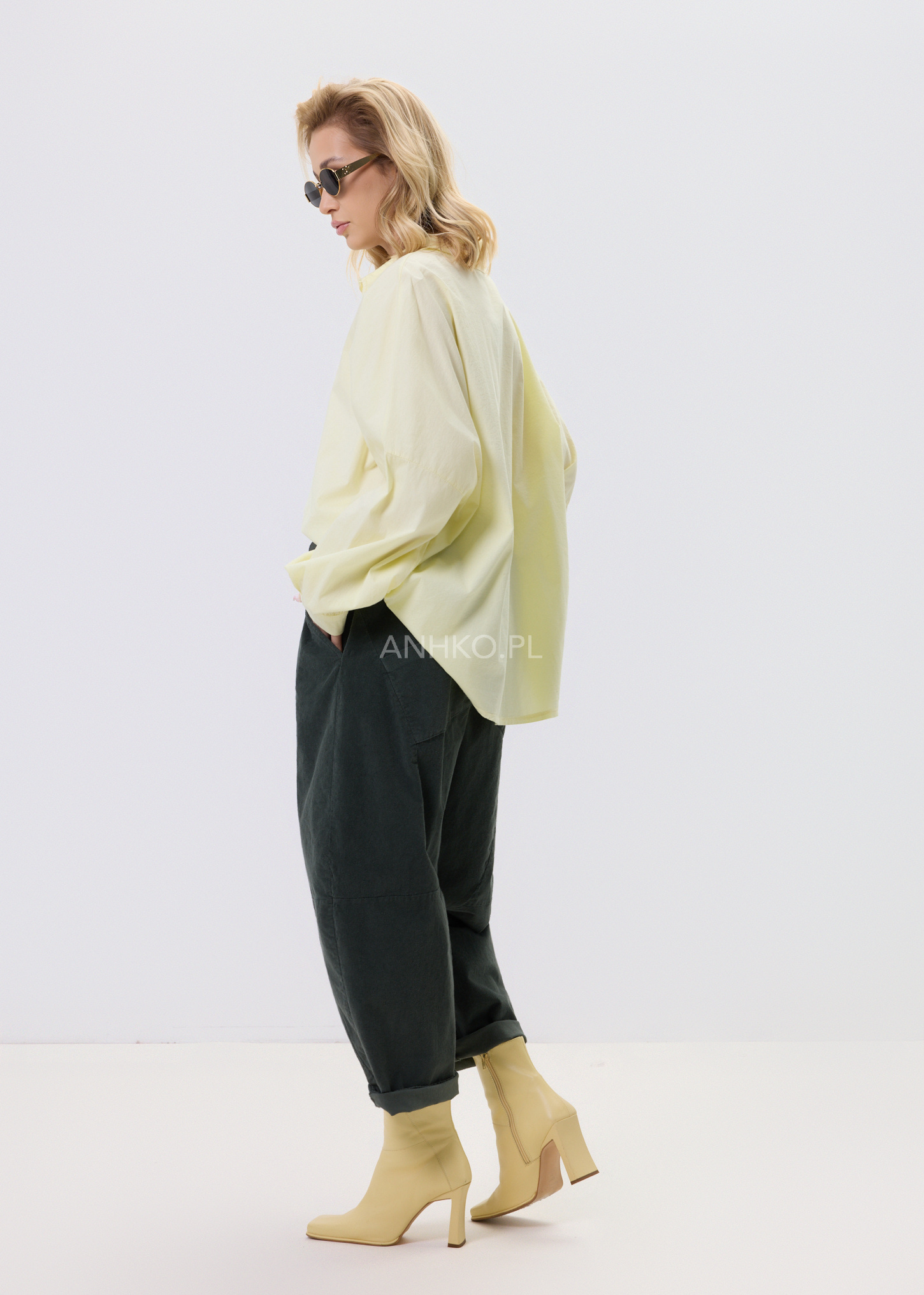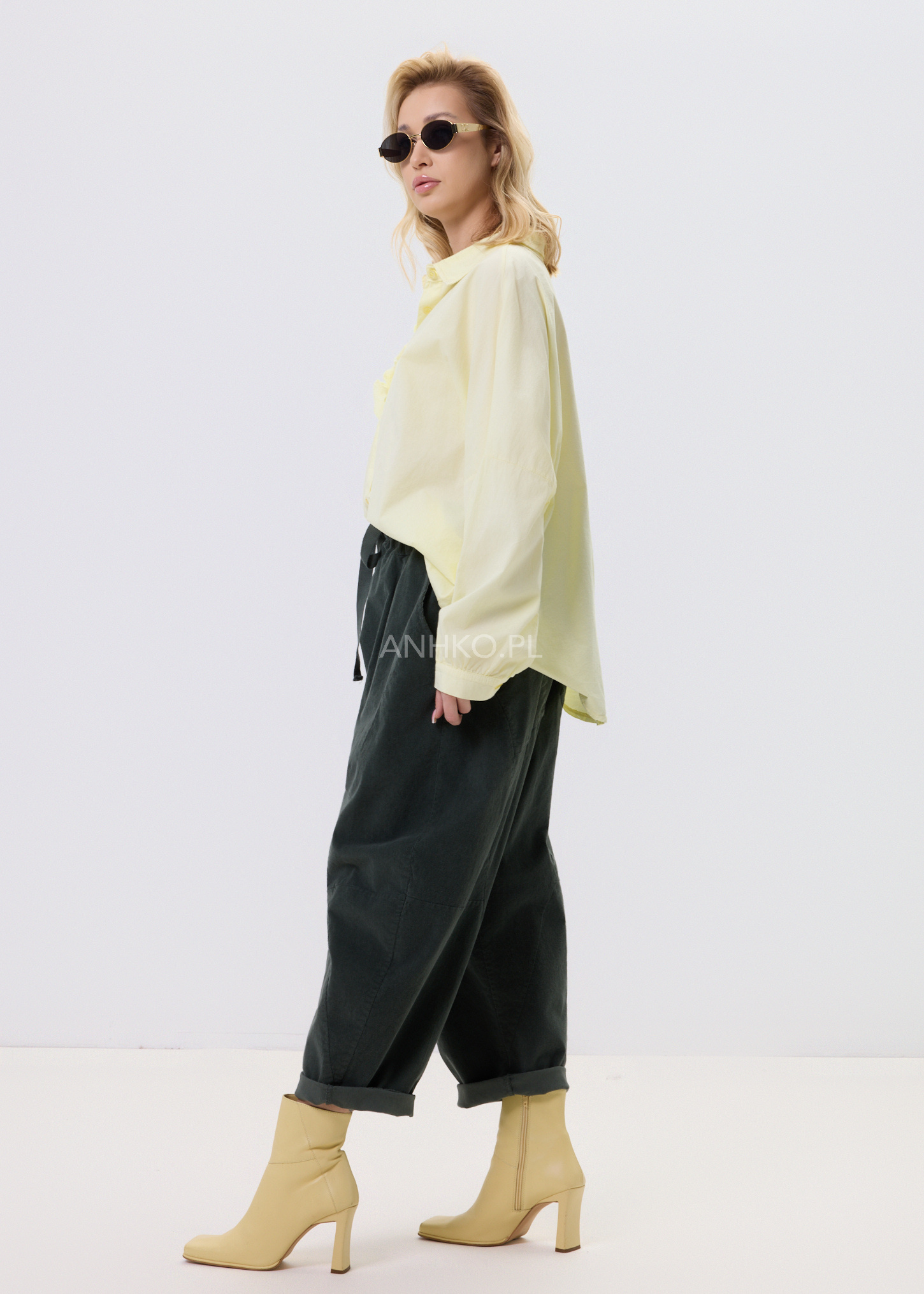 Spodnie Sztruksowe Kavena Drift Khaki - Komfortowe spodnie damskie o luźnym fasonie z elastyczną talią i regulowanym troczkiem. Wyposażone w praktyczne kieszenie, idealne do codziennych stylizacji. Łączą wygodę noszenia z nowoczesnym, minimalistycznym charakterem.