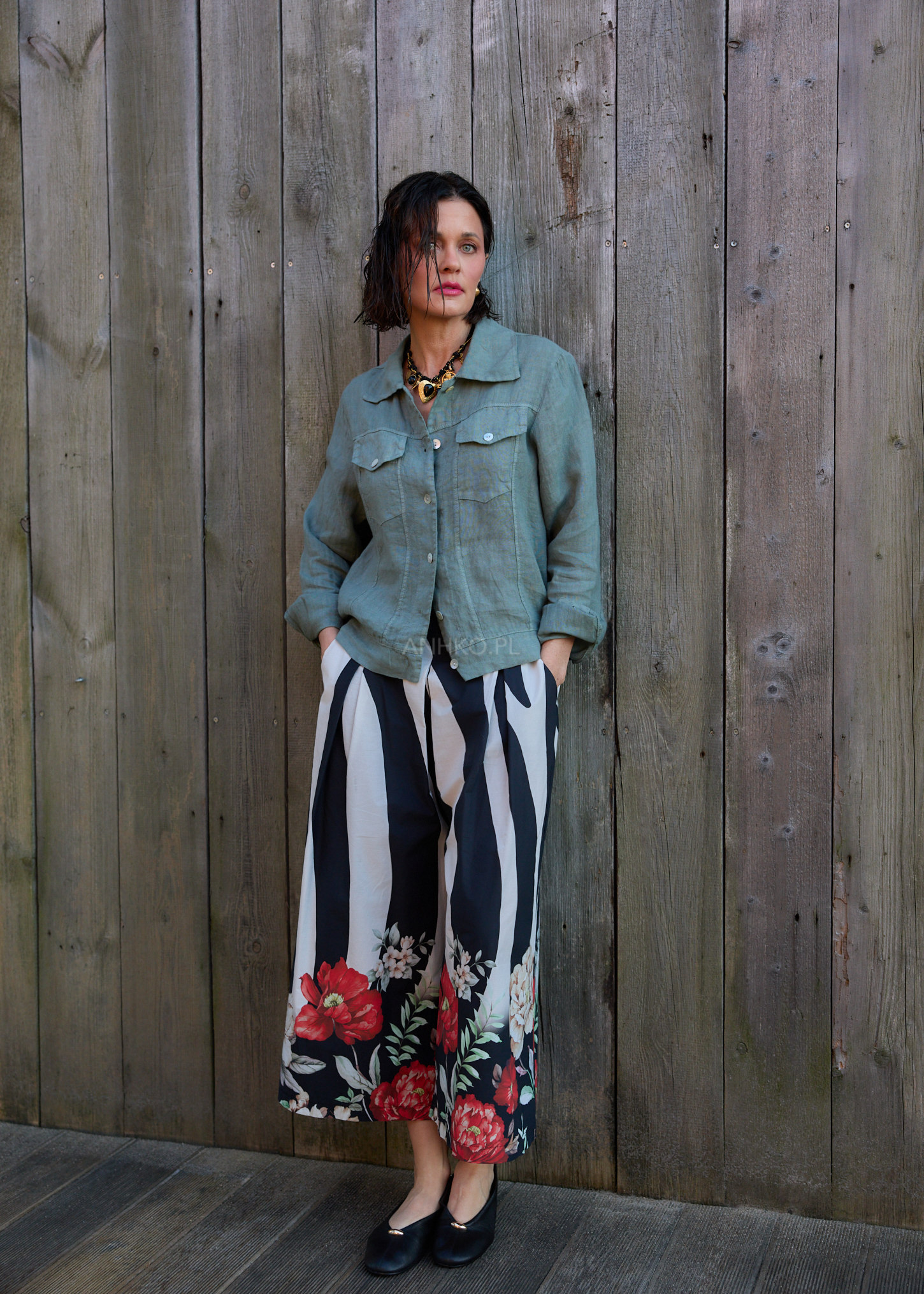 Ta koszula lniana o krótszym, oversize’owym kroju swobodnie układa się na sylwetce, tworząc efekt lekkości i niewymuszonego stylu. Może być noszona zarówno solo, jak i jako overshirt – narzucona na top lub sukienkę buduje warstwowy look i dodaje stylizacji charakteru. Lniana tkanina zapewnia przewiewność, a luźna forma gwarantuje komfort przez cały dzień.