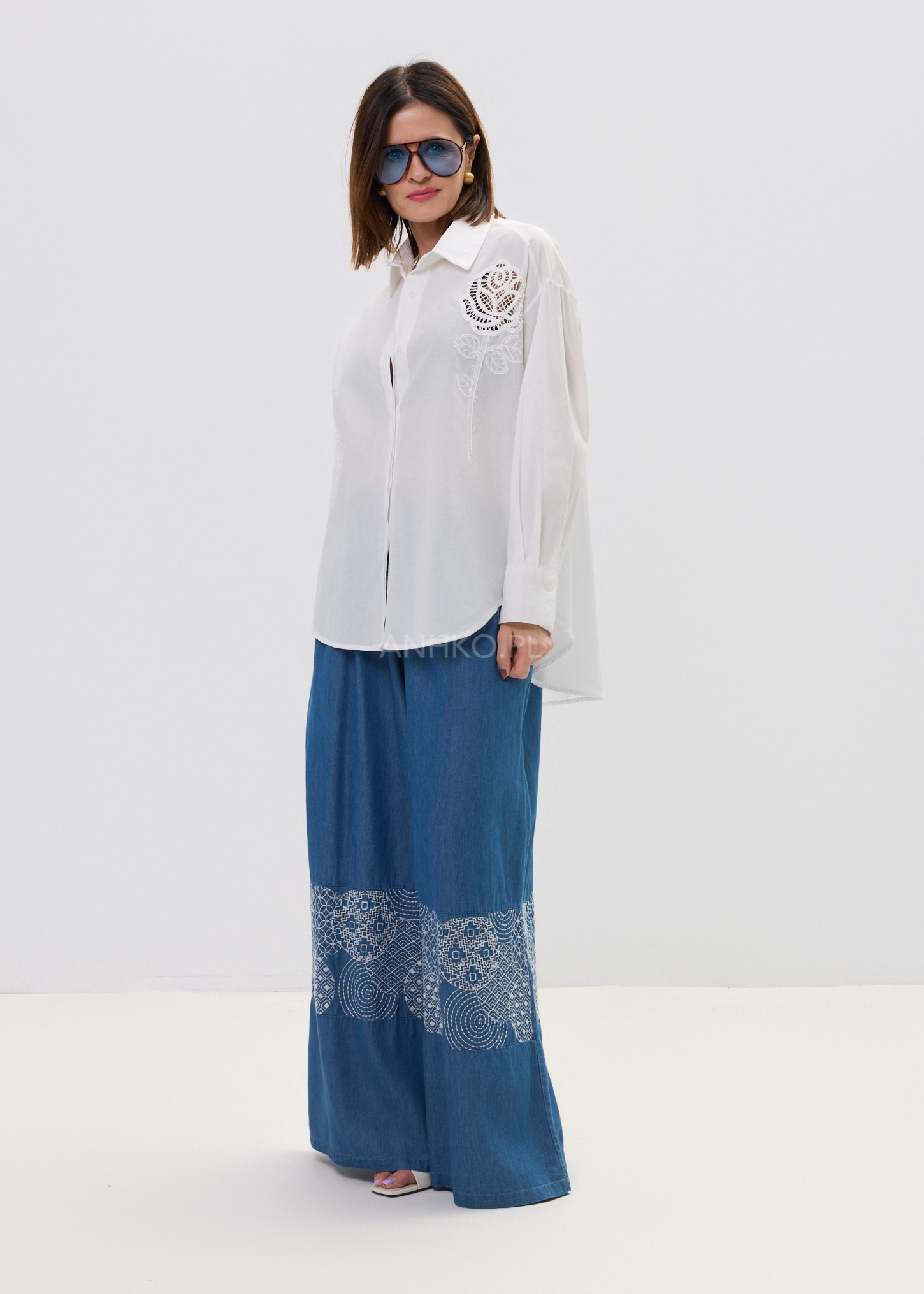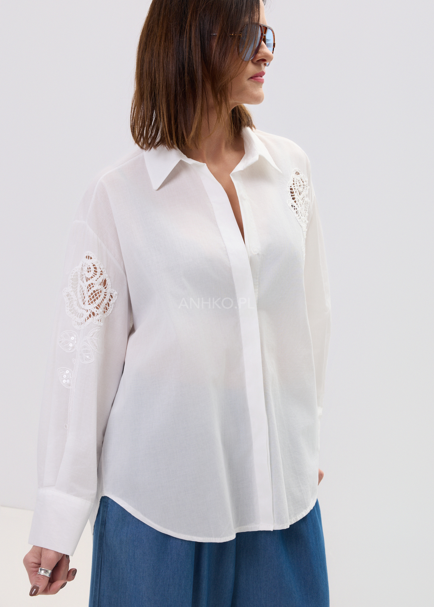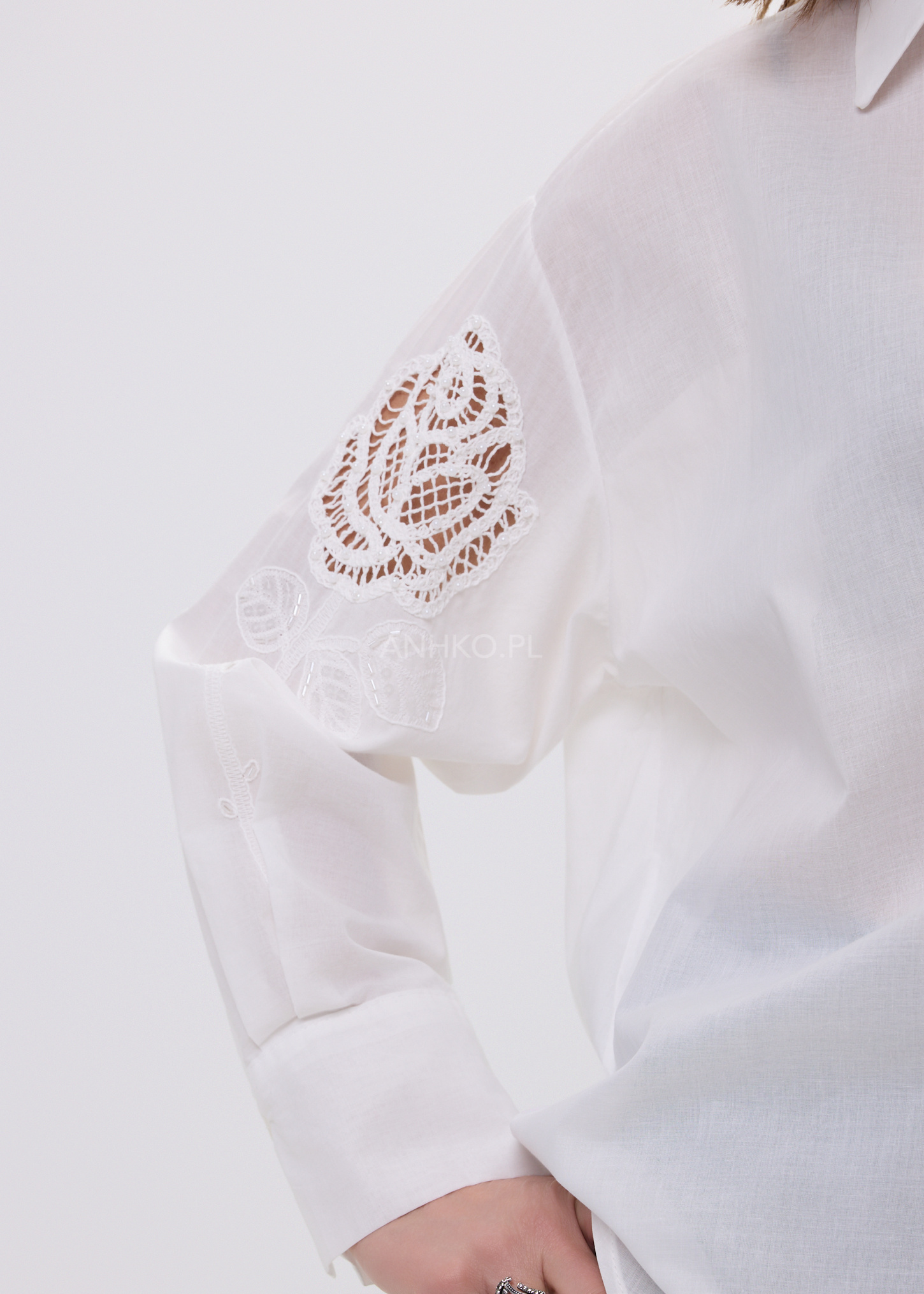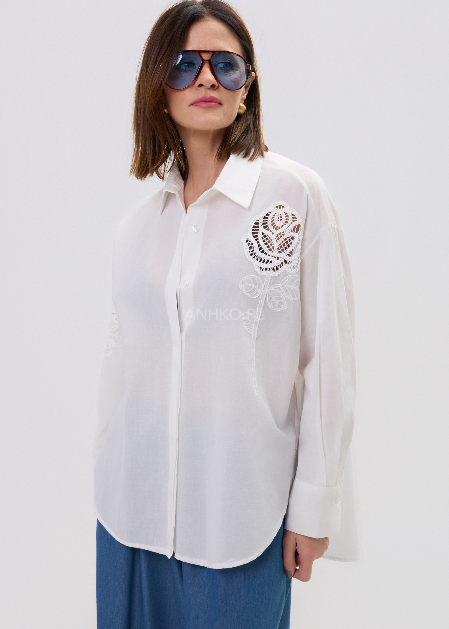 Model przyciąga uwagę dzięki haftowanemu motywowi róży, który dodaje subtelnej romantyczności i wyróżnia całość na tle klasycznych koszul. Klasyczny kołnierz i mankiety równoważą dekoracyjny akcent, dzięki czemu koszula pozostaje uniwersalną bazą stylizacji – zarówno na co dzień, jak i w bardziej dopracowanych zestawach.