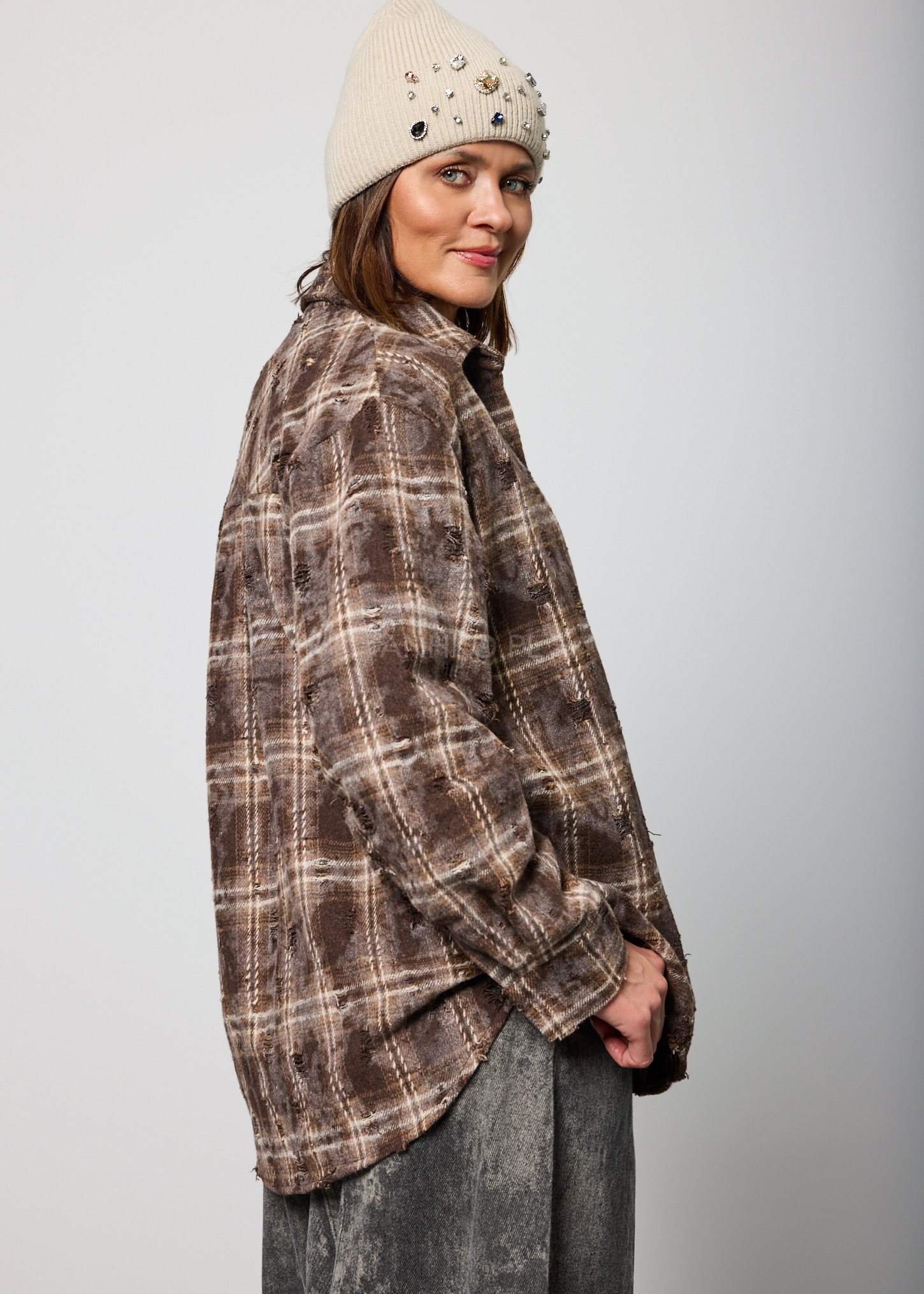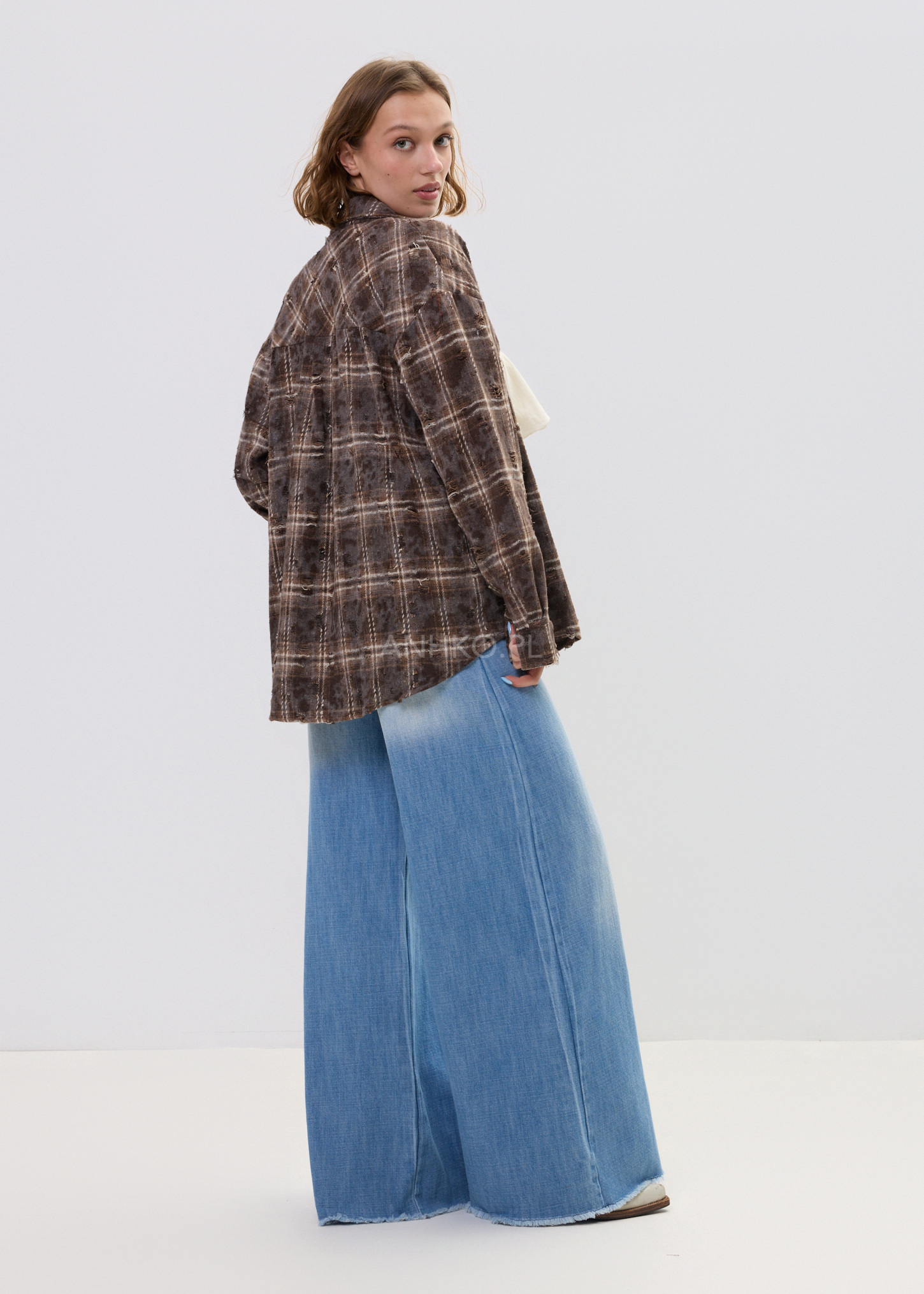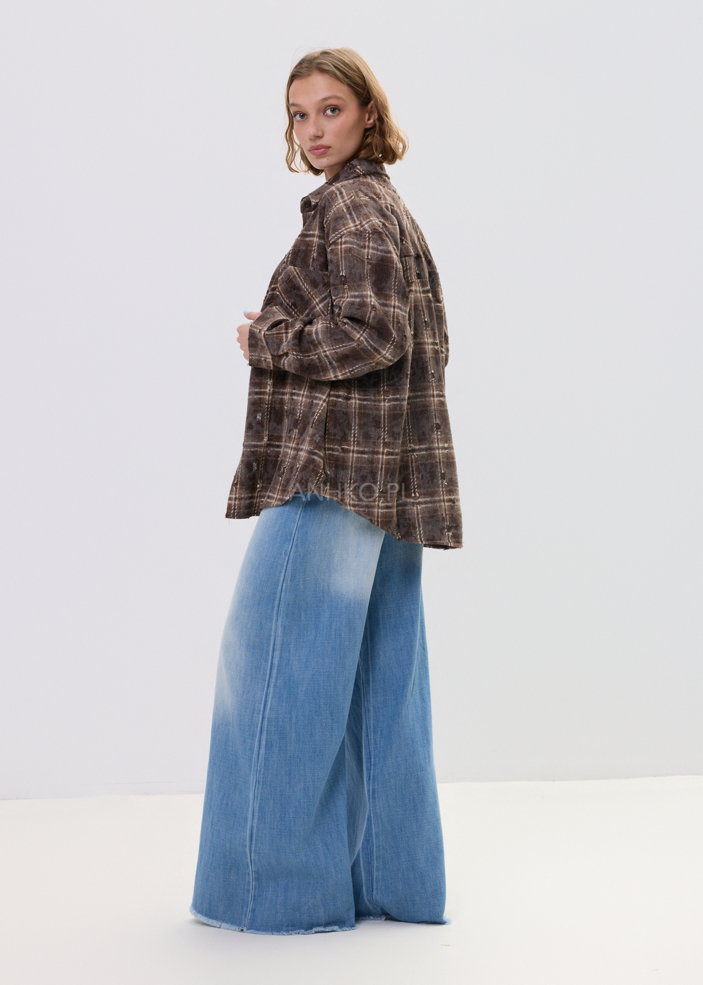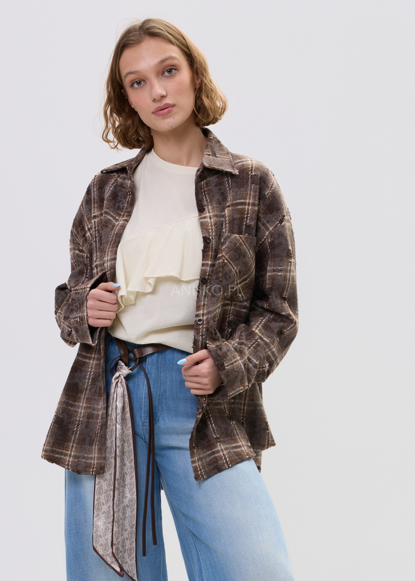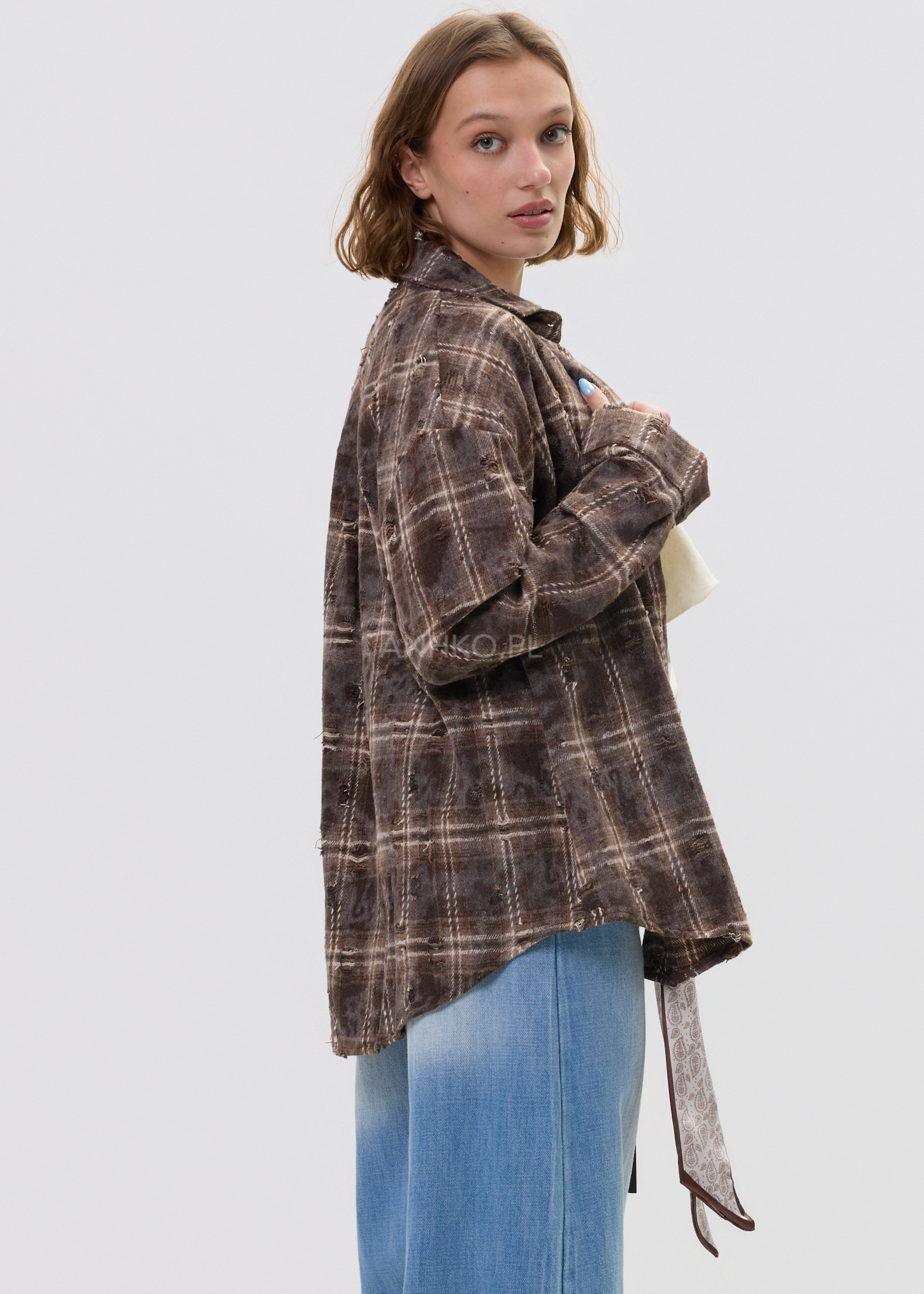 Koszula o luźnym, oversize’owym fasonie, która wyróżnia się nieregularnymi przetarciami i celowo niedoskonałym wykończeniem. To propozycja dla osób ceniących nieoczywisty design i swobodny styl. Model posiada klasyczny kołnierz, długie rękawy oraz zapięcie na guziki. Na piersi znajduje się praktyczna kieszeń, podkreślająca użytkowy charakter koszuli. Brak podszewki sprawia, że koszula jest lekka i komfortowa w noszeniu, idealna do noszenia solo lub jako warstwa wierzchnia. Doskonale sprawdzi się w stylizacjach codziennych, miejskich, na spotkania ze znajomymi, wyjścia do kawiarni czy koncerty. Można ją łączyć z jeansami, spodniami materiałowymi lub narzucić na basicowy top.