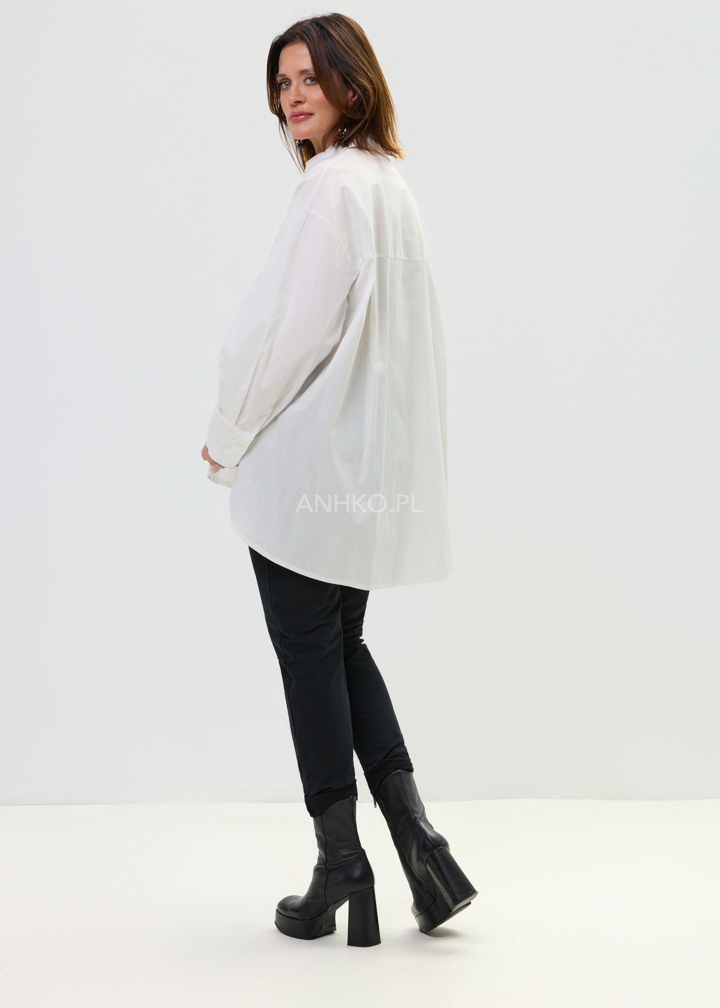 - Zaokrąglony dół: Dłuższy tył i miękka linia dołu poprawiają układanie się koszuli na sylwetce.