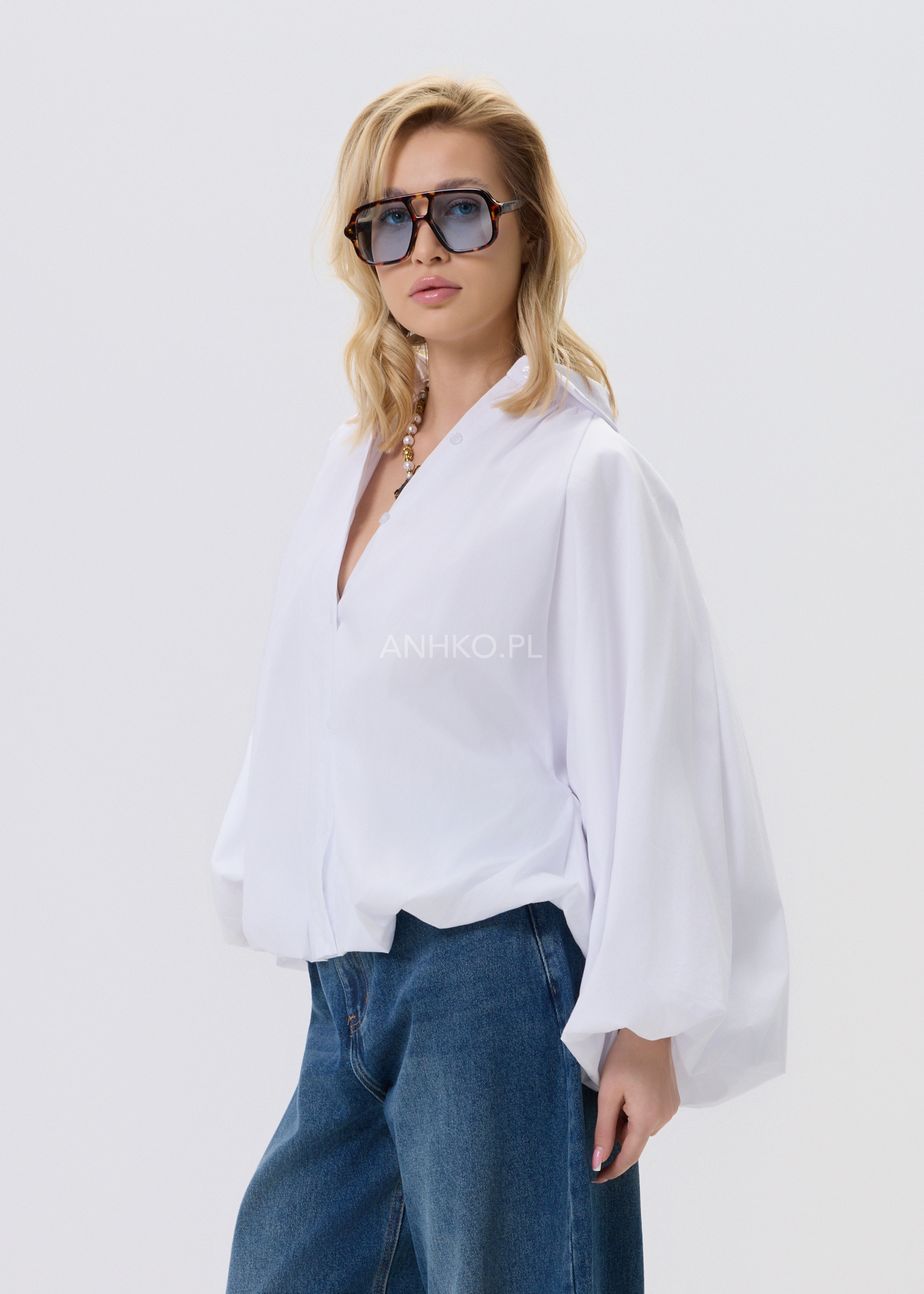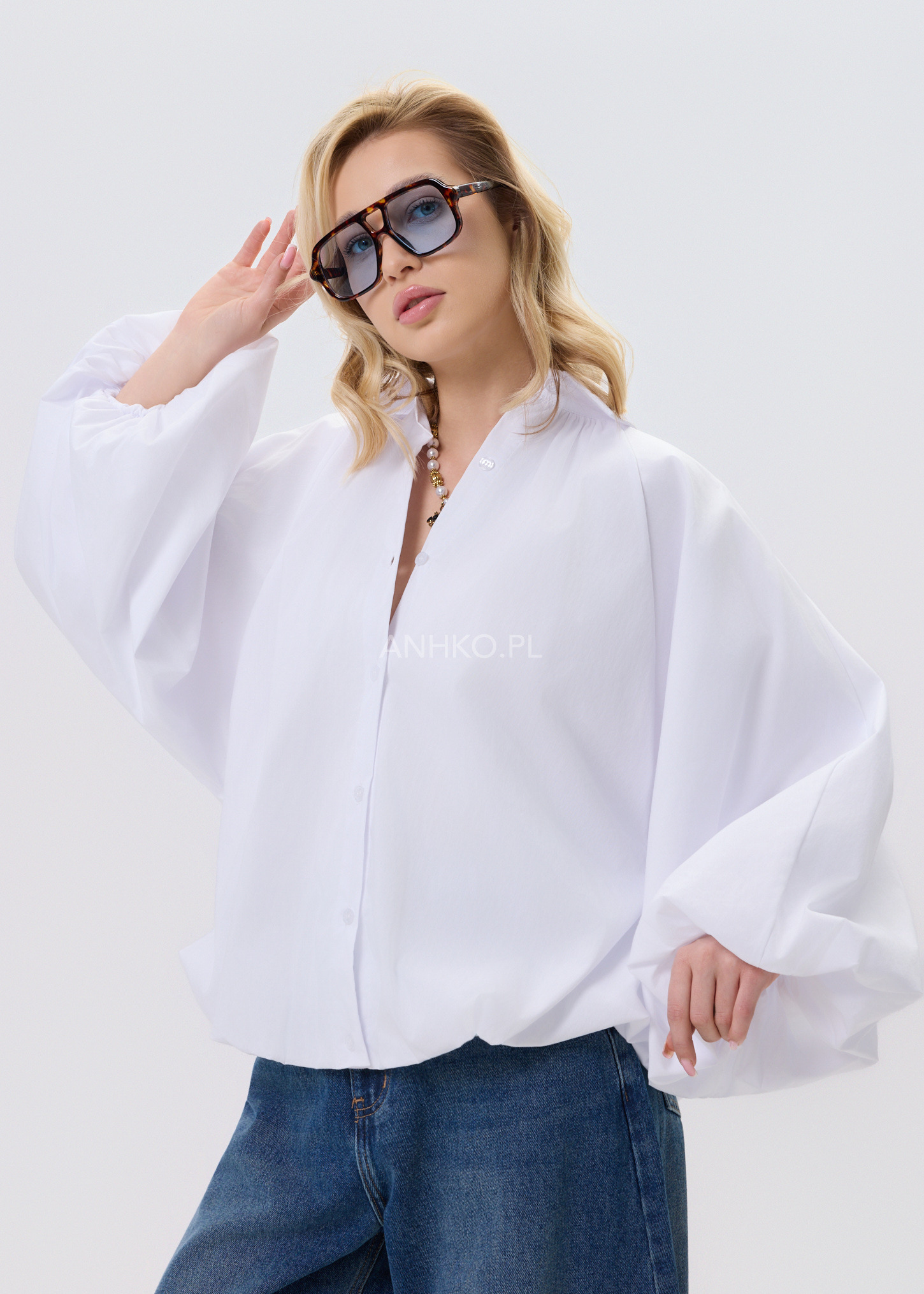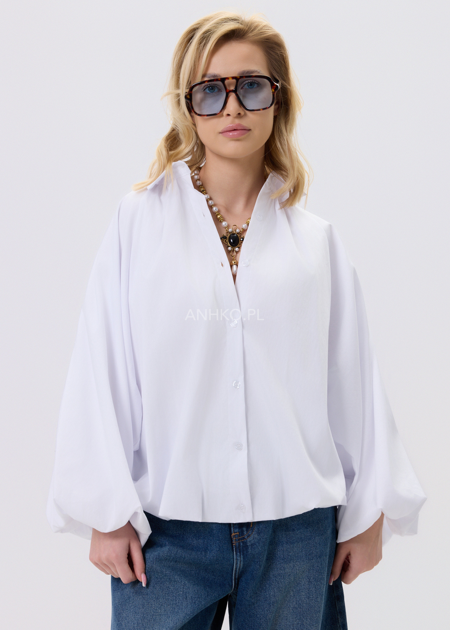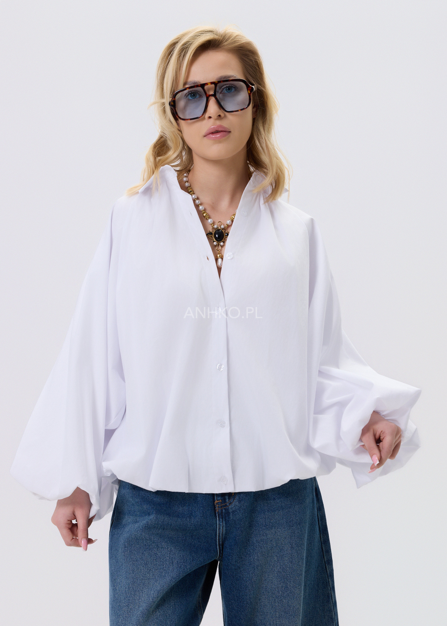 Bluzka o luźnym, nowoczesnym fasonie zaprojektowana z myślą o komforcie i uniwersalności. Model posiada delikatnie bufiaste rękawy zakończone miękkim marszczeniem oraz elastyczny dół, który subtelnie dopasowuje się do sylwetki. Zapięcie na guziki oraz lekko zaznaczony dekolt nadają całości kobiecego charakteru. Brak kieszeni i podszewki sprawia, że bluzka zachowuje lekkość i swobodę noszenia. Doskonale sprawdzi się w połączeniu z jeansami, spodniami materiałowymi lub spódnicą. Idealna na co dzień, do pracy, na spotkania czy wyjścia w stylu smart casual. Produkt wykonany we Włoszech, z dbałością o detale i wygodę użytkowania.