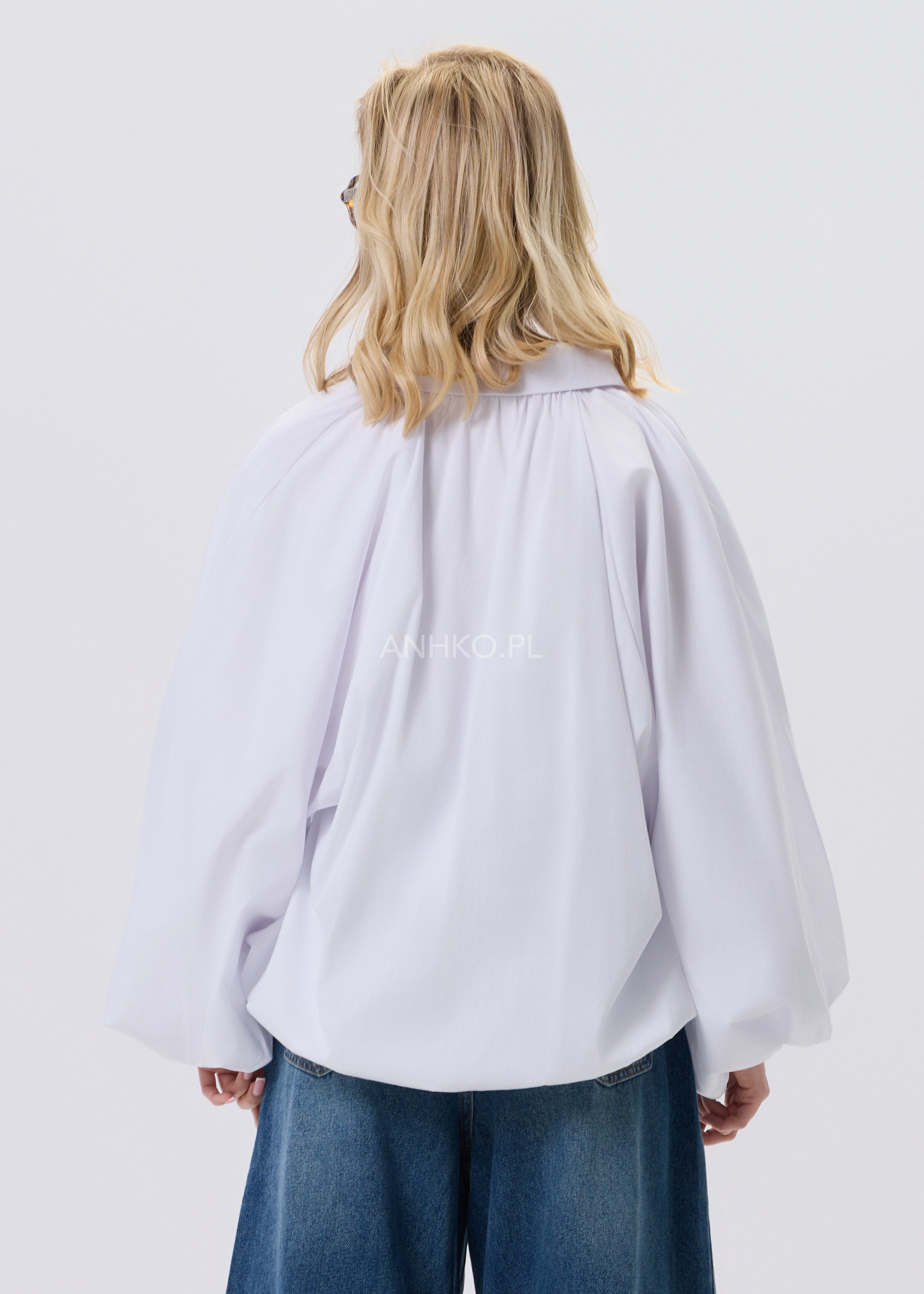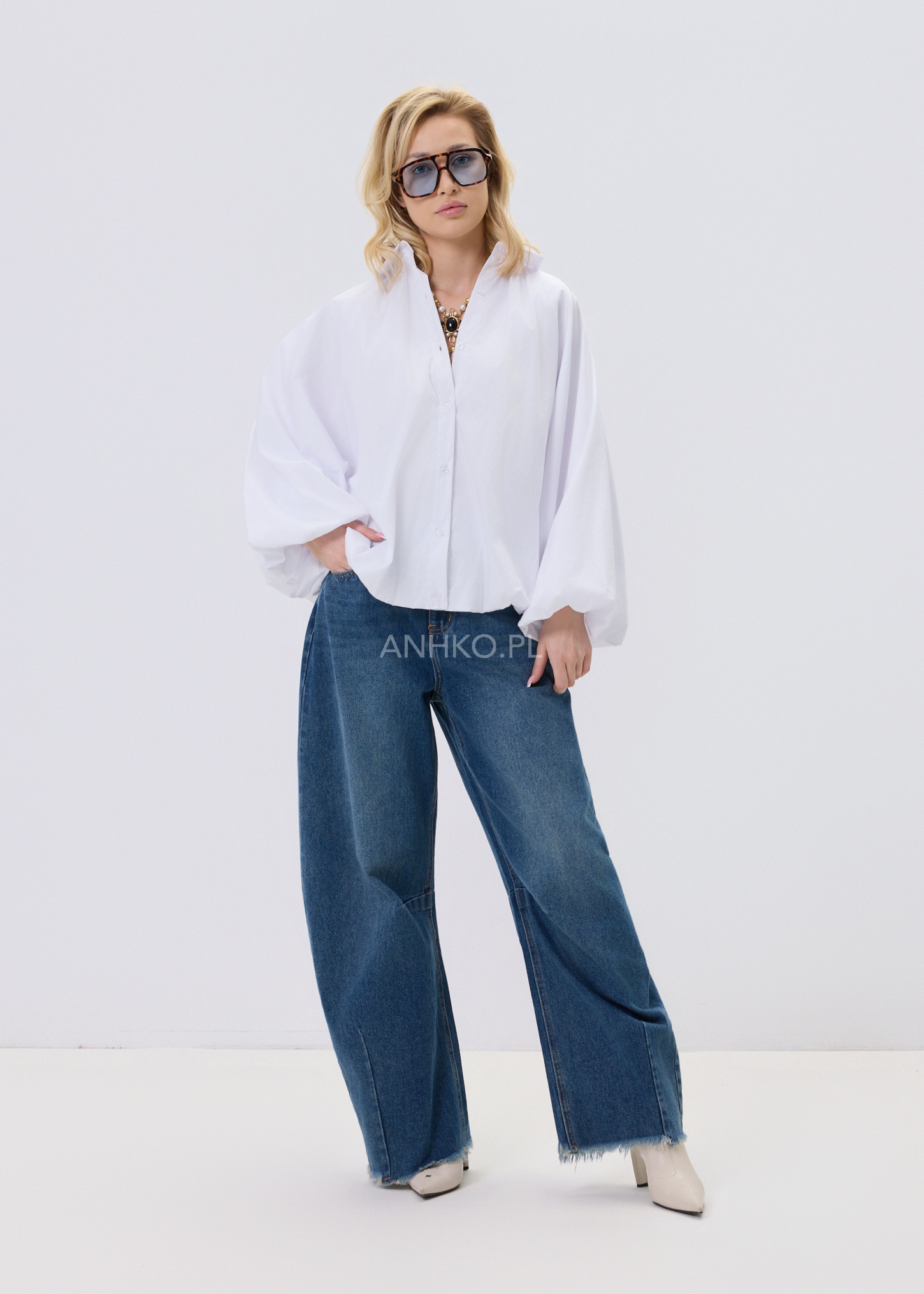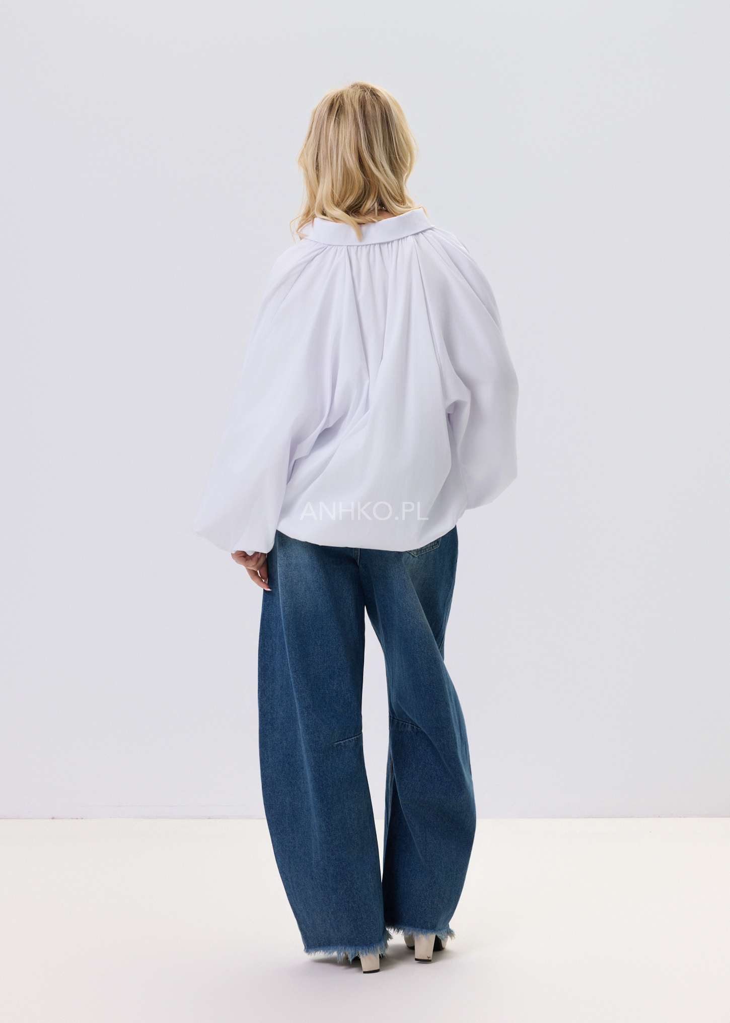 Bluzka o luźnym, nowoczesnym fasonie zaprojektowana z myślą o komforcie i uniwersalności. Model posiada delikatnie bufiaste rękawy zakończone miękkim marszczeniem oraz elastyczny dół, który subtelnie dopasowuje się do sylwetki. Zapięcie na guziki oraz lekko zaznaczony dekolt nadają całości kobiecego charakteru. Brak kieszeni i podszewki sprawia, że bluzka zachowuje lekkość i swobodę noszenia. Doskonale sprawdzi się w połączeniu z jeansami, spodniami materiałowymi lub spódnicą. Idealna na co dzień, do pracy, na spotkania czy wyjścia w stylu smart casual. Produkt wykonany we Włoszech, z dbałością o detale i wygodę użytkowania.