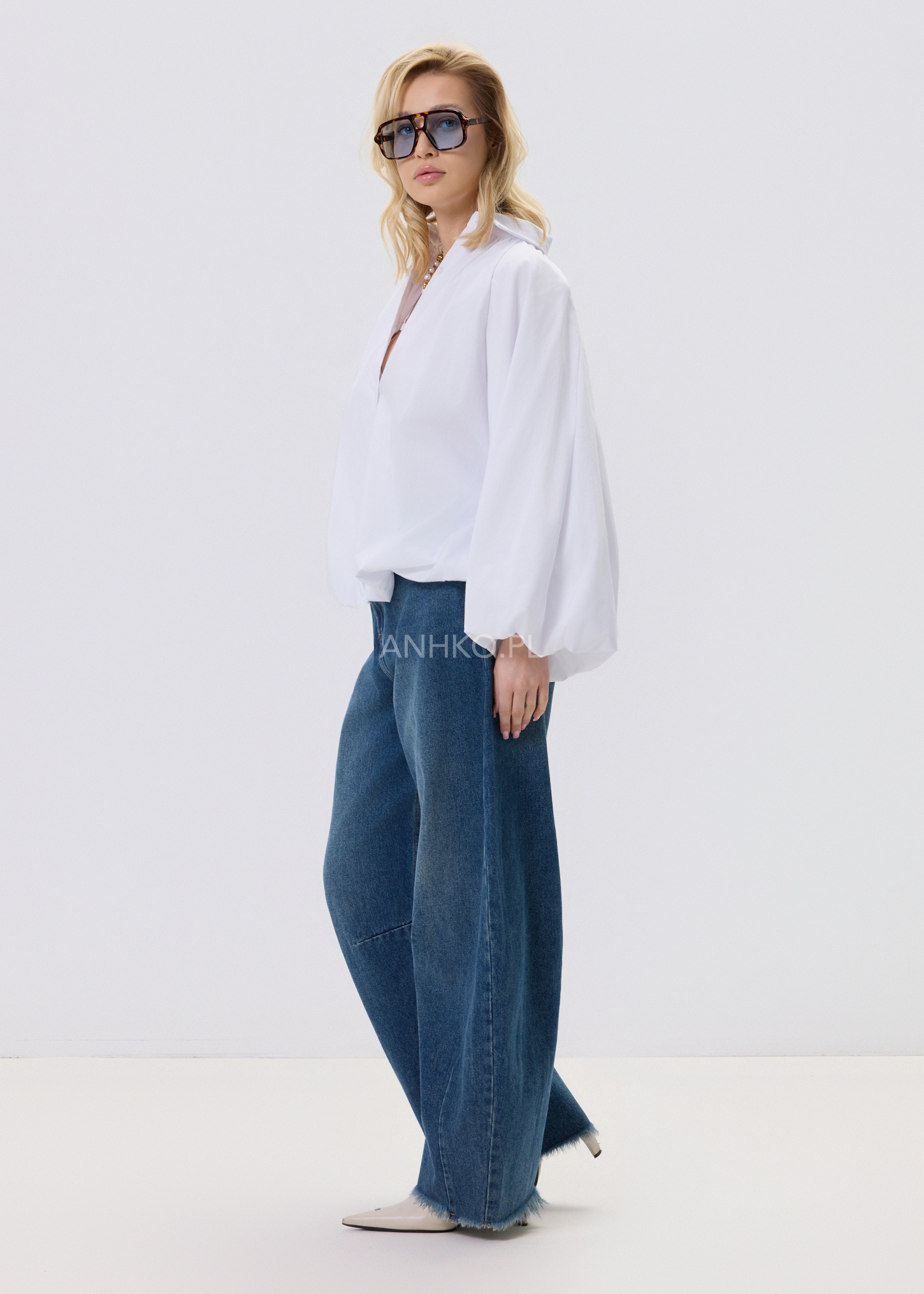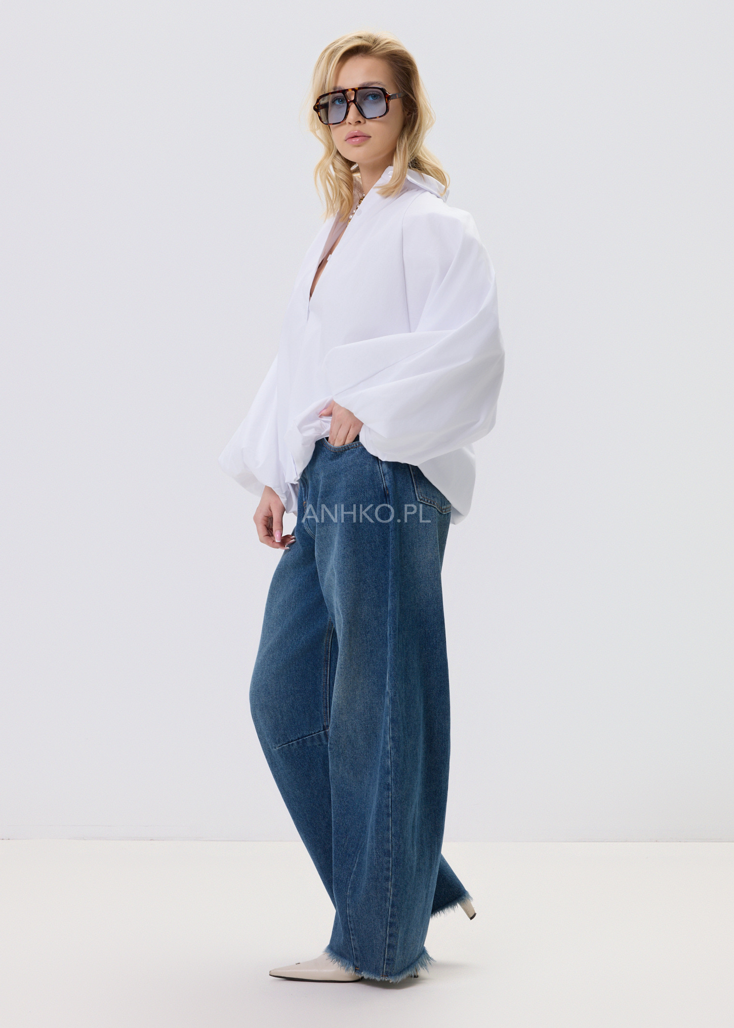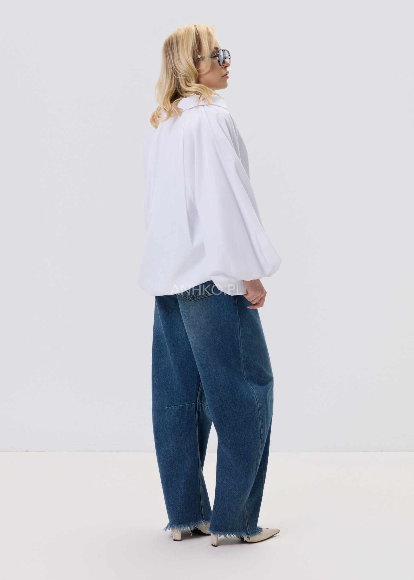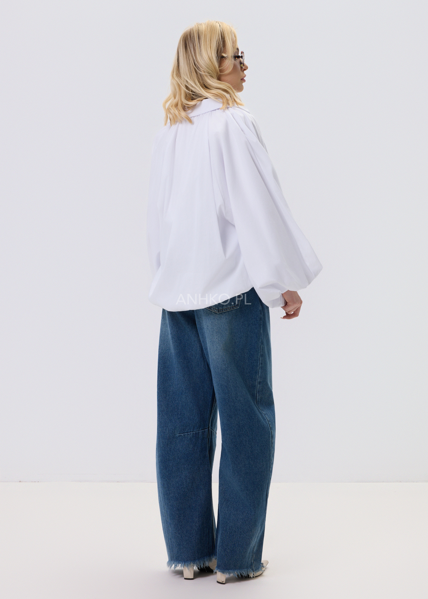 Bluzka o luźnym, nowoczesnym fasonie zaprojektowana z myślą o komforcie i uniwersalności. Model posiada delikatnie bufiaste rękawy zakończone miękkim marszczeniem oraz elastyczny dół, który subtelnie dopasowuje się do sylwetki. Zapięcie na guziki oraz lekko zaznaczony dekolt nadają całości kobiecego charakteru. Brak kieszeni i podszewki sprawia, że bluzka zachowuje lekkość i swobodę noszenia. Doskonale sprawdzi się w połączeniu z jeansami, spodniami materiałowymi lub spódnicą. Idealna na co dzień, do pracy, na spotkania czy wyjścia w stylu smart casual. Produkt wykonany we Włoszech, z dbałością o detale i wygodę użytkowania.