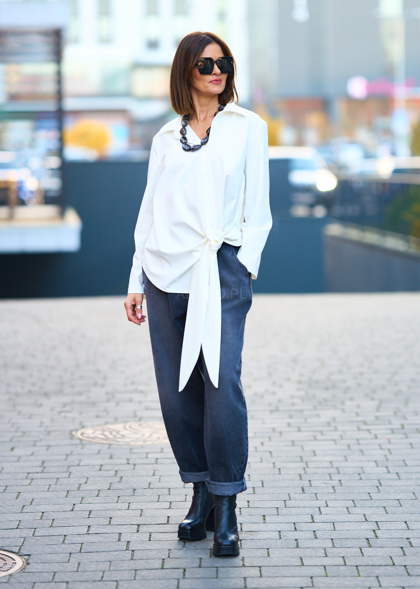 - Styl: Uniwersalny – pasuje zarówno do stylizacji casualowych, jak i bardziej eleganckich.