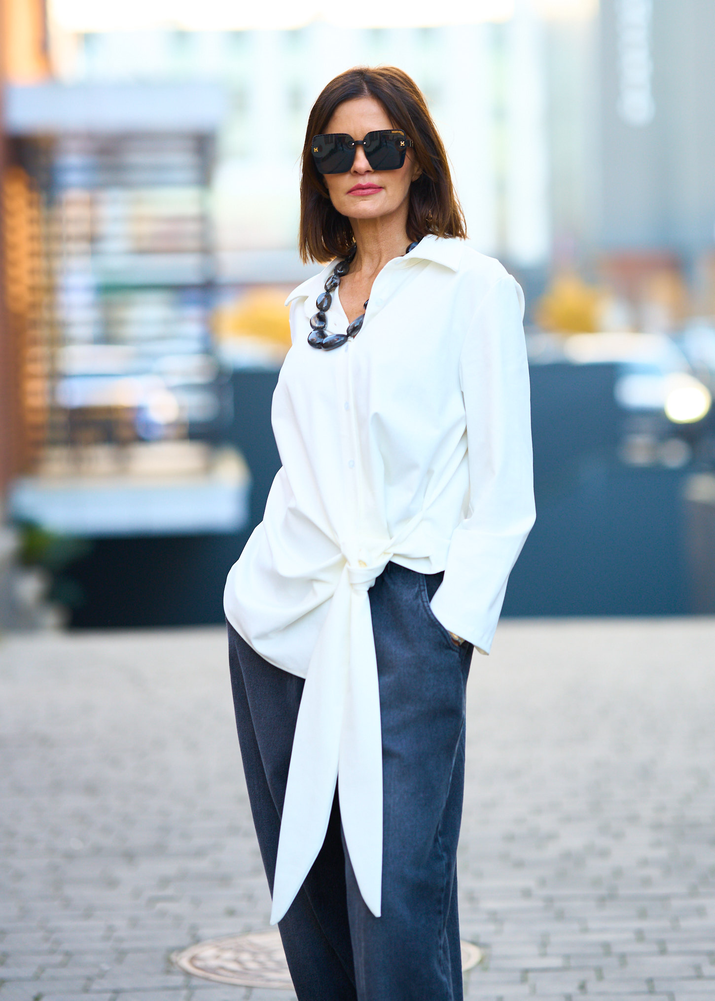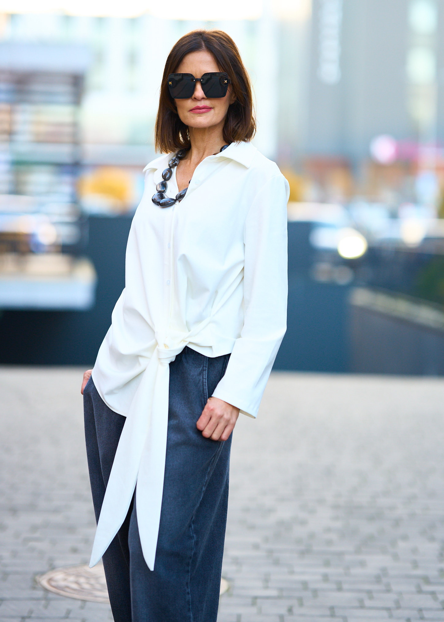 Tak, wiązanie pozwala delikatnie dopasować formę do sylwetki i zmienić charakter stylizacji.