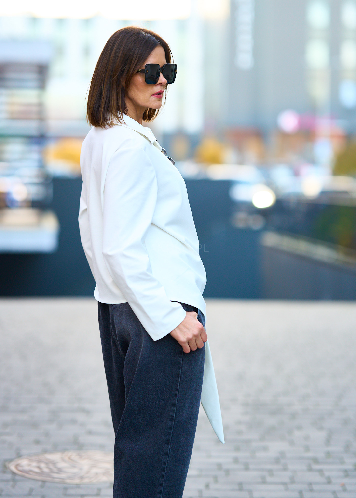 - Fason: Luźny, nowoczesny krój z delikatnie opadającą linią ramion.
