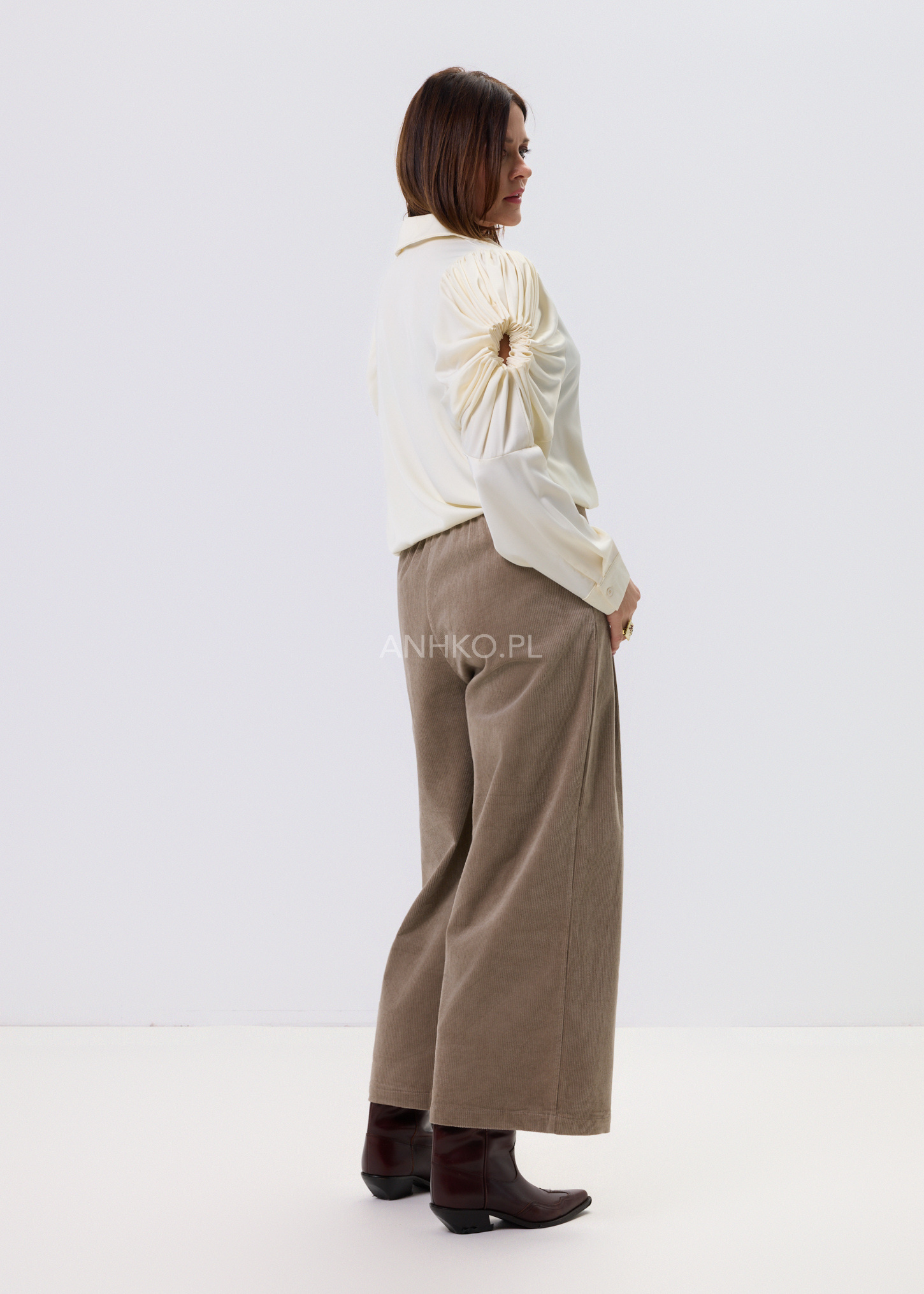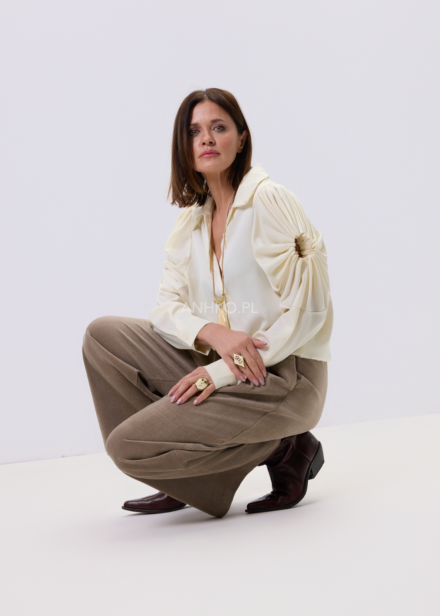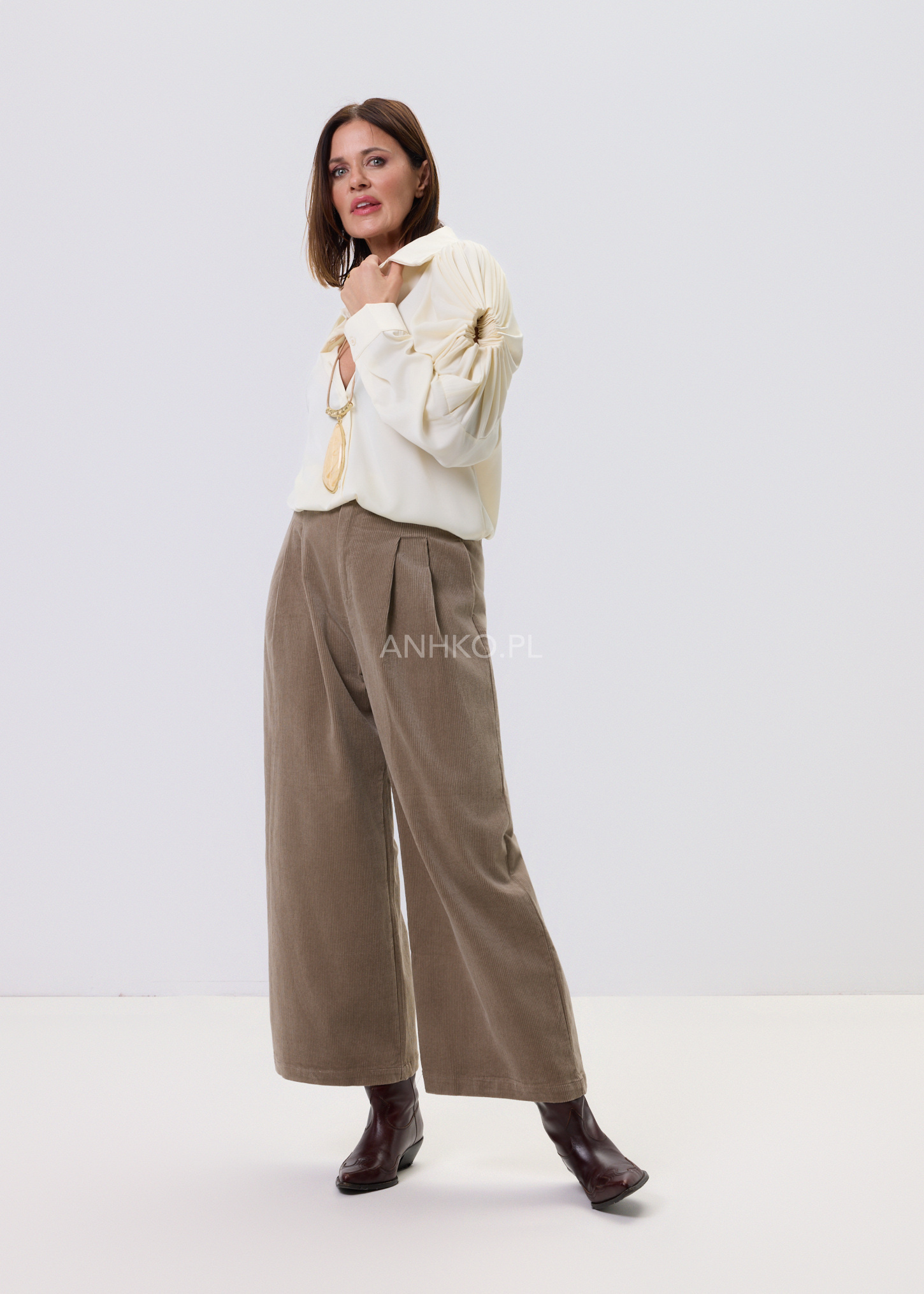 Koszula Soft Drapé to połączenie klasycznej formy z wyraźnym, modowym akcentem. Kremowy kolor nadaje całości lekkości i elegancji, a dekoracyjne rękawy z efektownym marszczeniem przyciągają uwagę i budują wyjątkowy charakter modelu. Dłuższy krój zapewnia komfort noszenia i świetnie sprawdza się zarówno wpuszczony w spodnie, jak i noszony luźno. Klasyczny koszulowy dekolt dodaje całości ponadczasowego stylu, dzięki czemu koszula z łatwością odnajdzie się w stylizacjach do pracy, na spotkania czy na co dzień — zawsze z nutą elegancji.