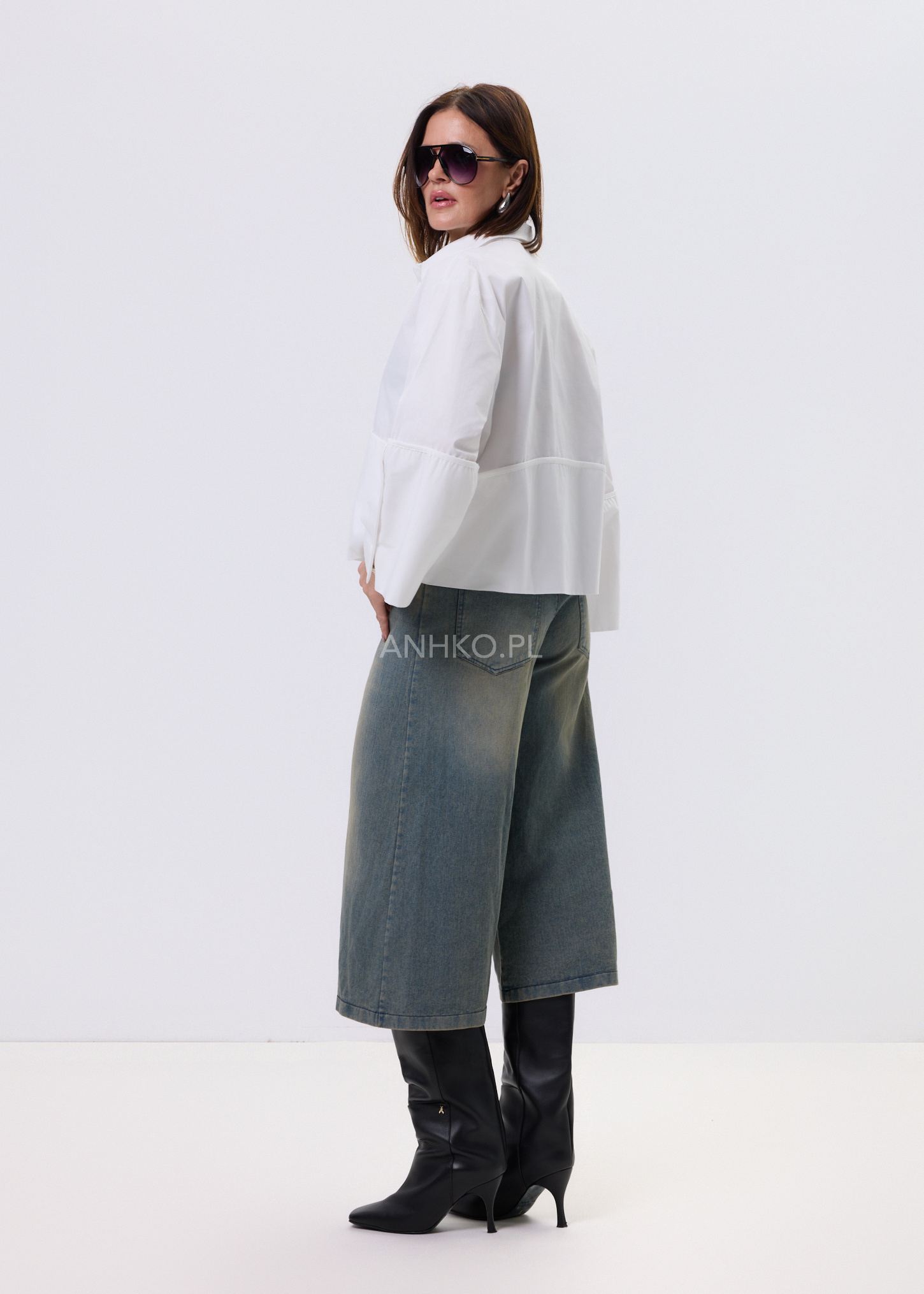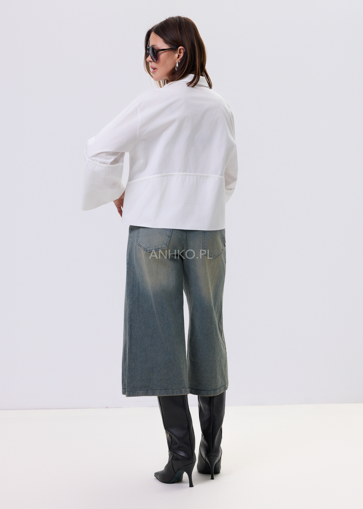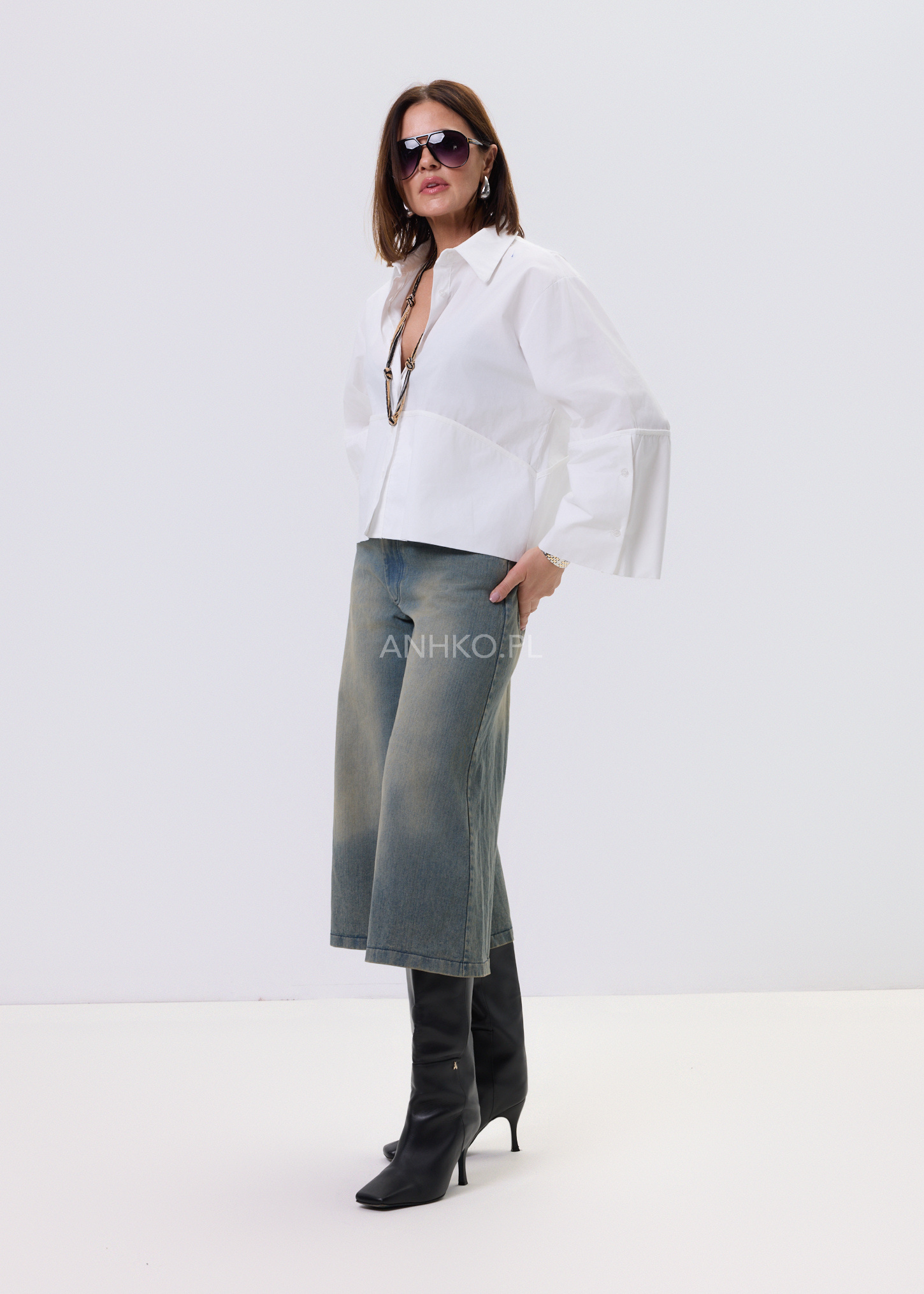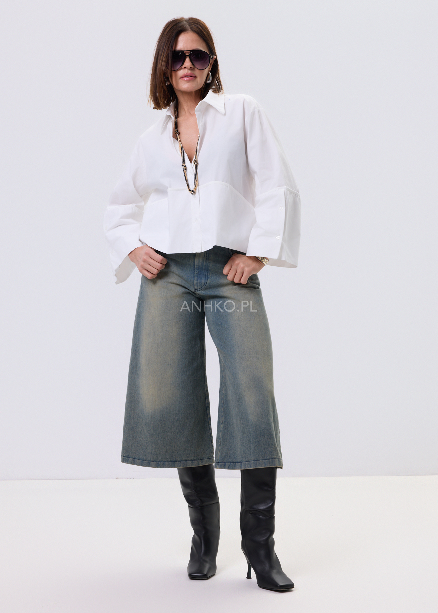 Biała koszula damska o luźnym kroju typu relaxed, zaprojektowana z myślą o wygodzie i stylowym, nowoczesnym wyglądzie. Model posiada klasyczny kołnierzyk oraz zapięcie na guziki, które nadają całości ponadczasowego charakteru. Asymetryczna linia z dłuższym tyłem sprawia, że koszula dobrze układa się na sylwetce i pasuje zarówno do spodni, jak i spódnic. Dekoracyjne, poszerzane rękawy dodają lekkości i subtelnego akcentu modowego. Bawełniany materiał zapewnia komfort noszenia przez cały dzień. To uniwersalna propozycja do stylizacji casualowych i półeleganckich.