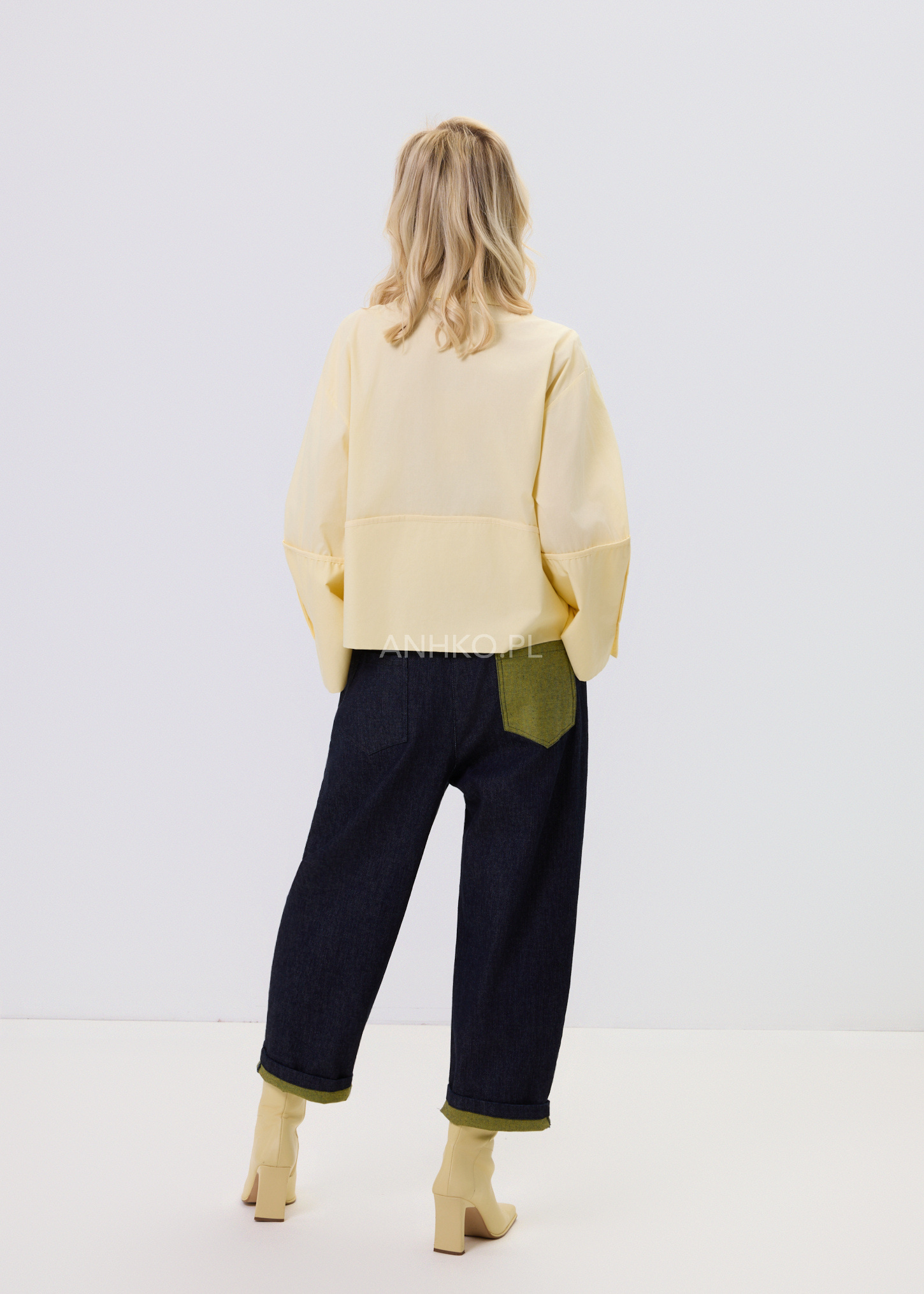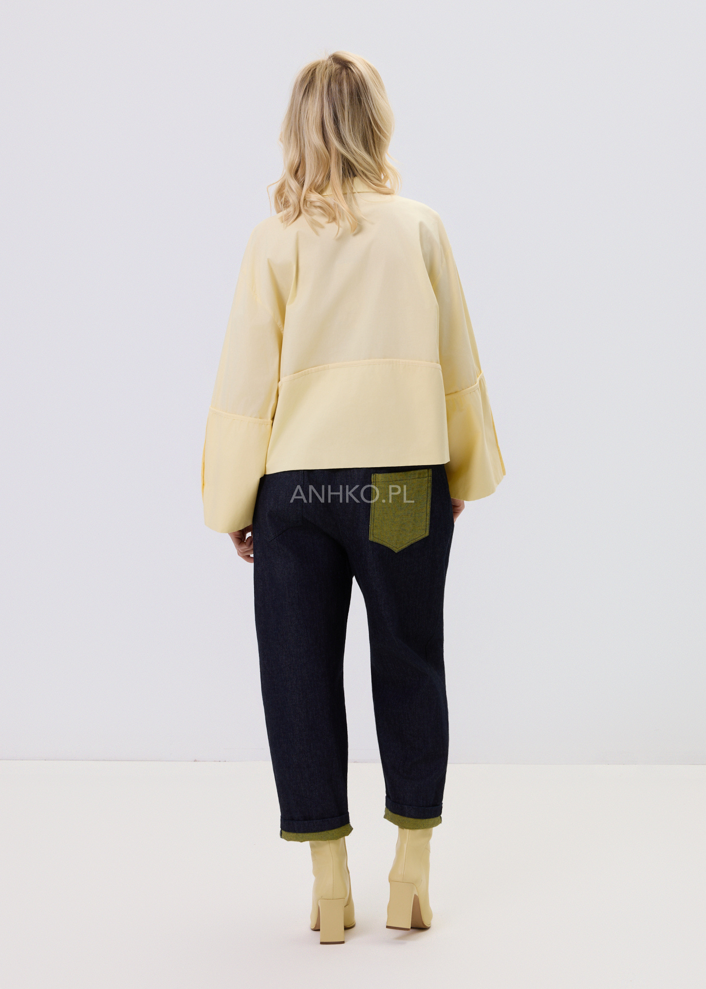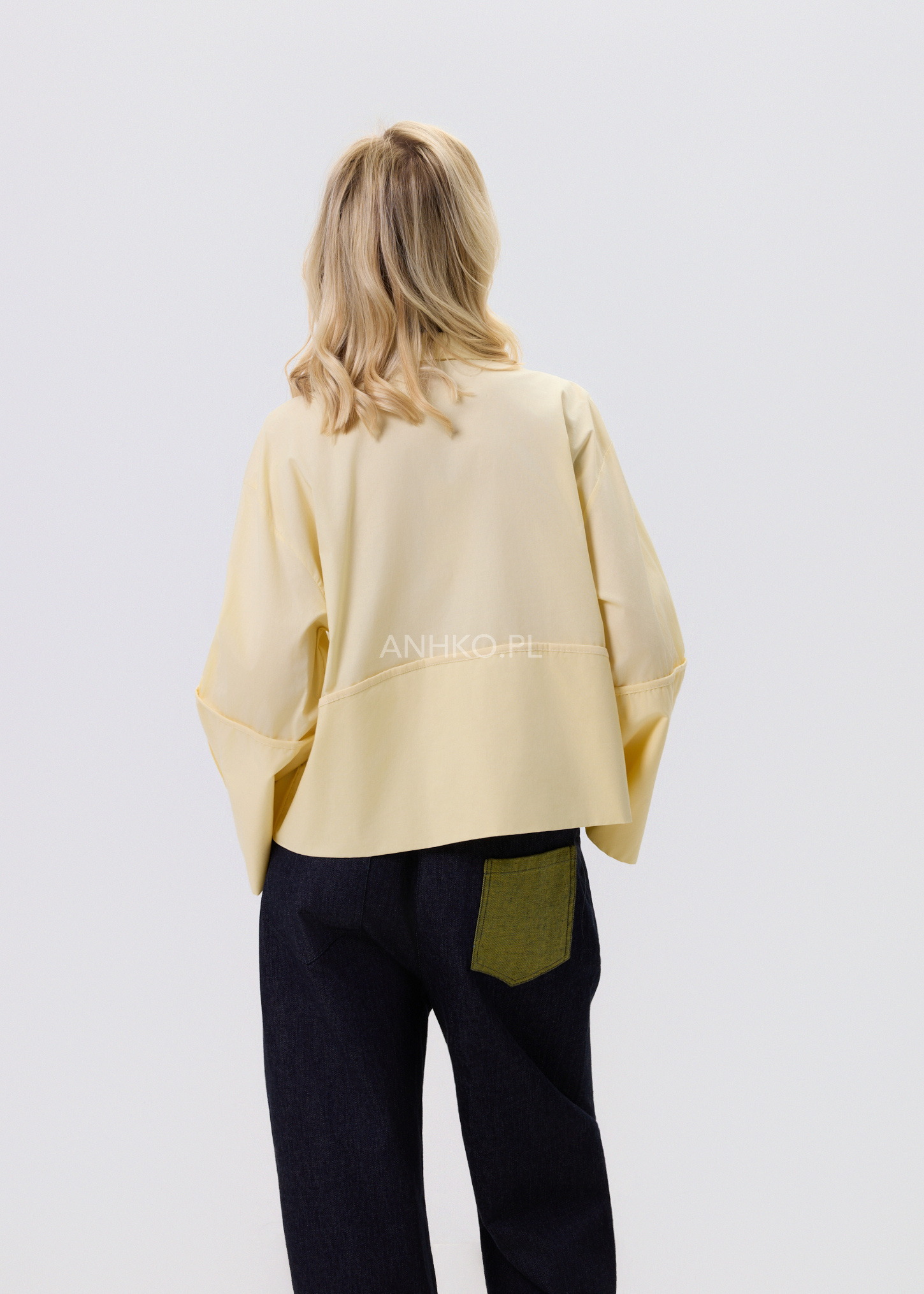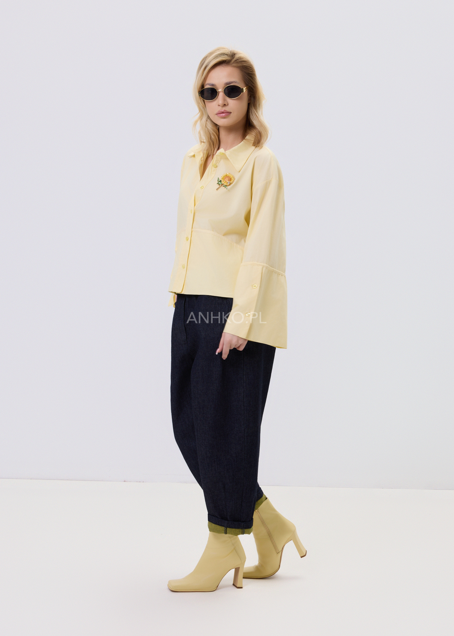 Jasnożółta koszula damska o luźnym kroju typu relaxed, zaprojektowana z myślą o wygodzie i stylowym, nowoczesnym wyglądzie. Model posiada klasyczny kołnierzyk oraz zapięcie na guziki, które nadają całości ponadczasowego charakteru. Asymetryczna linia z dłuższym tyłem sprawia, że koszula dobrze układa się na sylwetce i pasuje zarówno do spodni, jak i spódnic. Dekoracyjne, poszerzane rękawy dodają lekkości i subtelnego akcentu modowego. Bawełniany materiał zapewnia komfort noszenia przez cały dzień. To uniwersalna propozycja do stylizacji casualowych i półeleganckich.