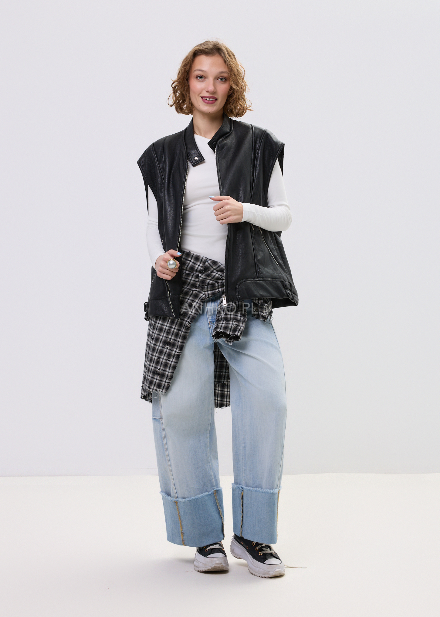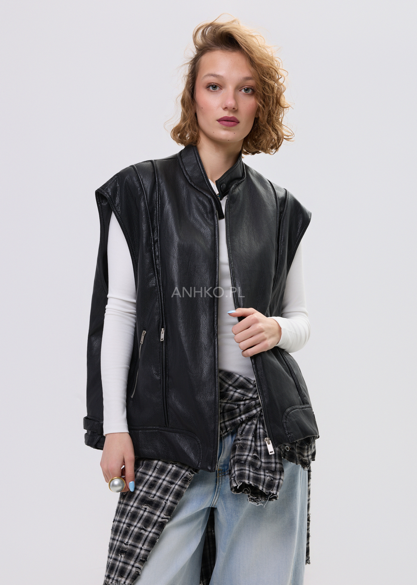 Kamizelka z Eko-Skóry Harelson Czarna - Czarna kamizelka z eko-skóry w stylu biker to mocny akcent każdej stylizacji. Krótki fason, metalowe zamki i dopracowane detale nadają jej charakteru, a uniwersalny krój sprawia, że świetnie pasuje do jeansów, sukienek i streetwearowych zestawów.