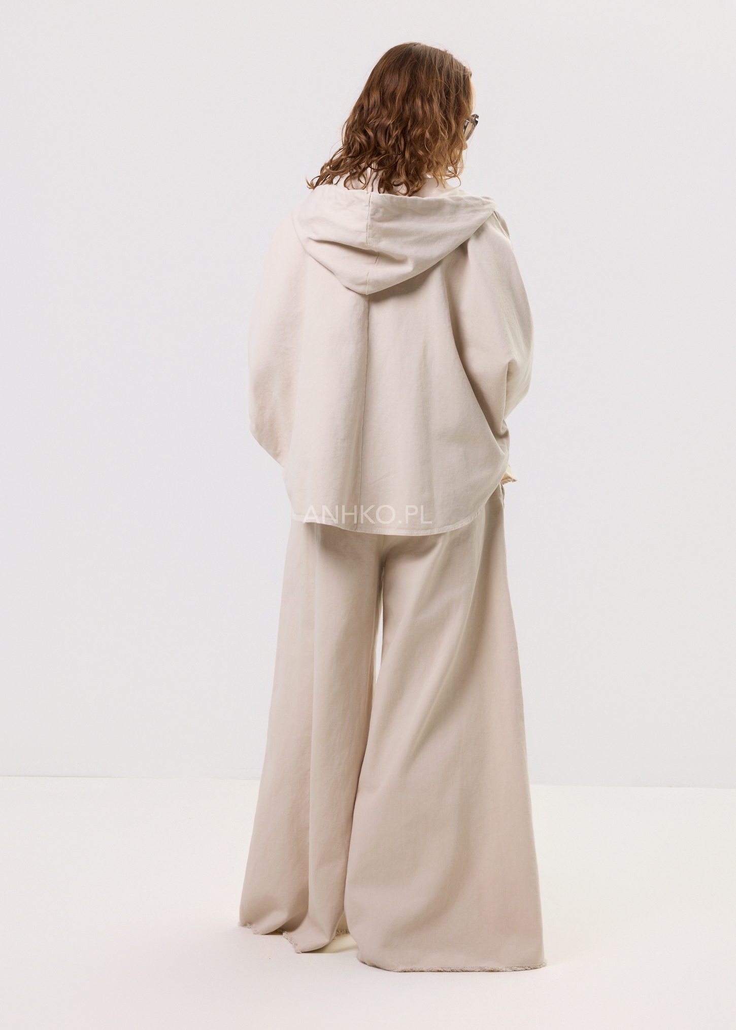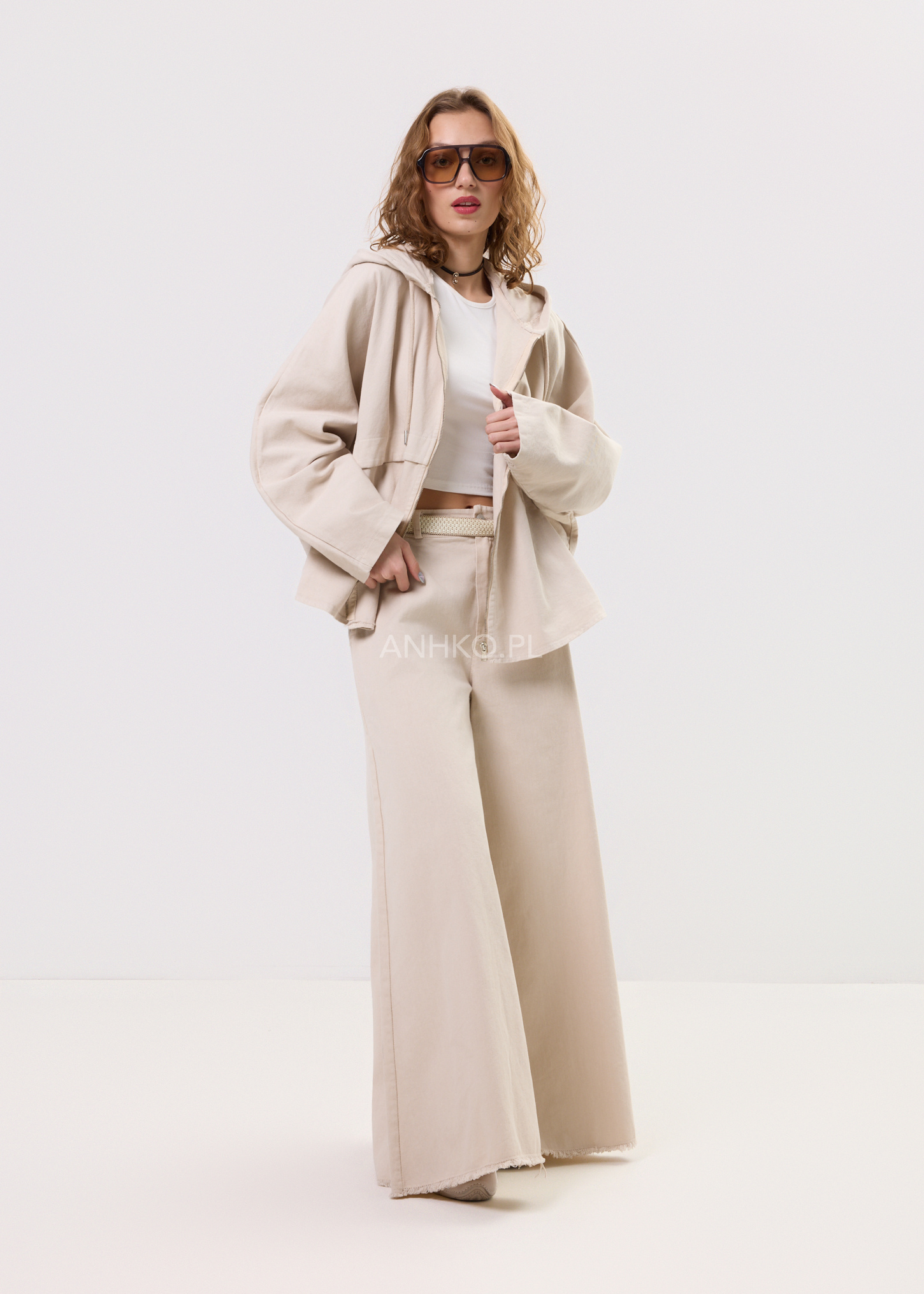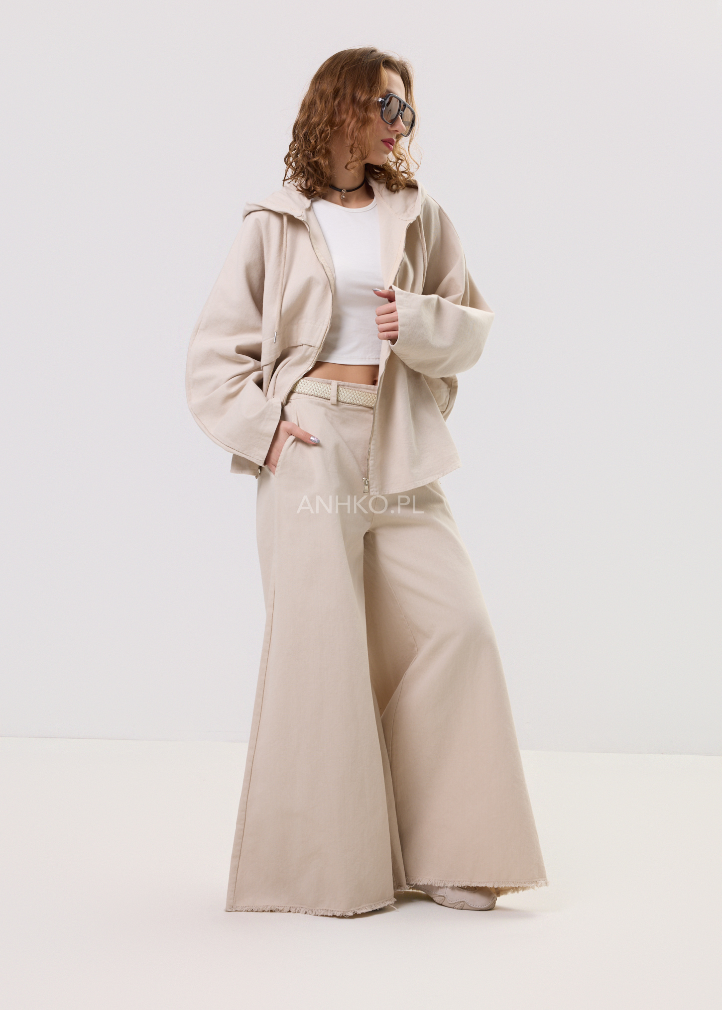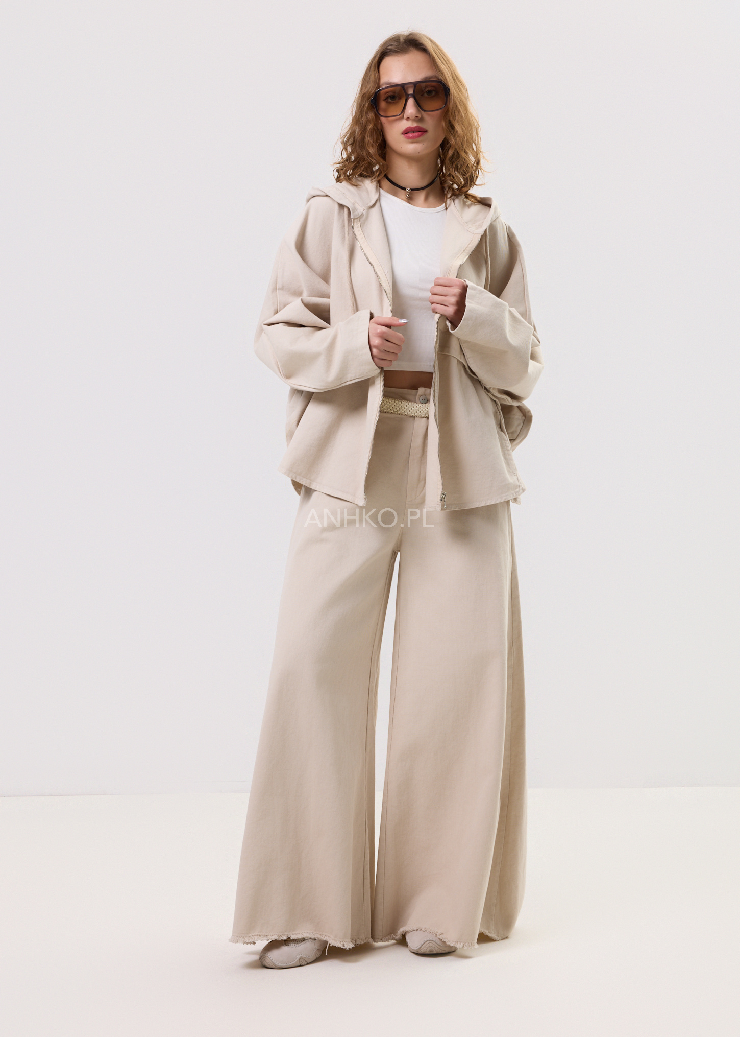 Spodnie Deseret Flow Beżowe - Beżowe spodnie o luźnym, oversize’owym kroju z szeroką nogawką i paskiem w komplecie. Komfortowy fason z gumką z tyłu i klasycznym zapięciem z przodu. Idealne na co dzień i do bardziej dopracowanych stylizacji.