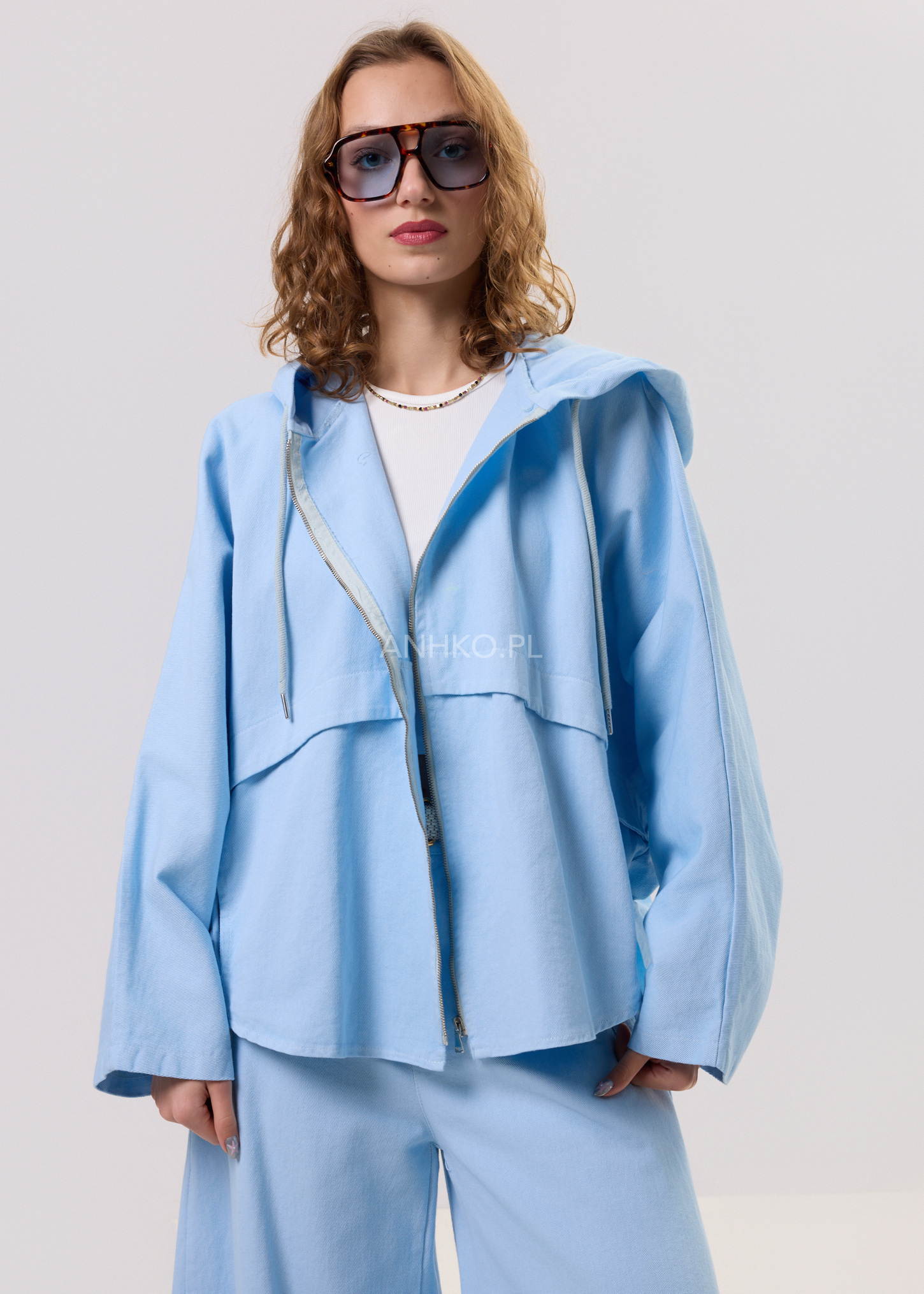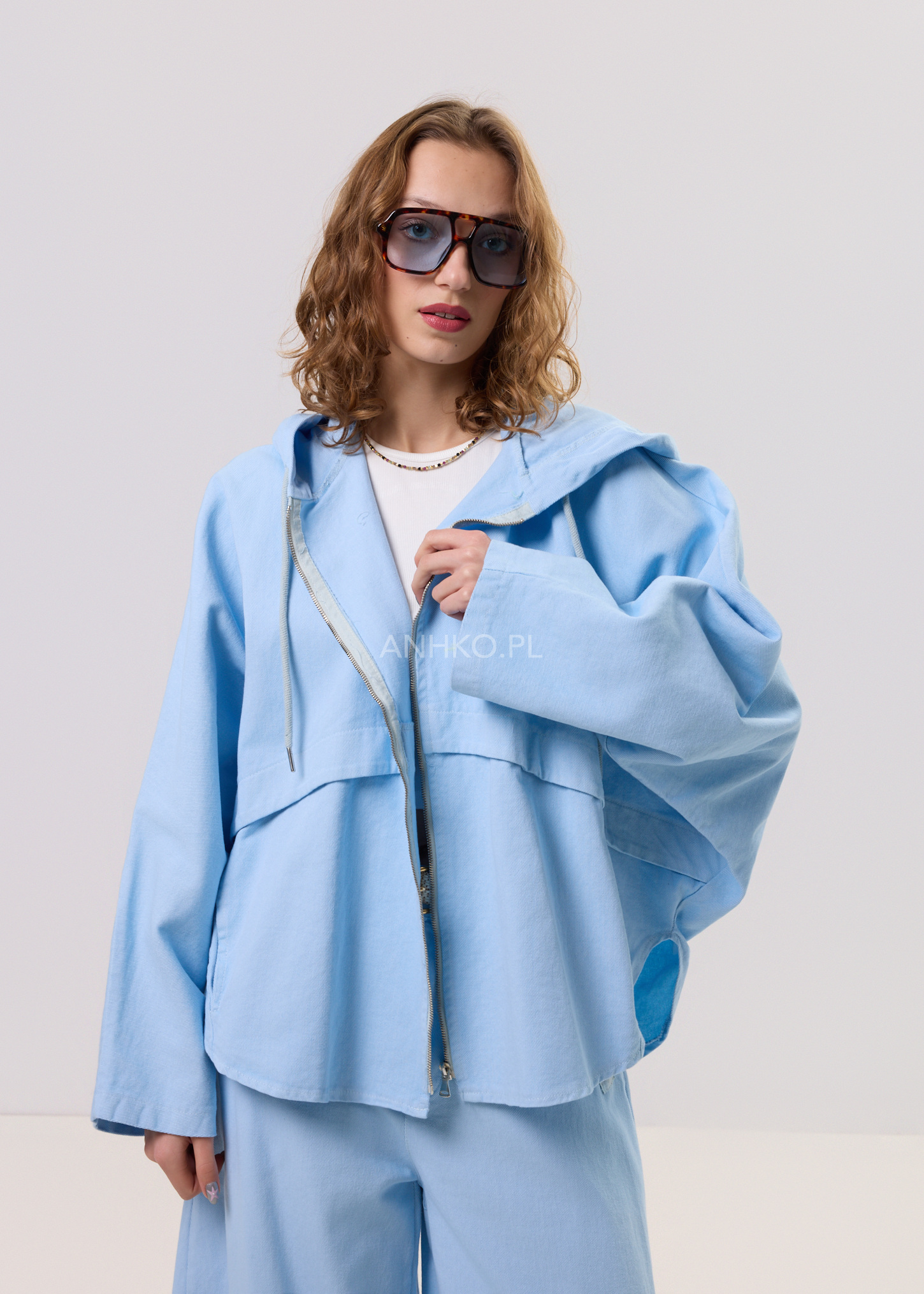 Ta kurtka damska o swobodnym, oversize’owym fasonie miękko układa się na sylwetce, tworząc nowoczesną, lekko architektoniczną linię. Obniżona linia ramion i szerokie rękawy nadają jej wyrazistego charakteru, a długość do bioder zapewnia proporcjonalne wykończenie całości. Model zapinany na suwak z kapturem to funkcjonalna baza w duchu miejskiego minimalizmu.