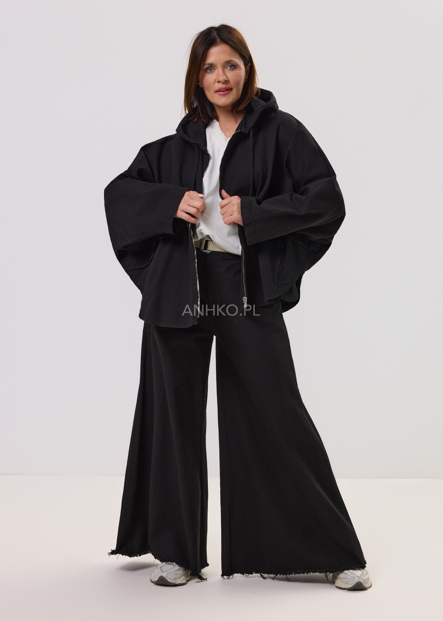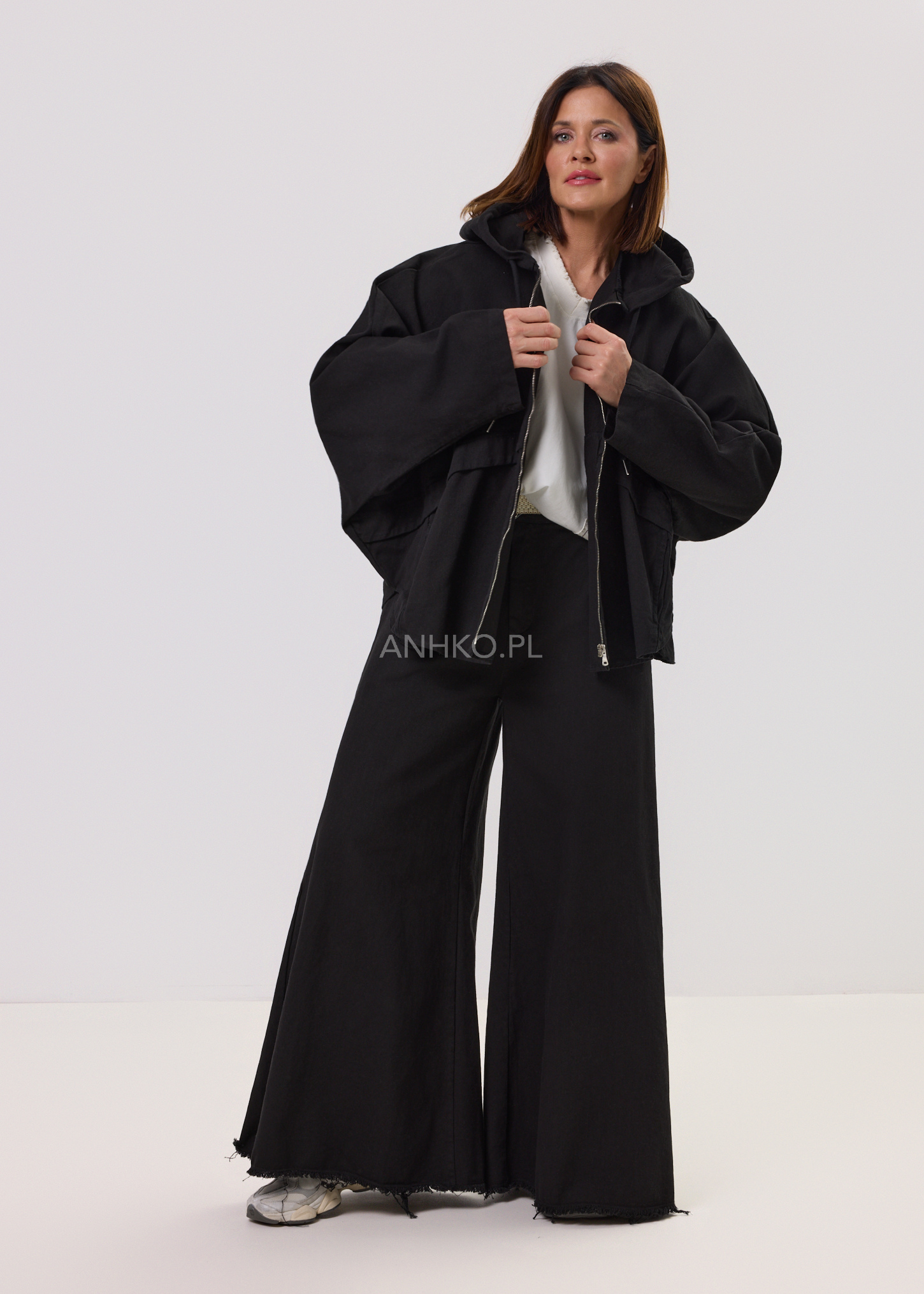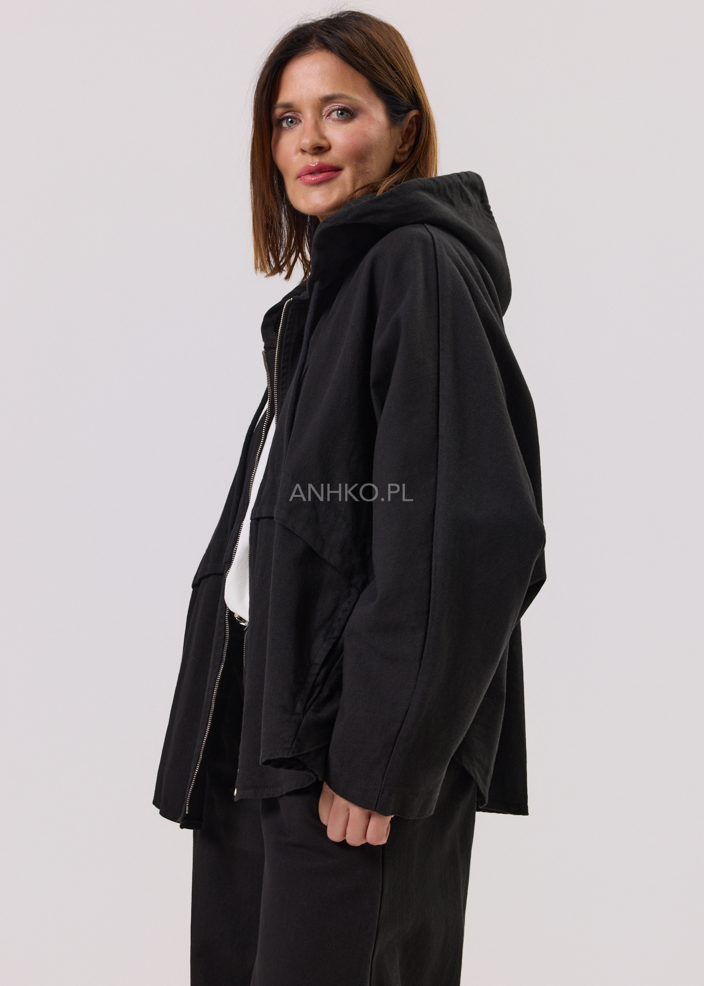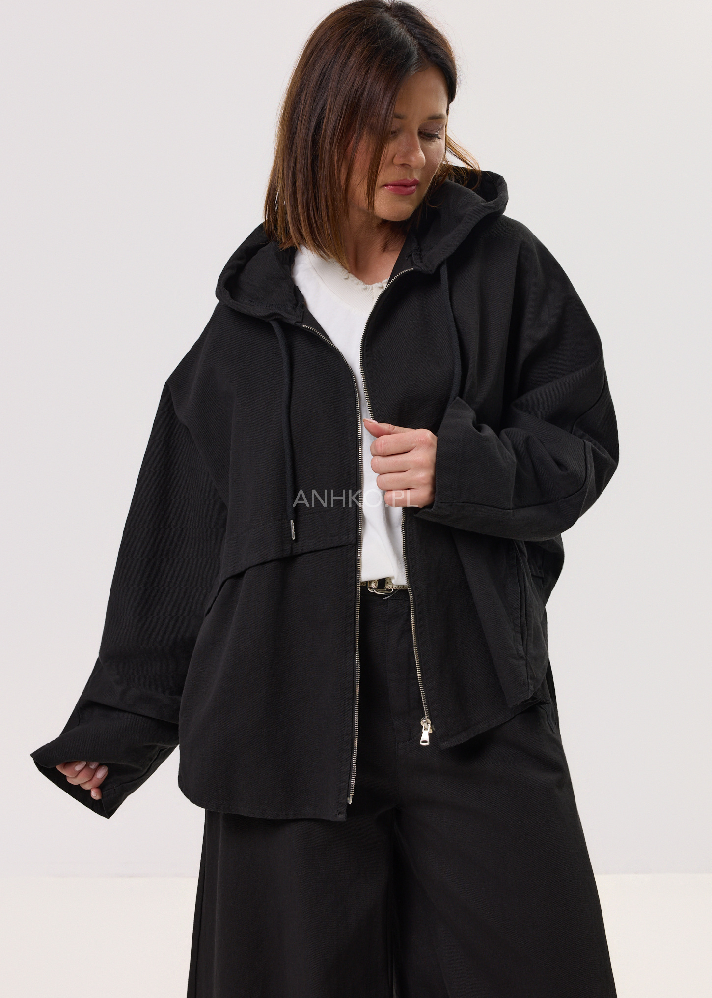 Ta kurtka damska o swobodnym, oversize’owym fasonie miękko układa się na sylwetce, tworząc nowoczesną, lekko architektoniczną linię. Obniżona linia ramion i szerokie rękawy nadają jej wyrazistego charakteru, a długość do bioder zapewnia proporcjonalne wykończenie całości. Model zapinany na suwak z kapturem to funkcjonalna baza w duchu miejskiego minimalizmu.
