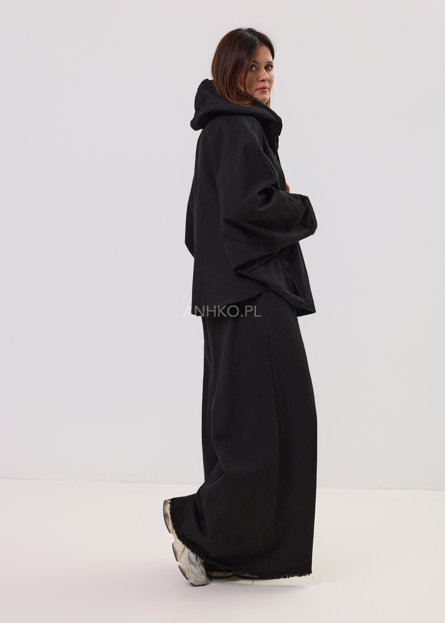 Spodnie Deseret Flow Czarne - Czarne spodnie o luźnym, oversize’owym kroju z szeroką nogawką i paskiem w komplecie. Komfortowy fason z gumką z tyłu i klasycznym zapięciem z przodu. Idealne na co dzień i do bardziej dopracowanych stylizacji.