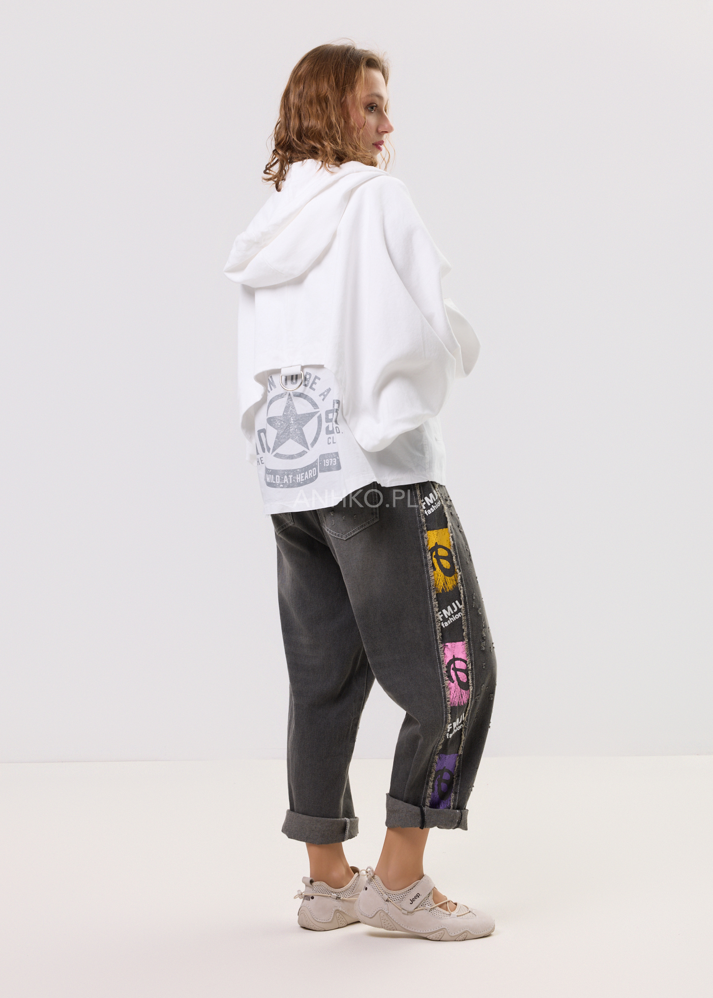 - Fason: Luźny krój oversize zapewniający swobodę ruchów.