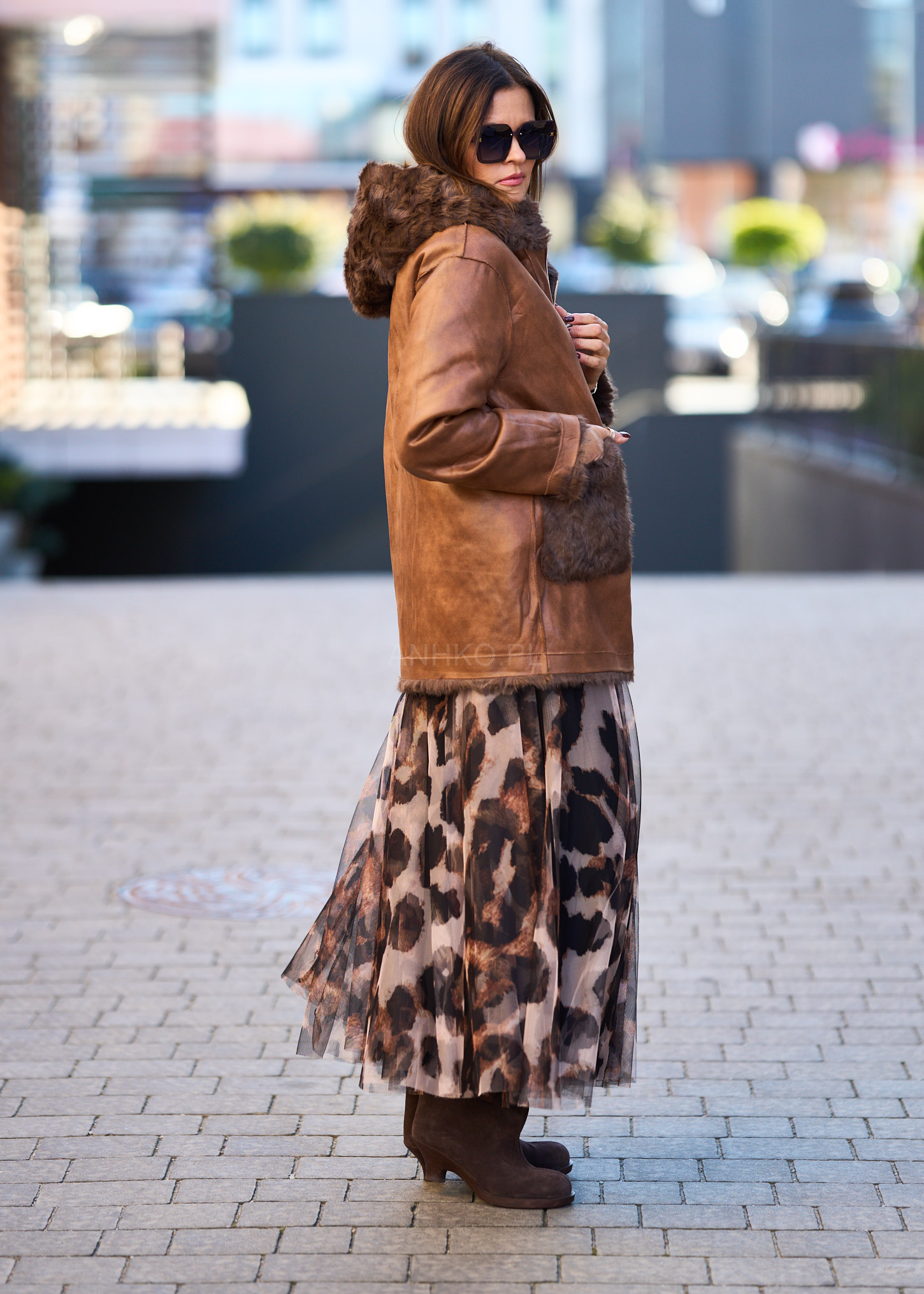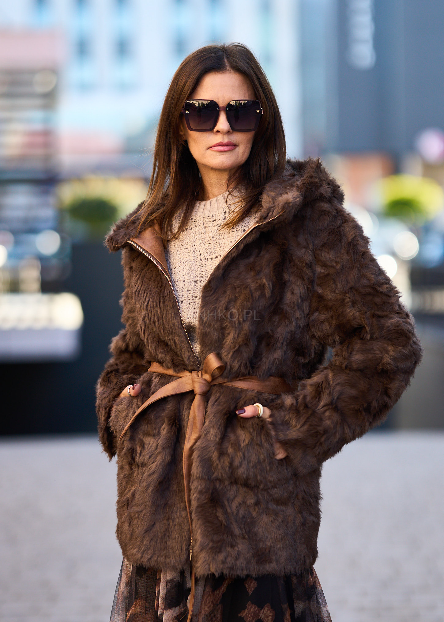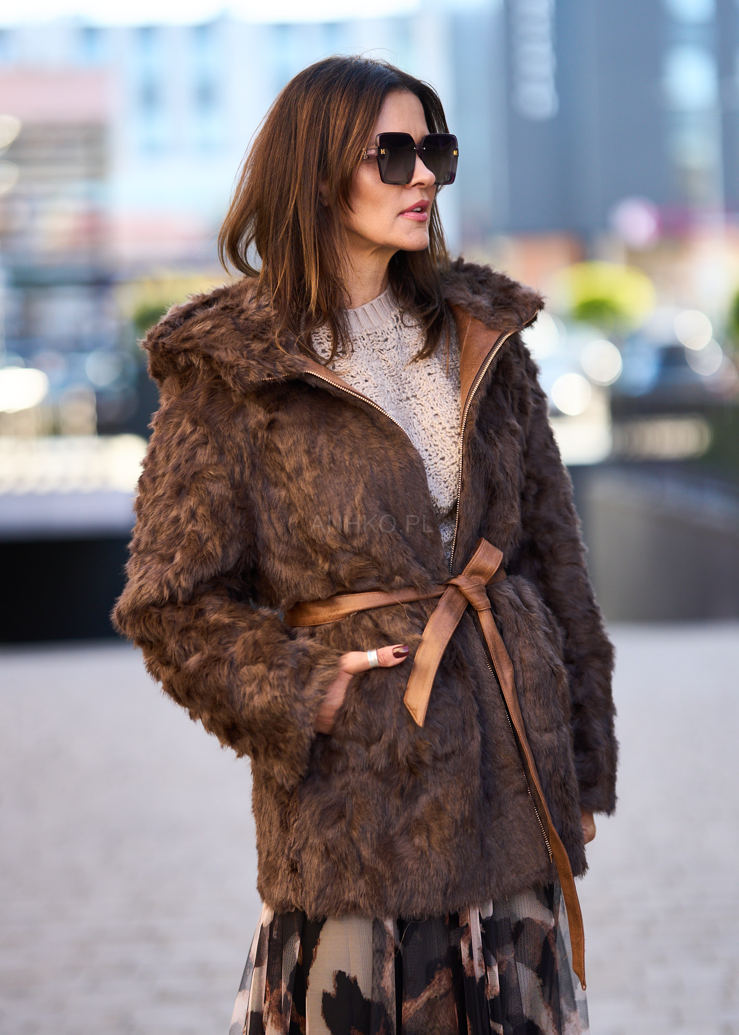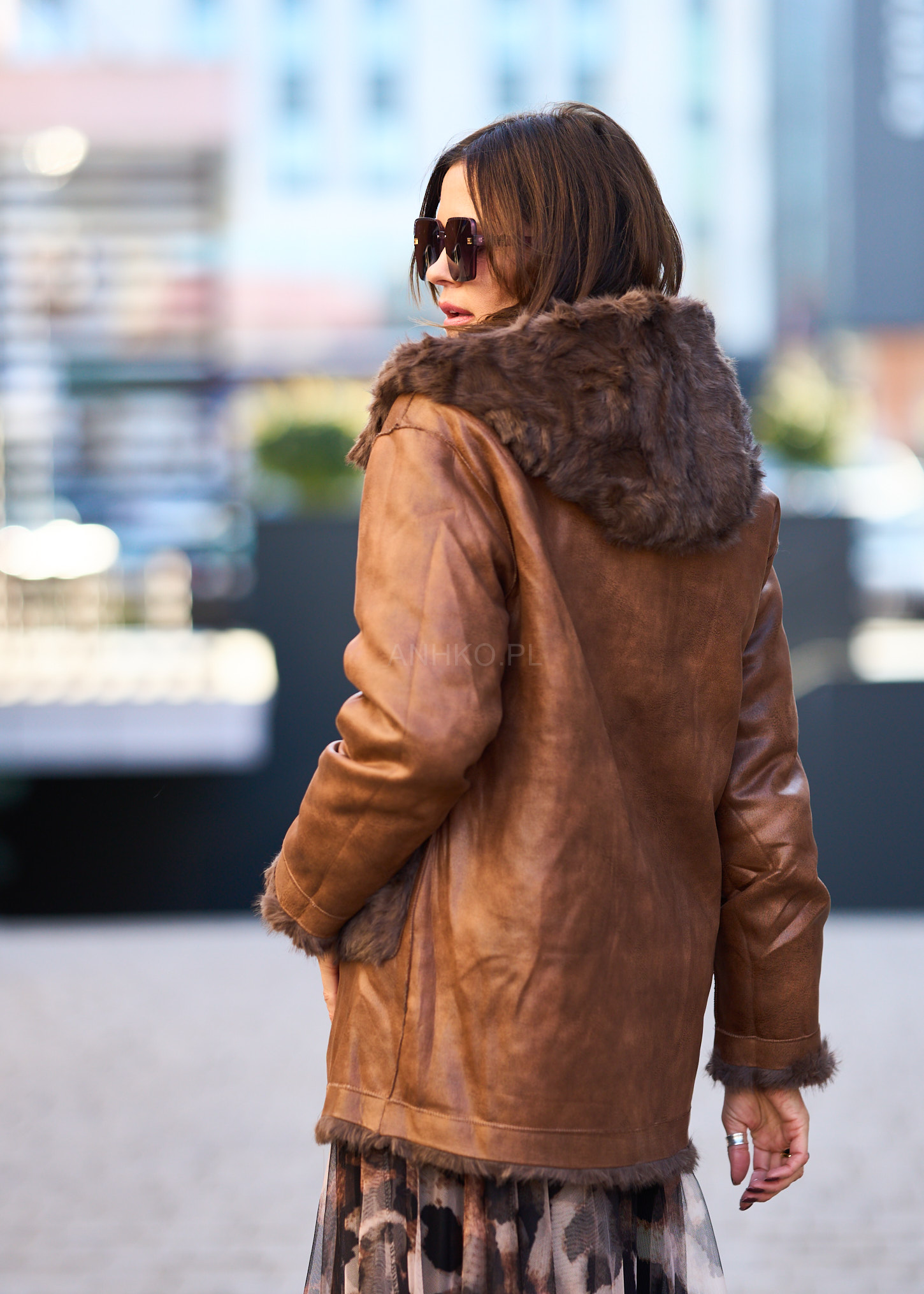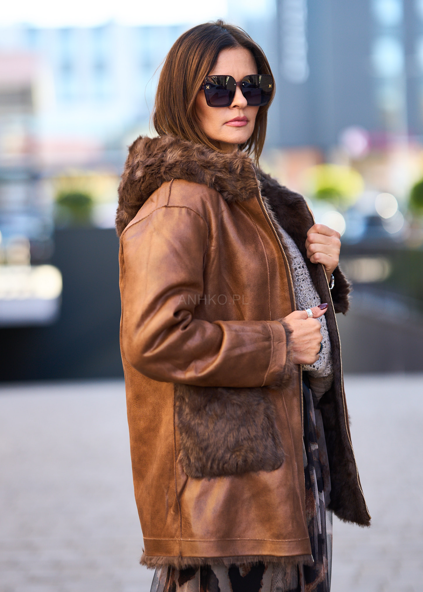 To wyjątkowa propozycja na sezon jesienno-zimowy. Kurtka wykonana jest z materiału imitującego skórę, a wnętrze oraz wykończenia obszyte są miękkim, ciepłym futerkiem. Jej charakterystyczny design z asymetrycznym zamkiem, paskiem w talii i dużym kapturem nadaje stylizacji niepowtarzalnego, retro charakteru. Idealnie pasuje zarówno do jeansów i botków, jak i długich sukienek oraz kozaków. Świetnie sprawdzi się w codziennych stylizacjach, na spacery, spotkania czy zimowe wyjazdy. To połączenie elegancji, wygody i funkcjonalności w jednym.