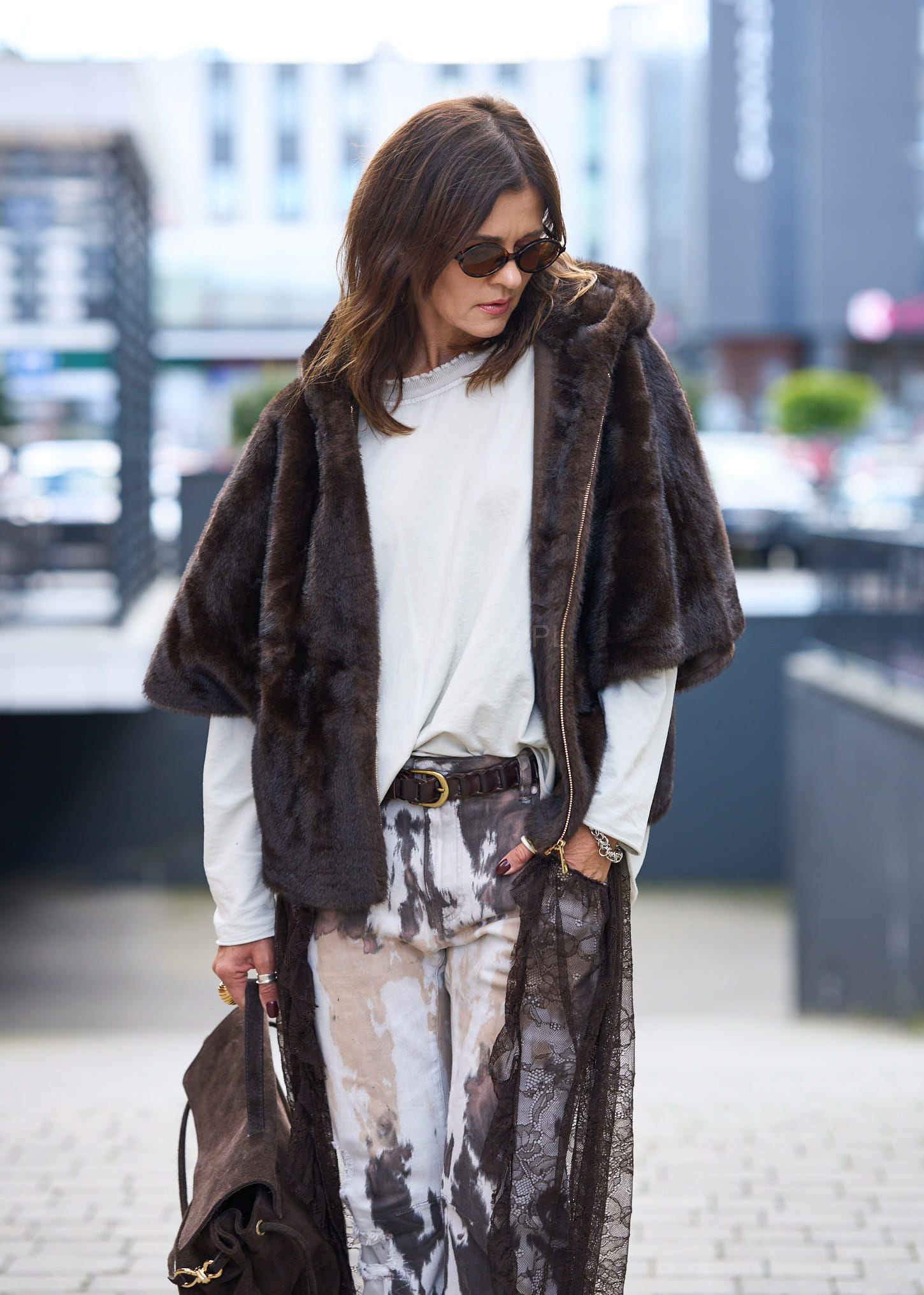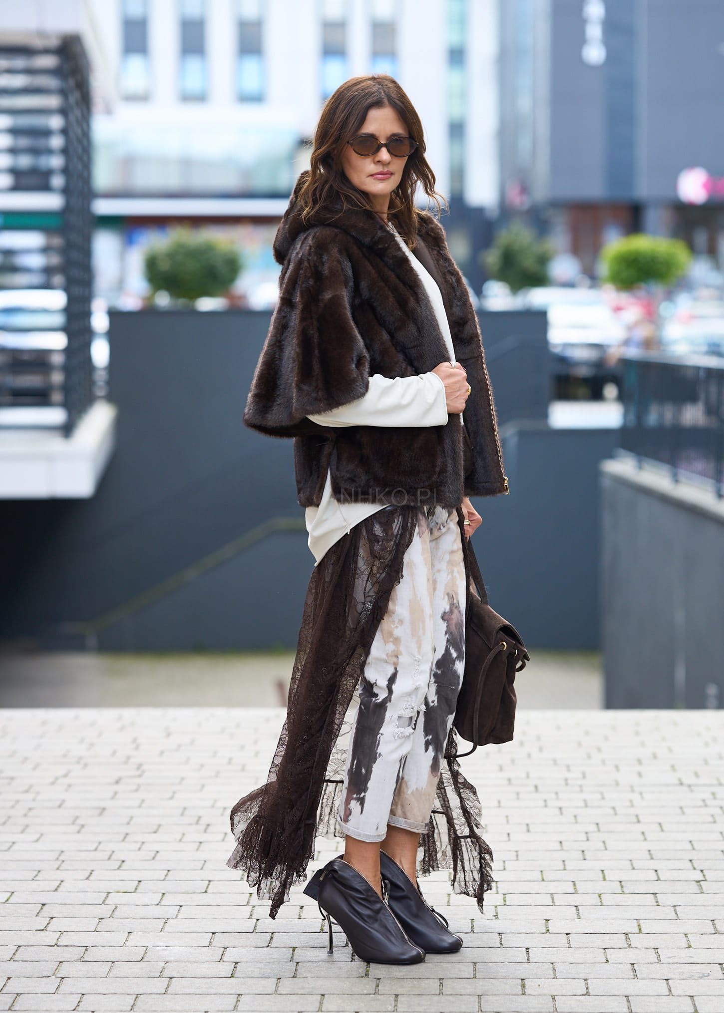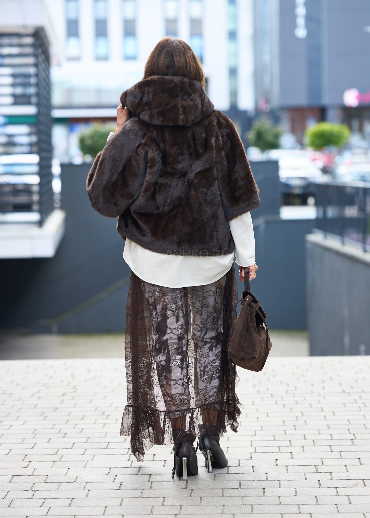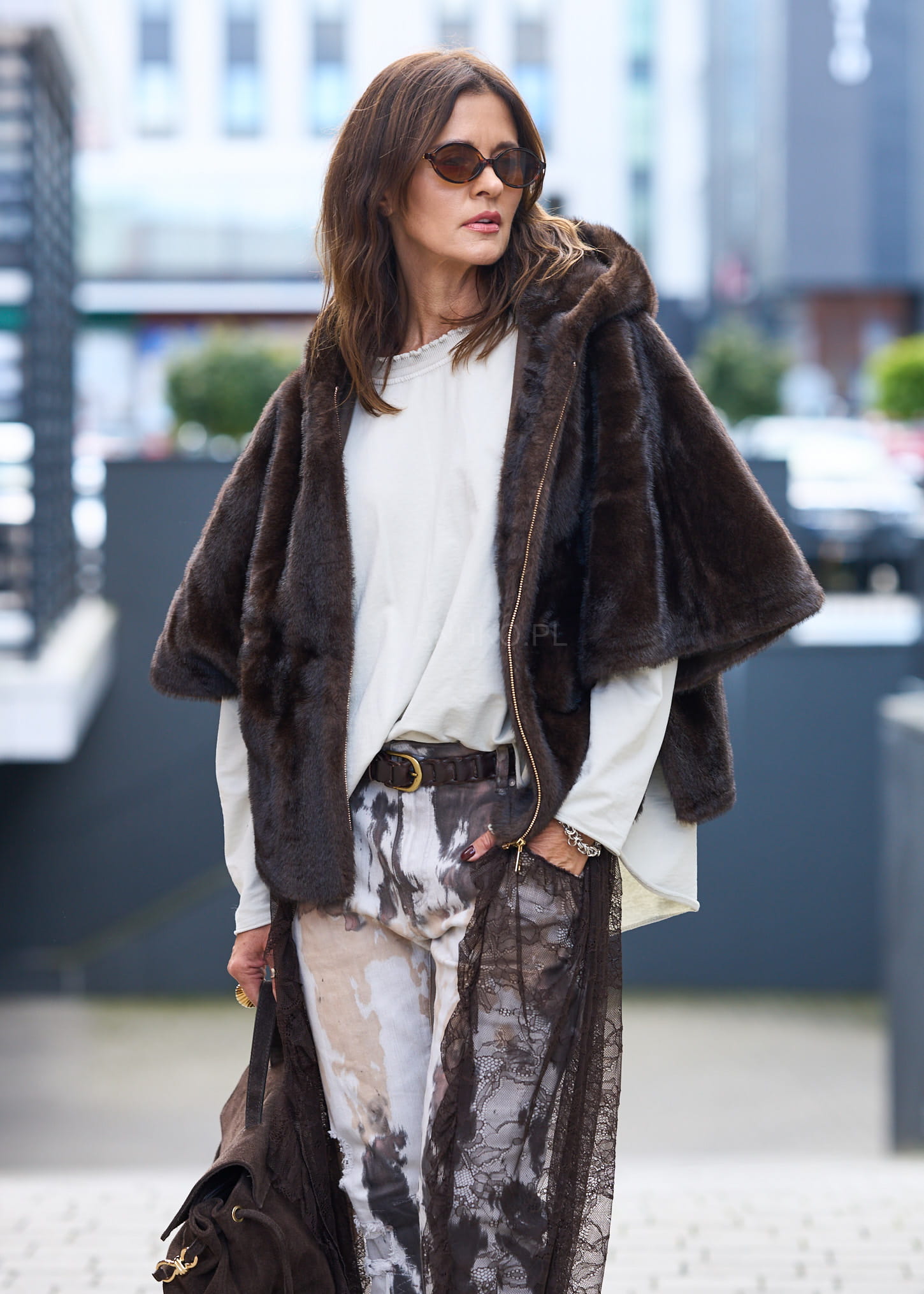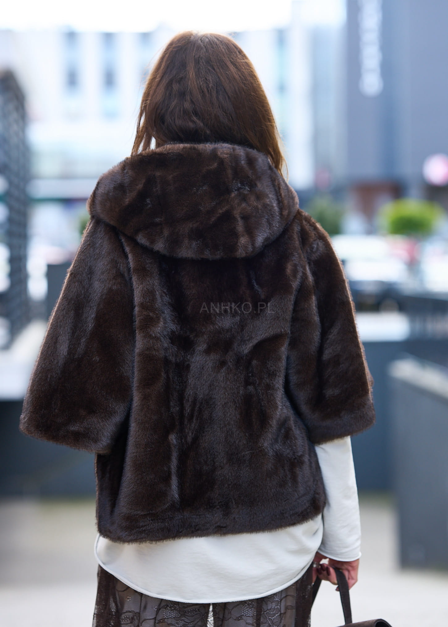 Stylowe futerko Avenora to połączenie elegancji i praktyczności. Wykonane z miękkiego, przyjemnego w dotyku sztucznego futra w odcieniu głębokiego brązu, zapewnia komfort termiczny i szykowny wygląd. Wyposażone w kaptur, dwie praktyczne kieszenie oraz zapięcie na suwak, sprawdzi się zarówno na co dzień, jak i podczas wieczornych wyjść. Największym atutem są guziki umieszczone pod rękawami – po ich odpięciu futerko zamienia się w wygodną pelerynę, co daje możliwość stylizacji na dwa sposoby. Idealne do eleganckich sukienek, spodni czy casualowych zestawów. To wszechstronne okrycie wierzchnie, które podkreśla styl i dodaje charakteru każdej stylizacji.