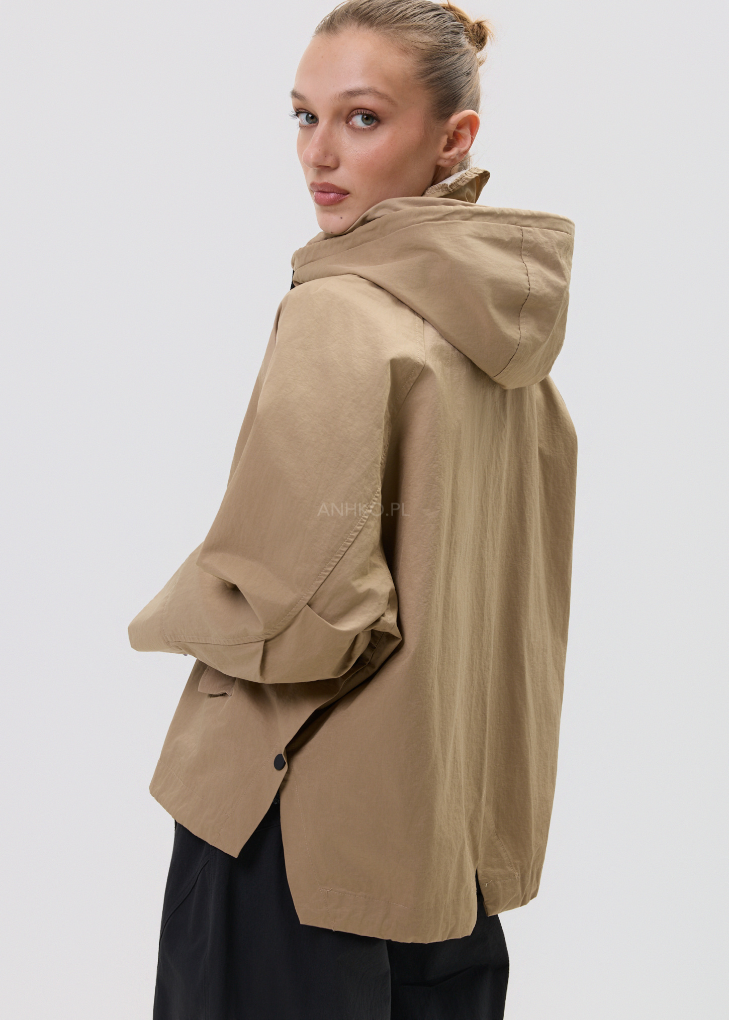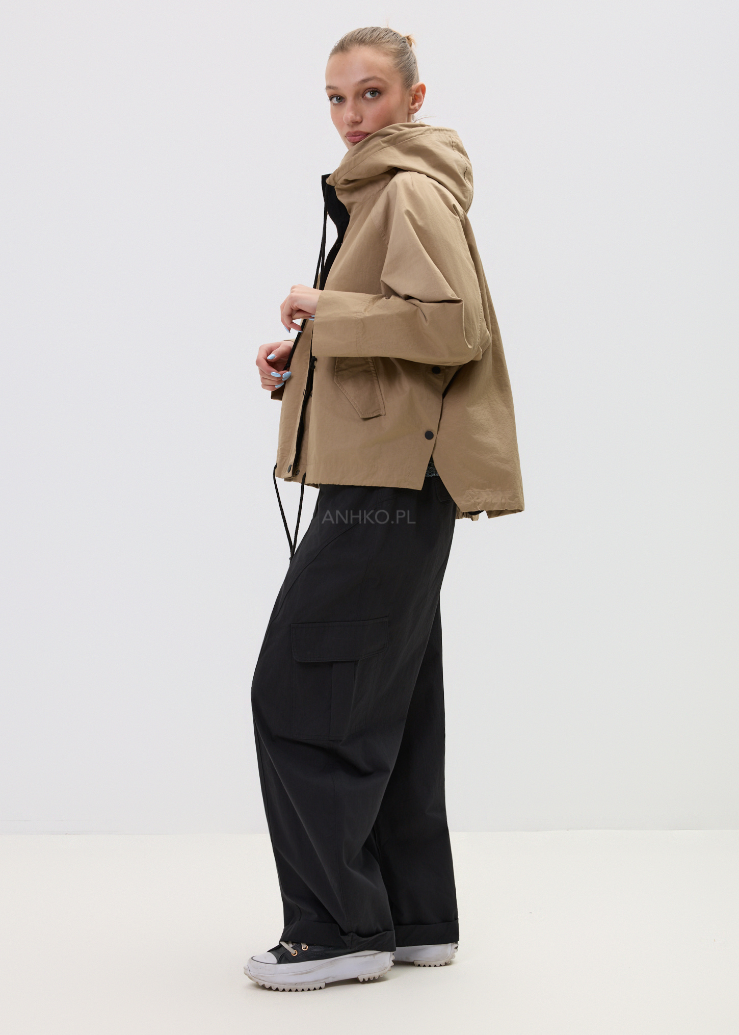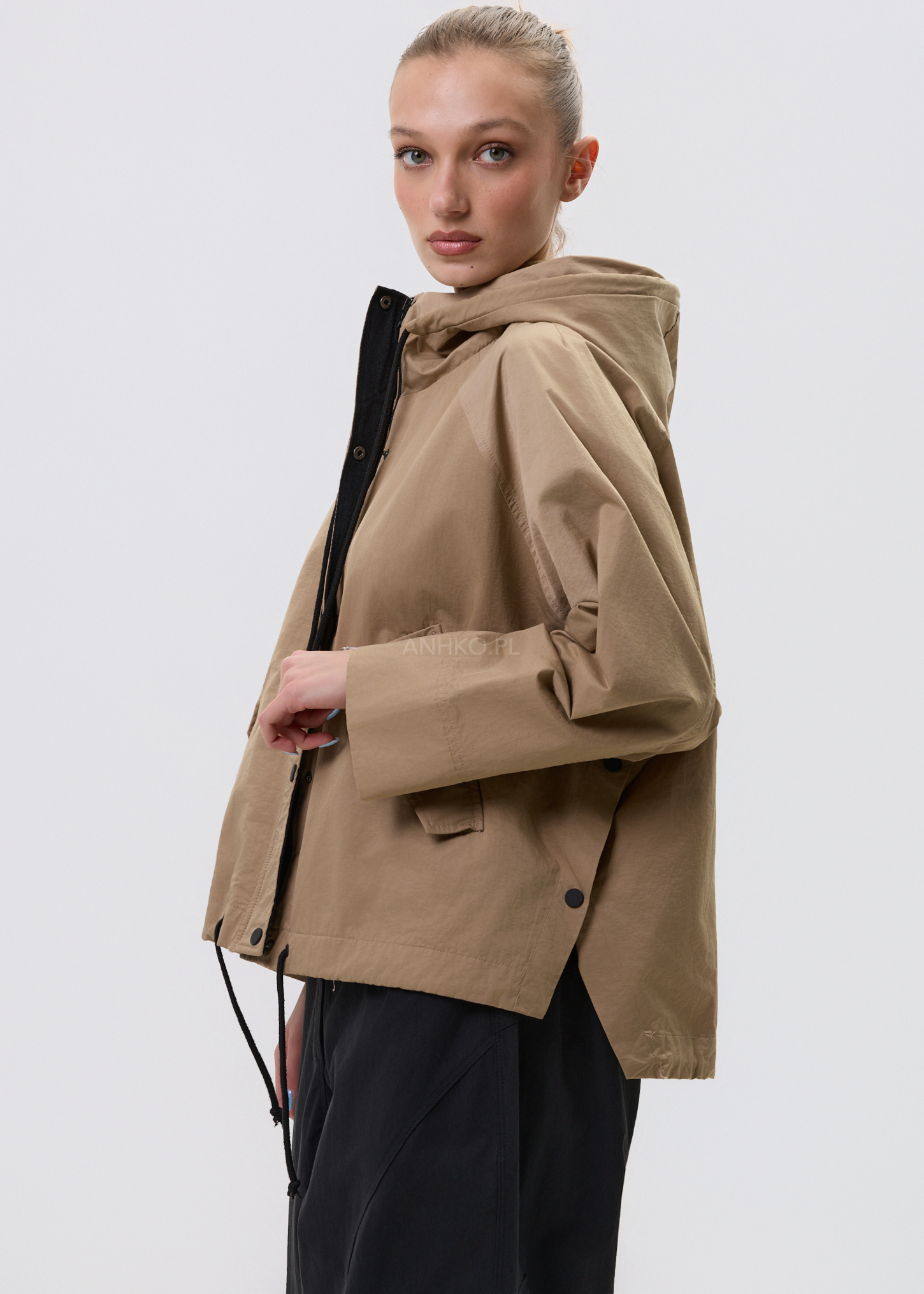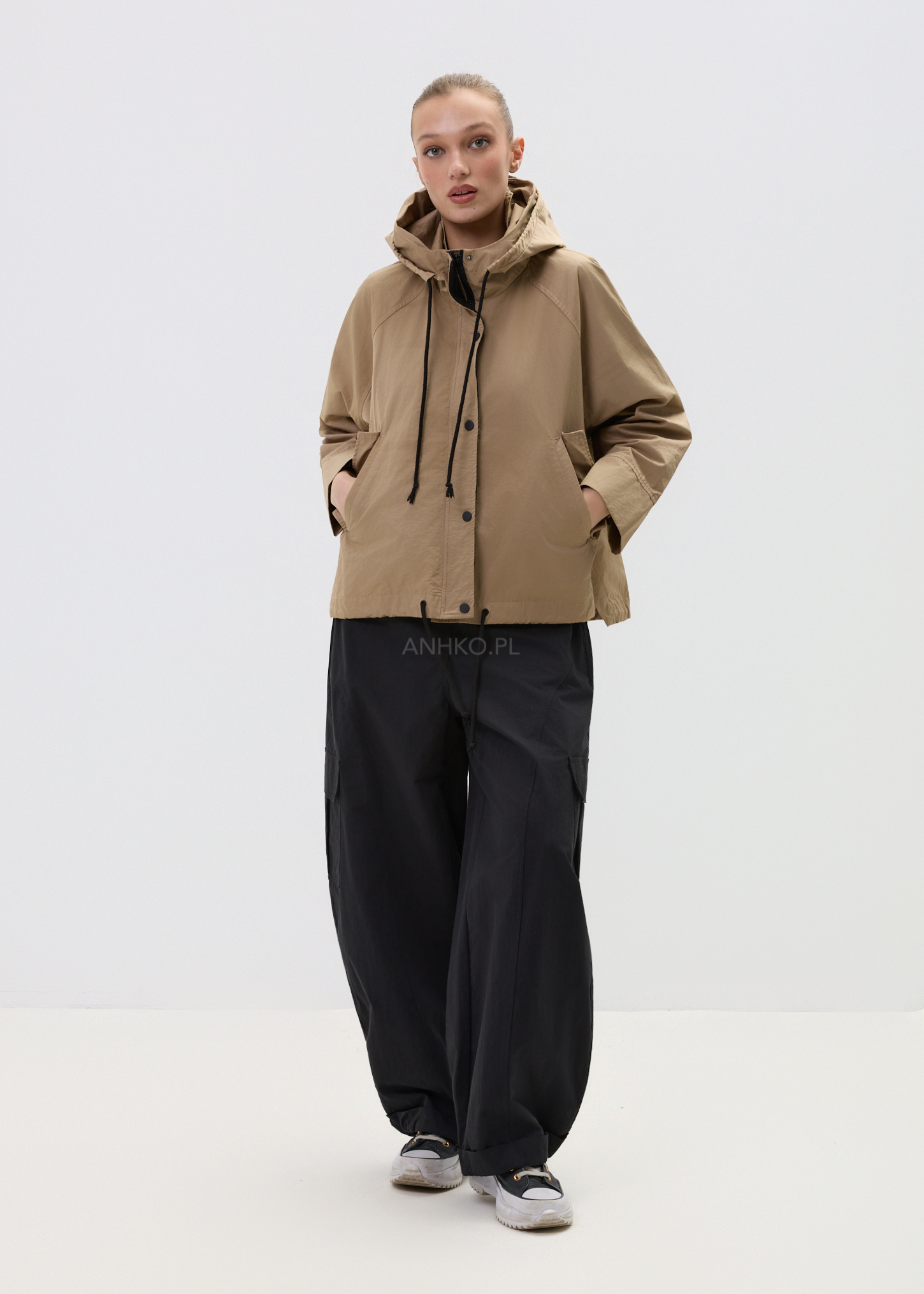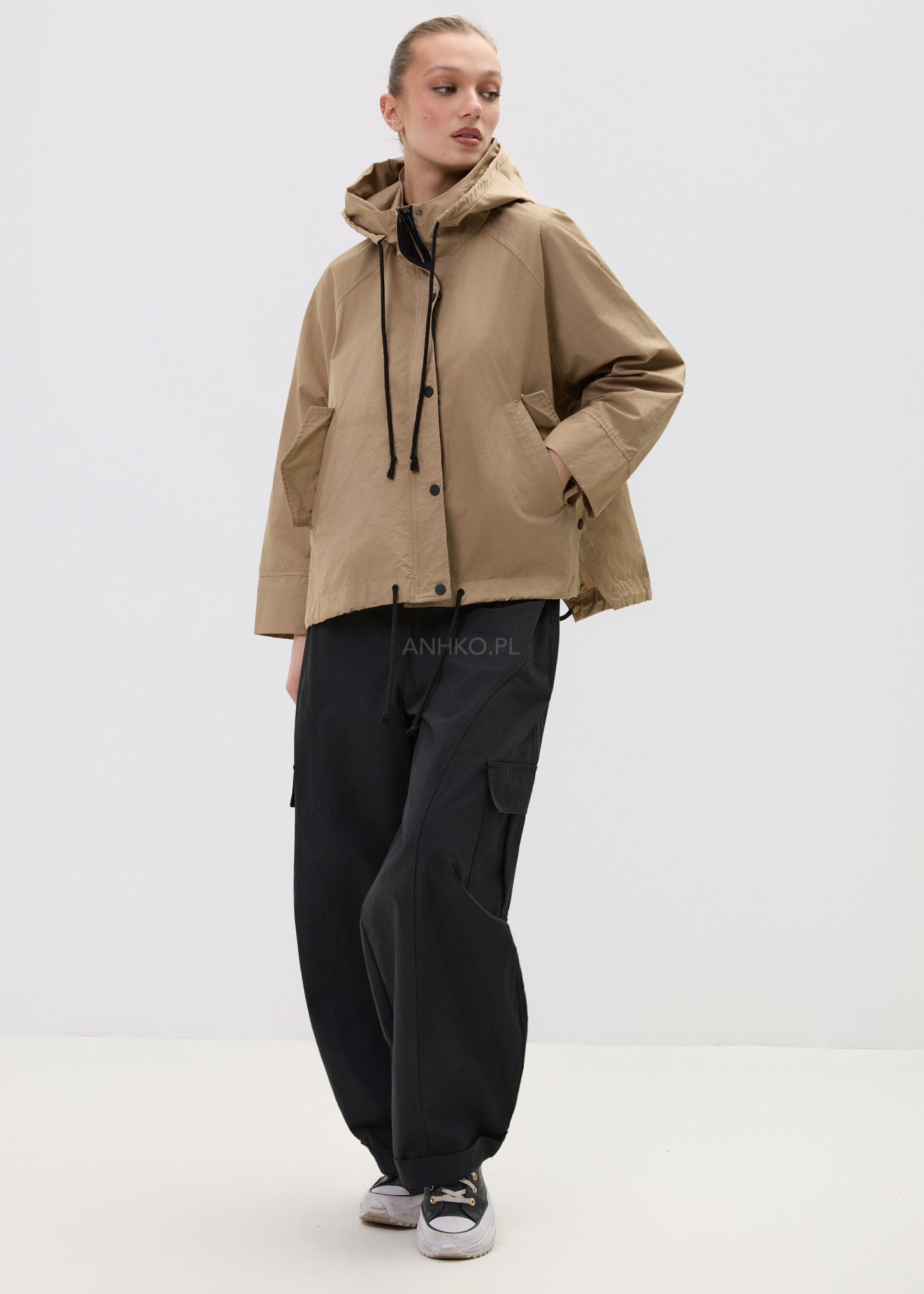 Model łączy funkcjonalność z estetyką – kaptur, praktyczne kieszenie oraz regulacja na dole pozwalają dopasować fason do stylizacji i okazji. To idealna baza do codziennych zestawów – od jeansów po bardziej sportowe komplety.