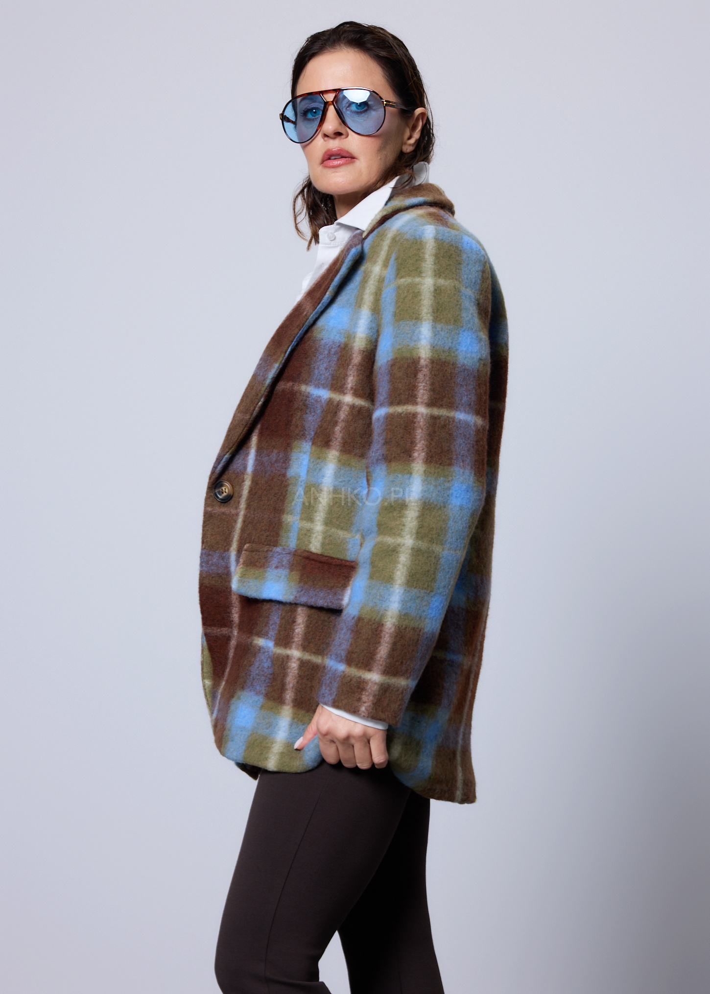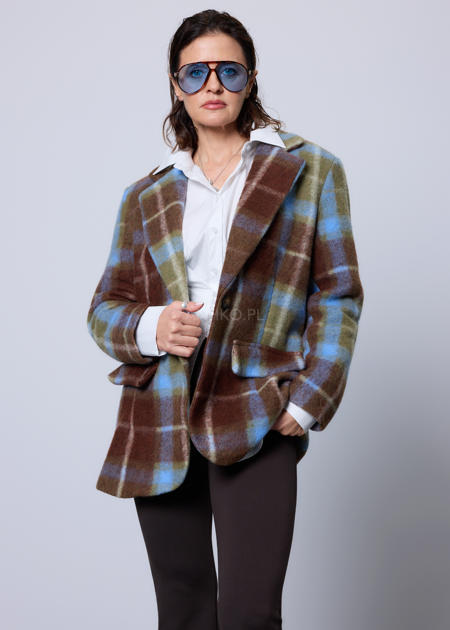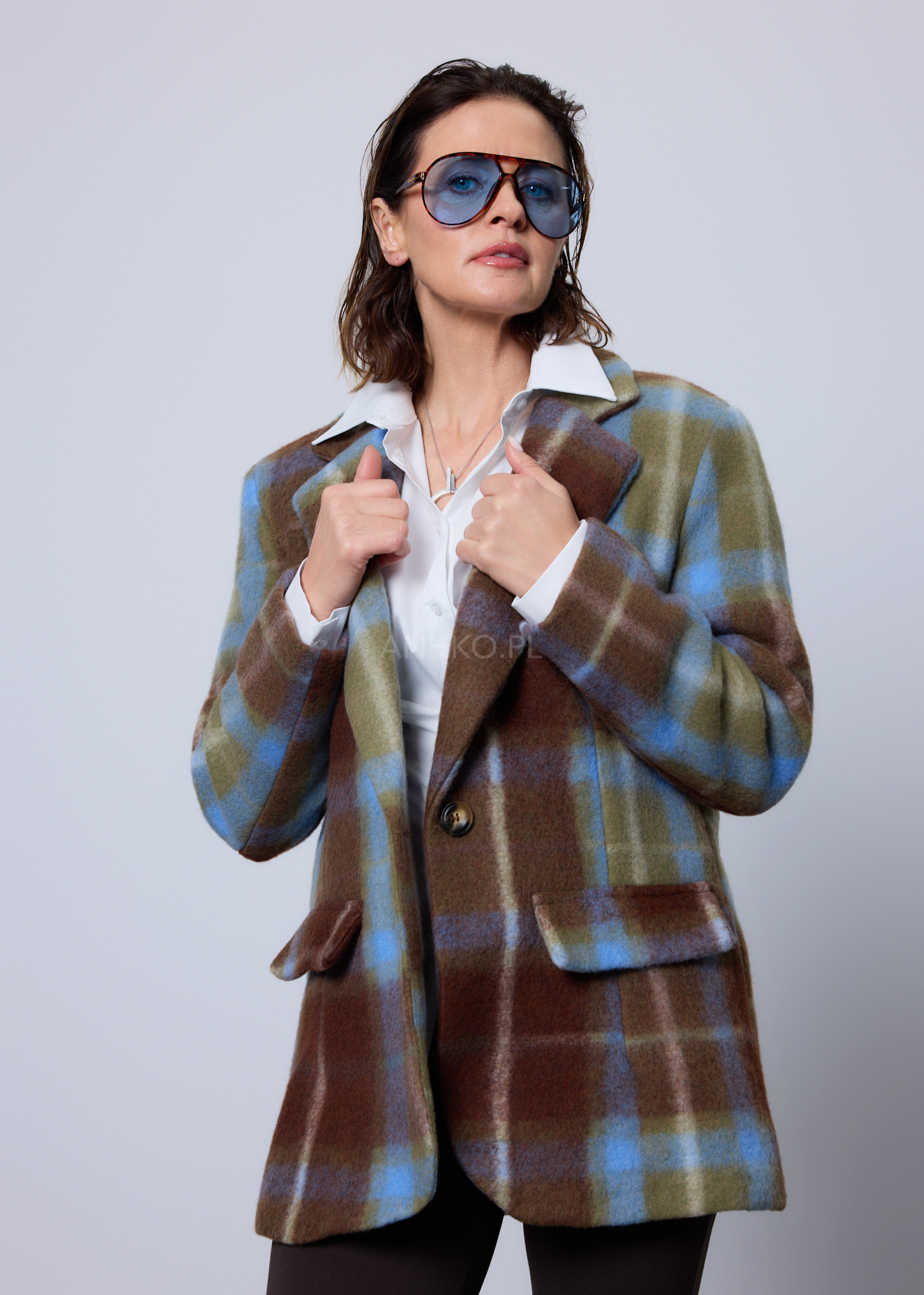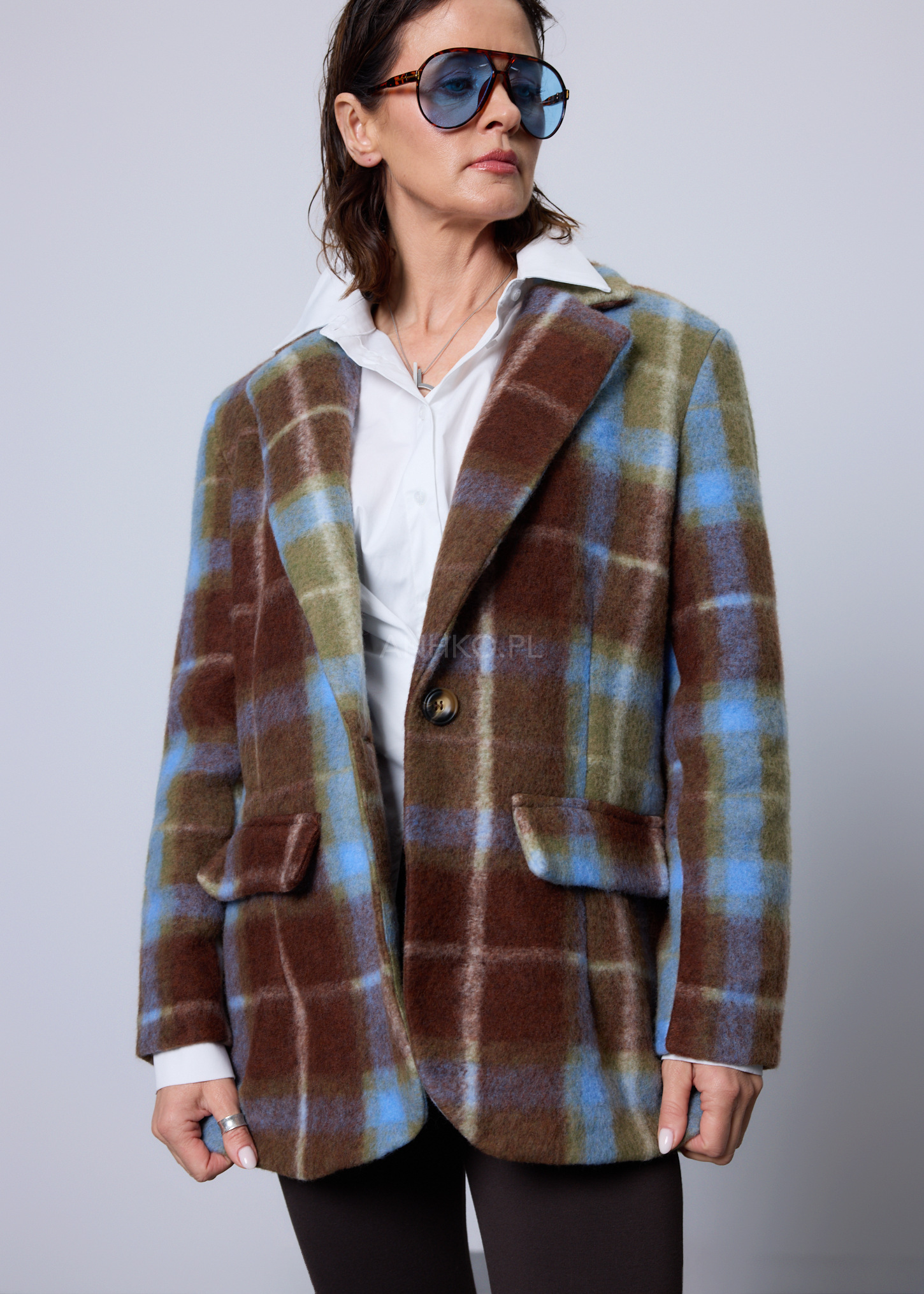 Kurtka–marynarka to nowoczesna propozycja dla kobiet ceniących styl i komfort. Krótki fason inspirowany klasyczną marynarką doskonale układa się na sylwetce, nadając stylizacji wyrazistego, ale swobodnego charakteru. Model wyposażony jest w pełną podszewkę, która zwiększa komfort noszenia i ułatwia zakładanie na inne warstwy. Z przodu znajdują się klapki oraz jednorzędowe zapięcie na guzik. Kurtka nie posiada kieszeni, kaptura ani halki. Świetnie sprawdzi się w zestawieniu z jeansami, spodniami materiałowymi, jak i sukienką. To idealny wybór do pracy, na spotkania, spacery po mieście oraz codzienne wyjścia w sezonie przejściowym.