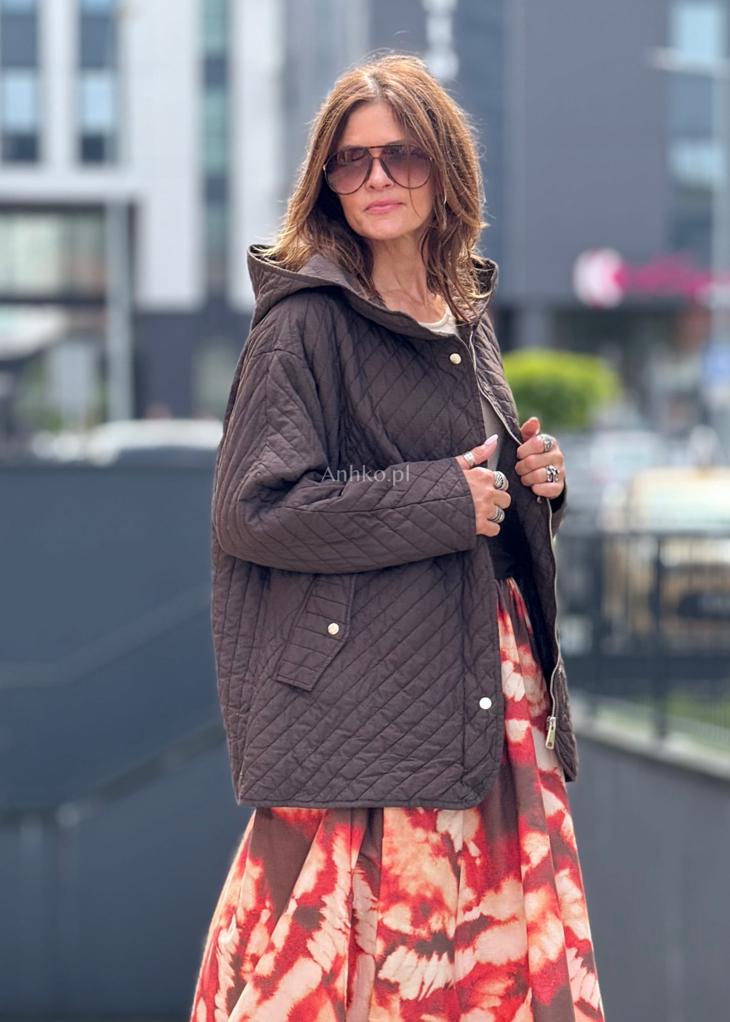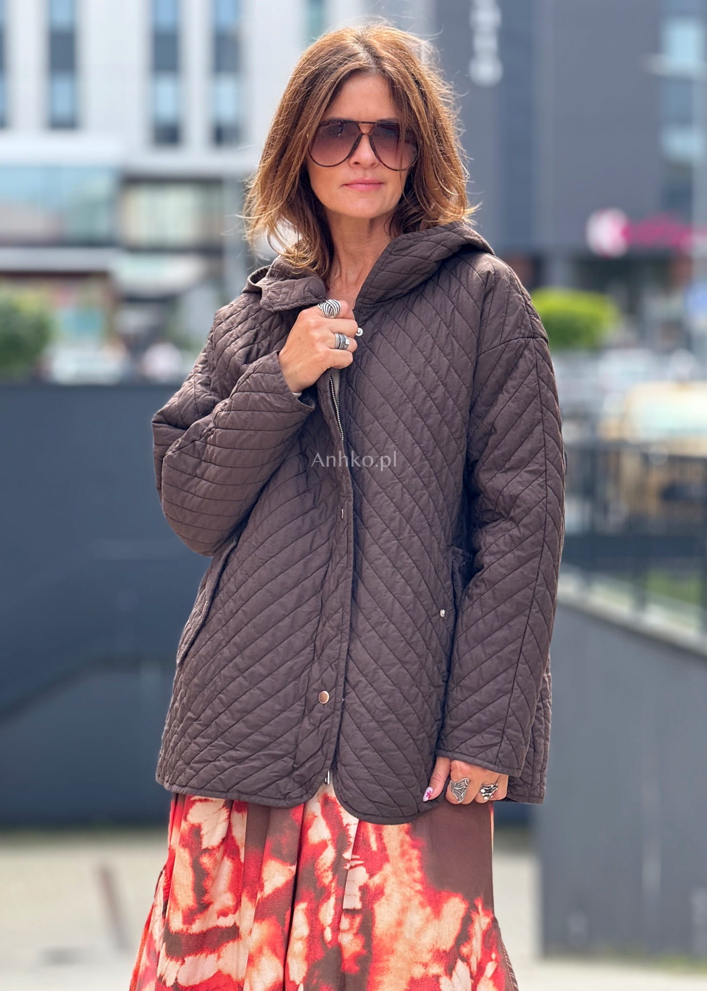 To idealne połączenie komfortu, funkcjonalności i ponadczasowego designu. Wykonana w całości z naturalnej bawełny, zapewnia oddychalność i wygodę przez cały dzień. Pikowany wzór nadaje jej unikalnego charakteru, a luźniejszy krój gwarantuje swobodę ruchów i świetnie dopasowuje się do różnych sylwetek. Kaptur dodaje praktyczności, chroniąc przed chłodem i wiatrem w przejściowych porach roku. Klasyczny brązowy kolor sprawia, że kurtka doskonale komponuje się zarówno z jeansami, jak i sukienkami czy casualowymi zestawami. To model, który sprawdzi się na co dzień, w pracy, na spacerach czy podczas weekendowych wyjazdów.