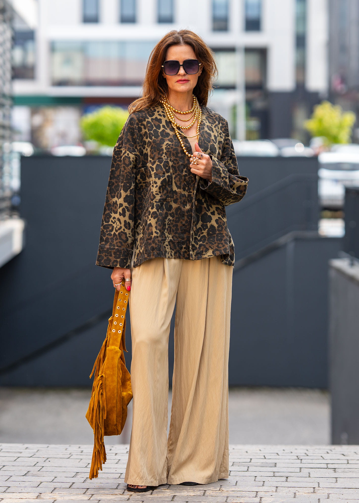 To propozycja dla osób, które lubią wyróżniać się z tłumu. Klasyczny krój przełamany jest odważnym printem w cętki, dodającym charakteru każdej stylizacji. Kurtka posiada wygodne kieszenie i zapinana jest na guziki, co sprawia, że jest praktyczna i stylowa zarazem. Idealna do noszenia zarówno na co dzień, jak i na specjalne okazje, np. spotkania ze znajomymi czy wieczorne wyjścia. Świetnie komponuje się z jeansami, legginsami i botkami, ale równie dobrze wygląda z eleganckimi spodniami.