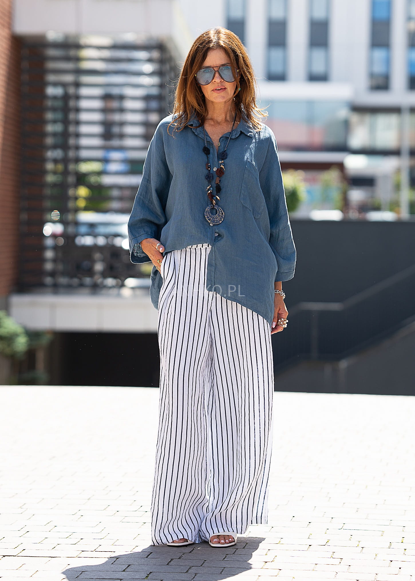 Wykonane z naturalnego lnu, zapewniają przewiewność i komfort, idealne na ciepłe dni. Szerokie nogawki dodają im elegancji i swobodnego charakteru. Spodnie posiadają praktyczne kieszenie, które dodają im funkcjonalności. Dodatkowym atutem jest rozciągacz z tyłu przy pasie, który gwarantuje doskonałe dopasowanie do sylwetki, zapewniając jednocześnie komfort noszenia przez cały dzień.