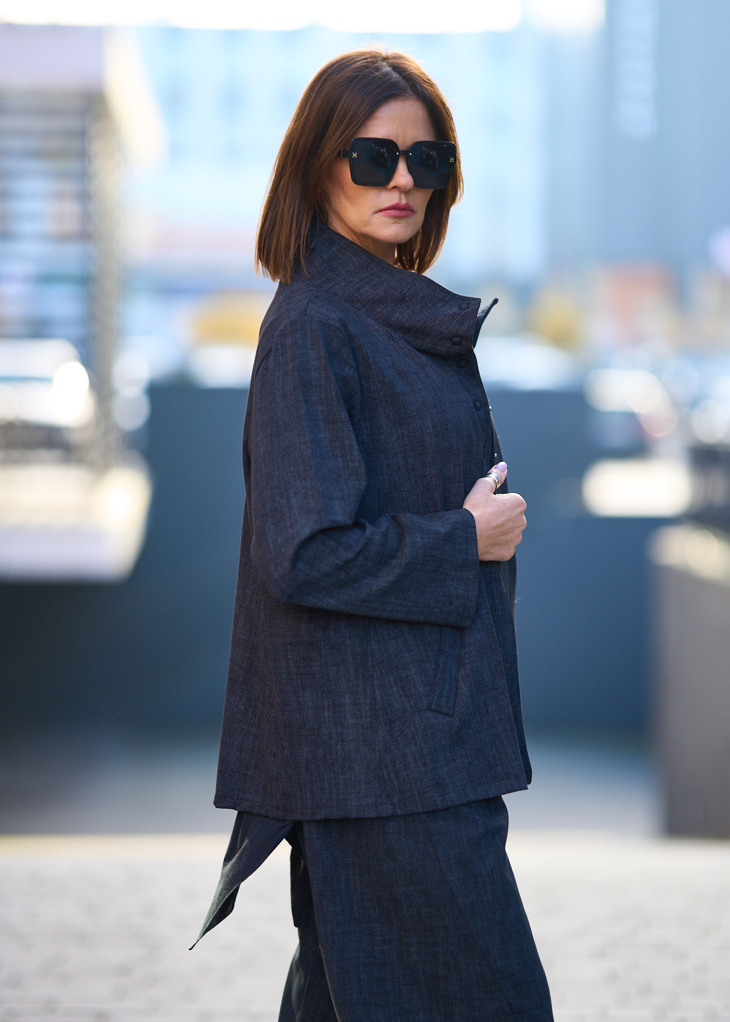 Ta stylowa, włoska marynarka to idealne połączenie wygody i elegancji. Wykonana z miękkiej, lekkiej tkaniny doskonale układa się na sylwetce, zapewniając komfort przez cały dzień. Charakterystyczna stójka zapinana na metalowe napy dodaje jej nowoczesnego wyglądu, a dwie praktyczne kieszenie po bokach zwiększają funkcjonalność. Marynarka nie posiada podszewki, dzięki czemu jest lekka i świetna na sezon wiosenny oraz jesienny, a także jako alternatywa dla klasycznej kurtki. Pasuje zarówno do spodni materiałowych, jak i dżinsów, tworząc stylizacje idealne do pracy, na spotkania czy codzienne wyjścia.