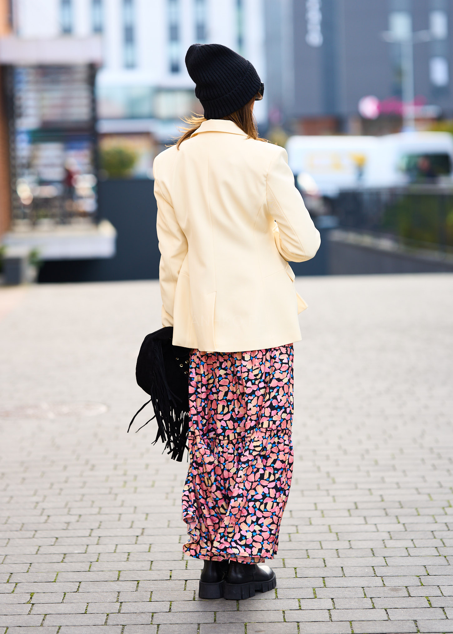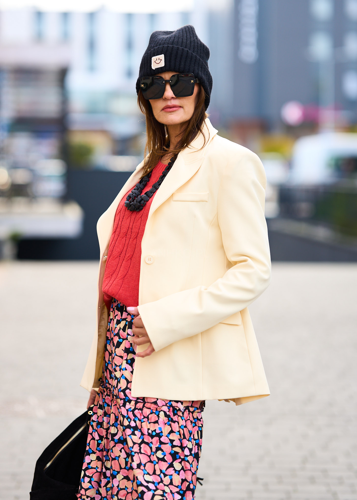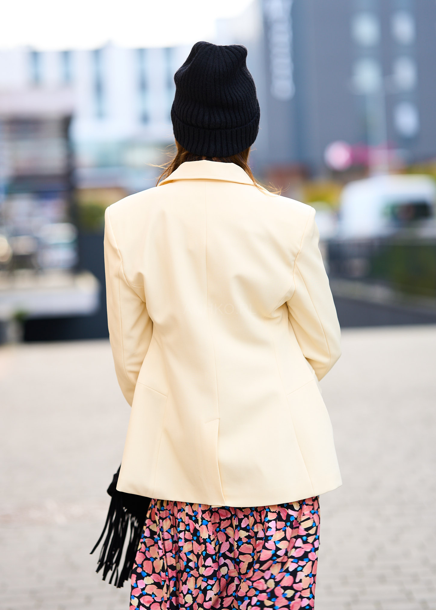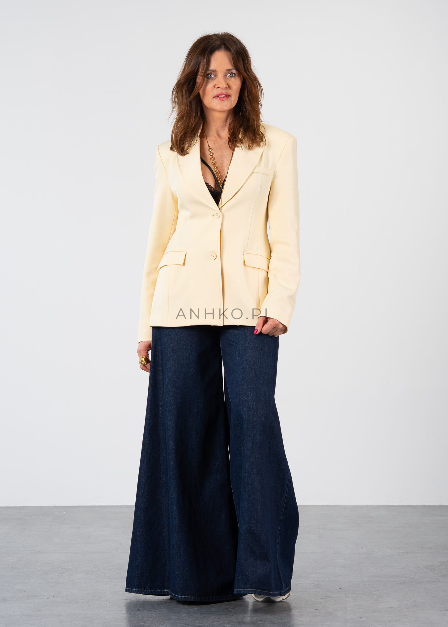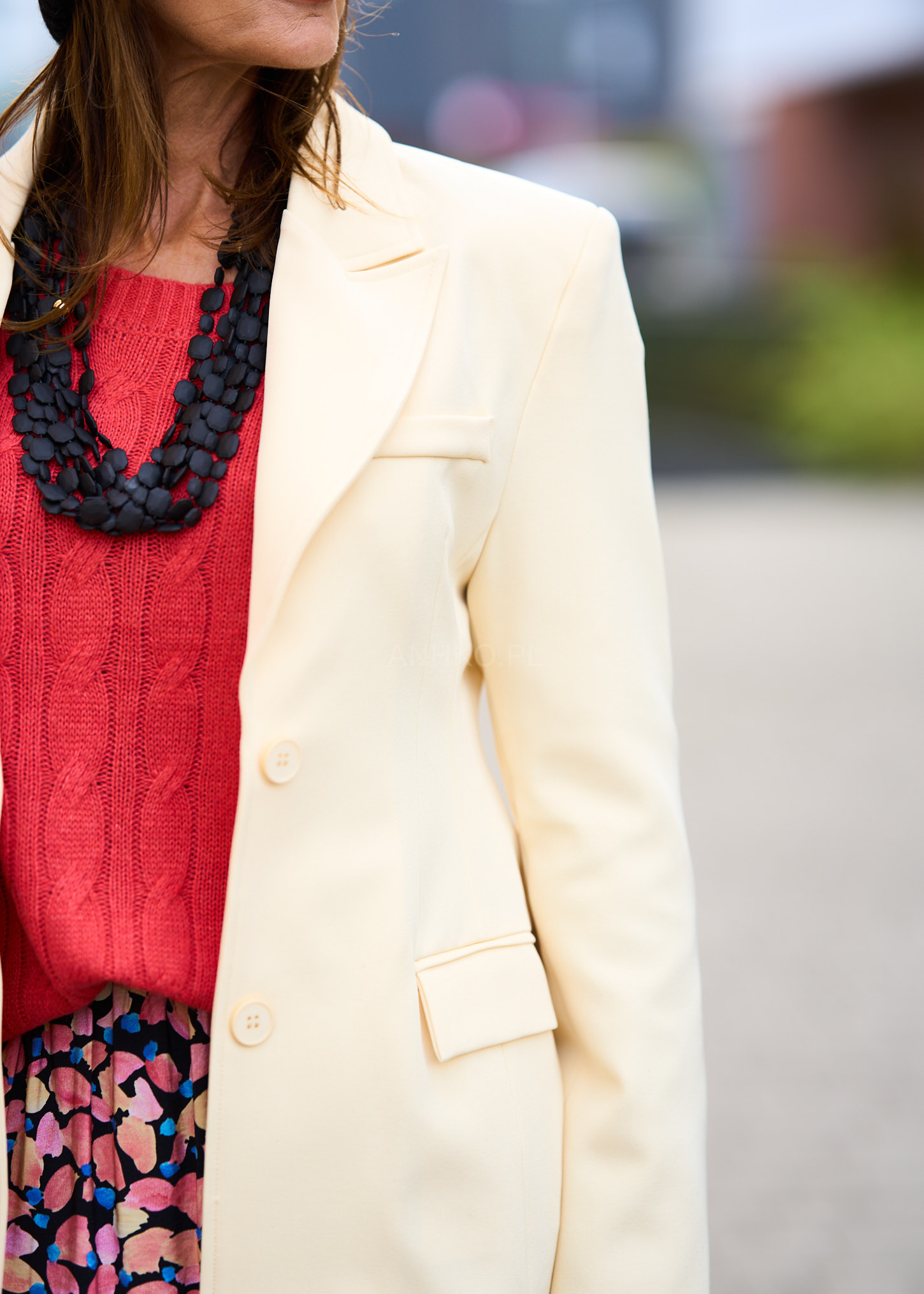 To klasyczna marynarka o dopasowanym kroju, która łączy elegancję z wygodą. Wykonana z wysokiej jakości materiału, gwarantuje komfort i idealne dopasowanie. Stylowe klapy, subtelne guziki i praktyczne kieszenie dodają jej wyjątkowego charakteru. Doskonała na oficjalne okazje, spotkania biznesowe, ale także jako element casualowych stylizacji. Świetnie komponuje się zarówno z eleganckimi spodniami, jak i jeansami. Ponadczasowy fason sprawia, że to niezastąpiony element każdej garderoby.