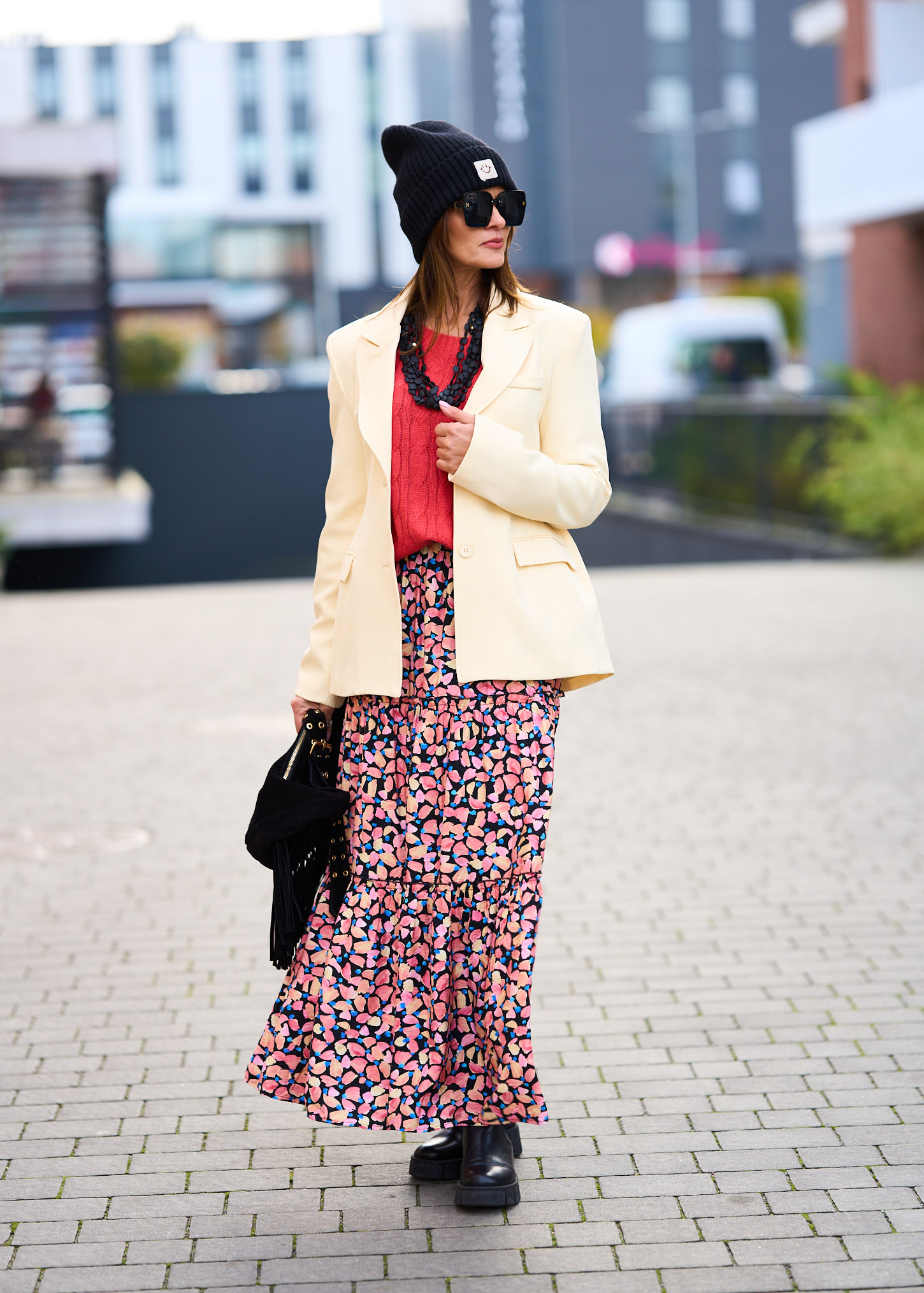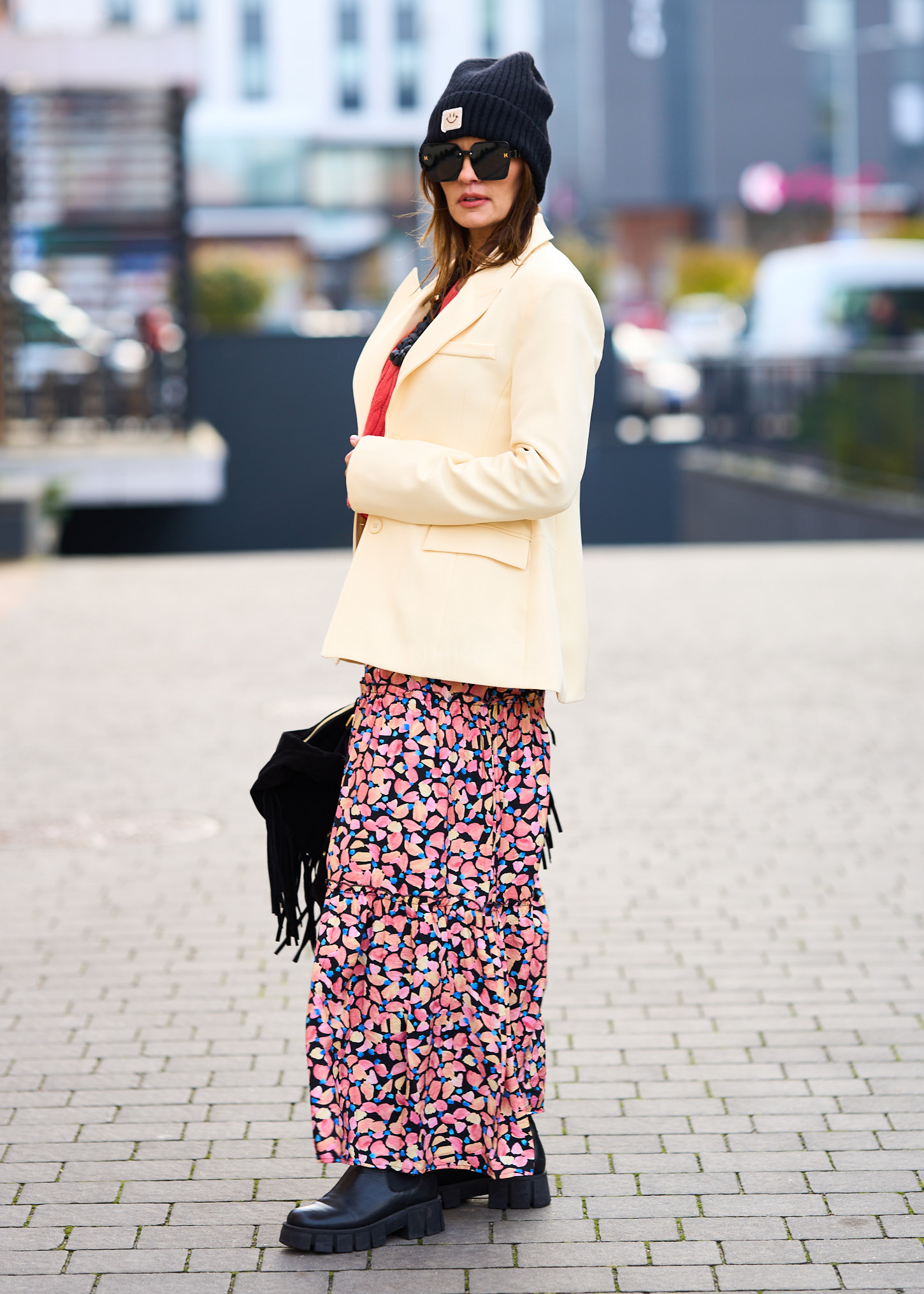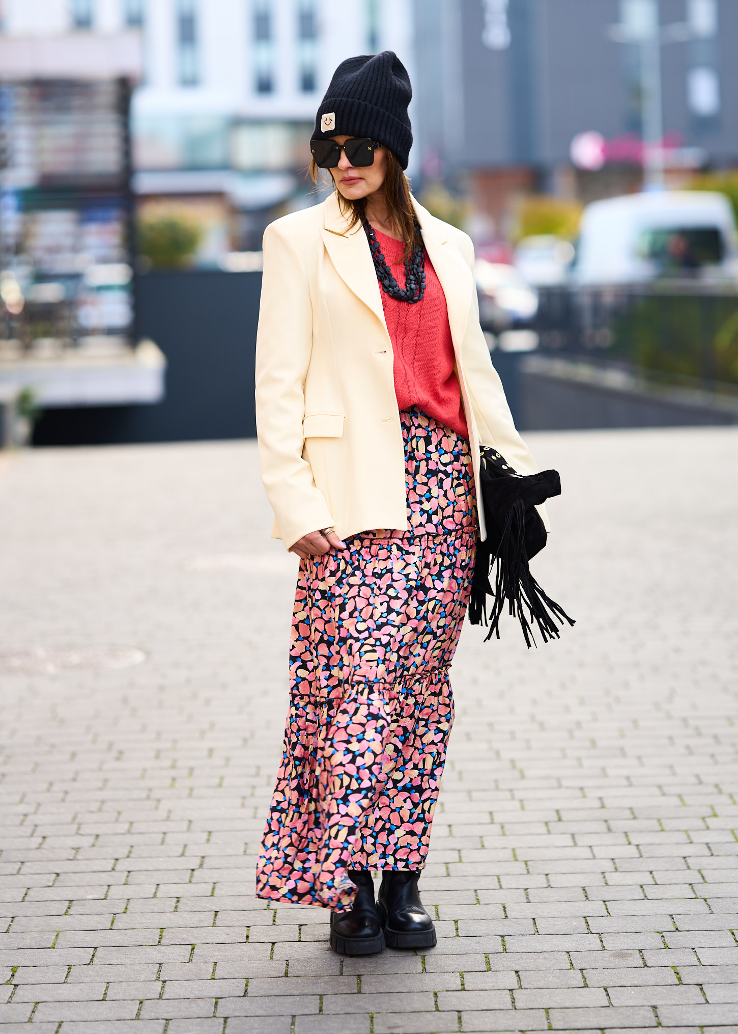 Modelka ma 172 cm wzrostu i ma na sobie rozmiar S oraz M.