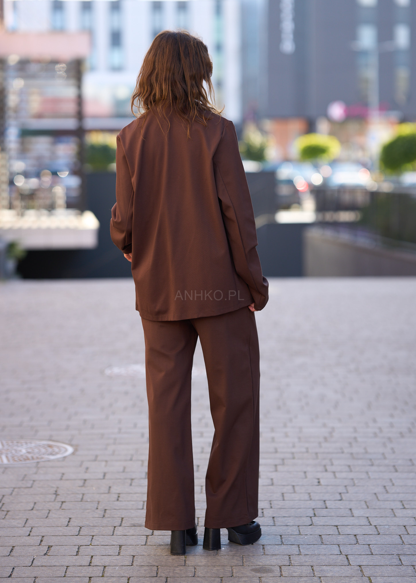 To połączenie klasyki i nowoczesnej elegancji. Wykonana we Włoszech z miękkiej, elastycznej dzianiny, pięknie układa się na sylwetce i zapewnia komfort noszenia przez cały dzień. Brązowy kolor i minimalistyczny krój nadają jej ponadczasowego charakteru, a ozdobny złoty guzik w talii dodaje stylowego akcentu. Marynarka posiada praktyczne kieszenie oraz delikatnie poszerzone rękawy, co sprawia, że idealnie komponuje się z eleganckimi spodniami, jeansami czy sukienkami. Świetna na spotkania biznesowe, uroczystości rodzinne, randki czy stylizacje smart casual.