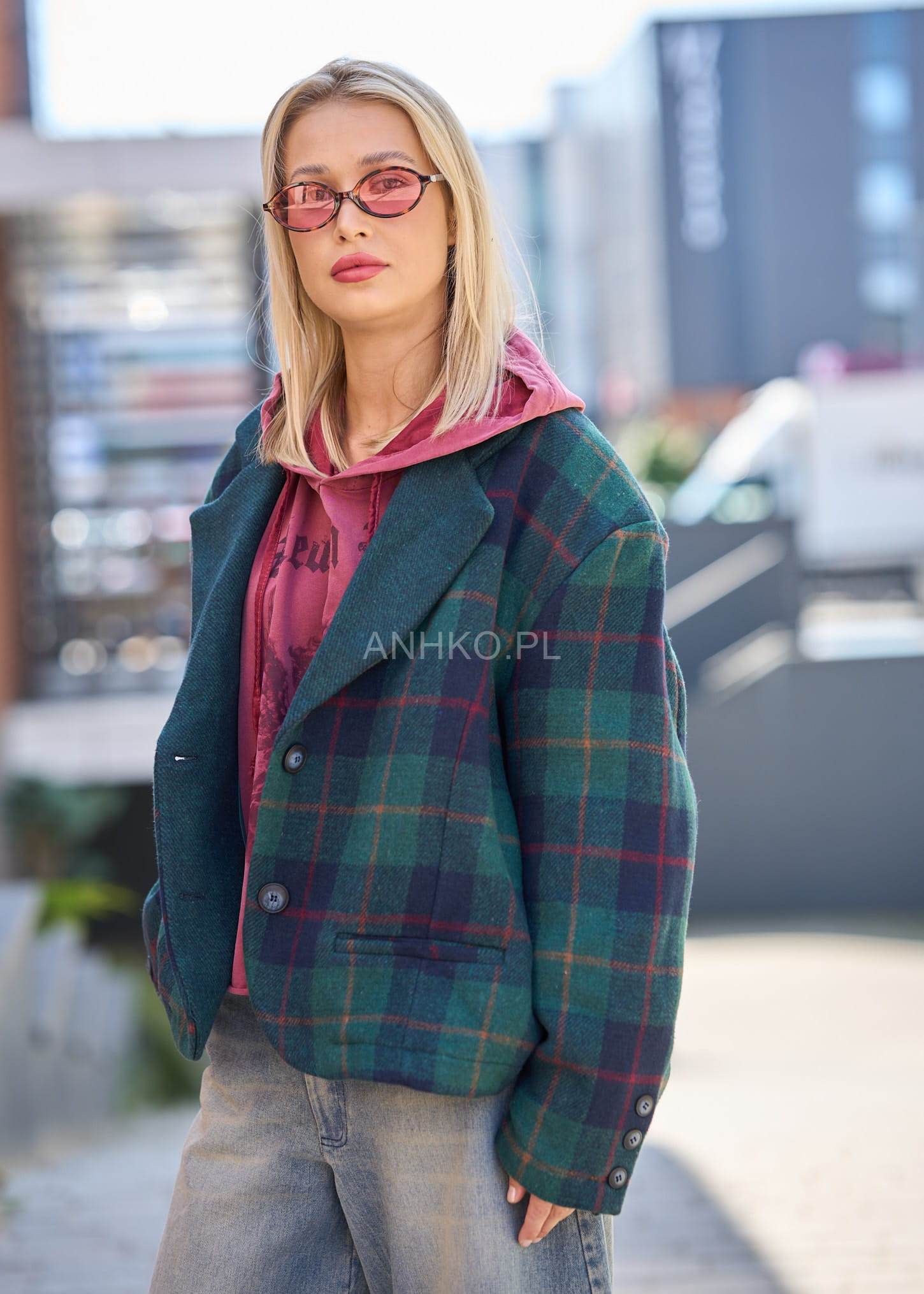 - Krótka marynarka w kratę